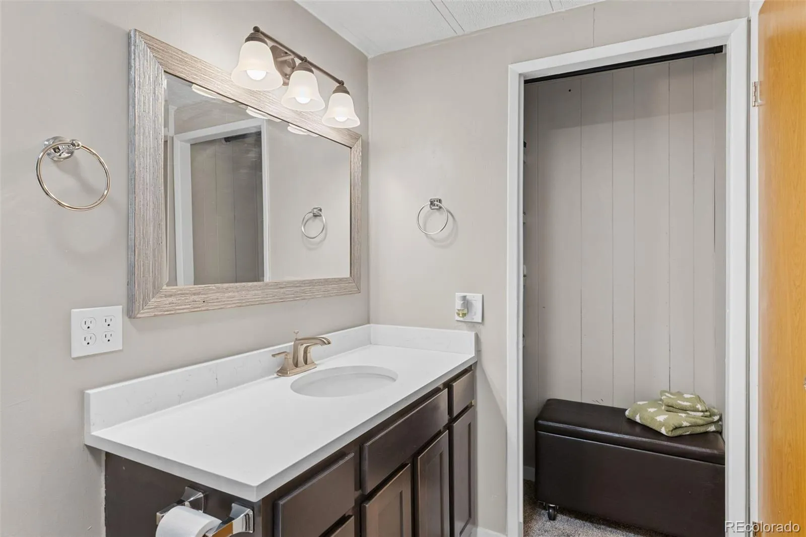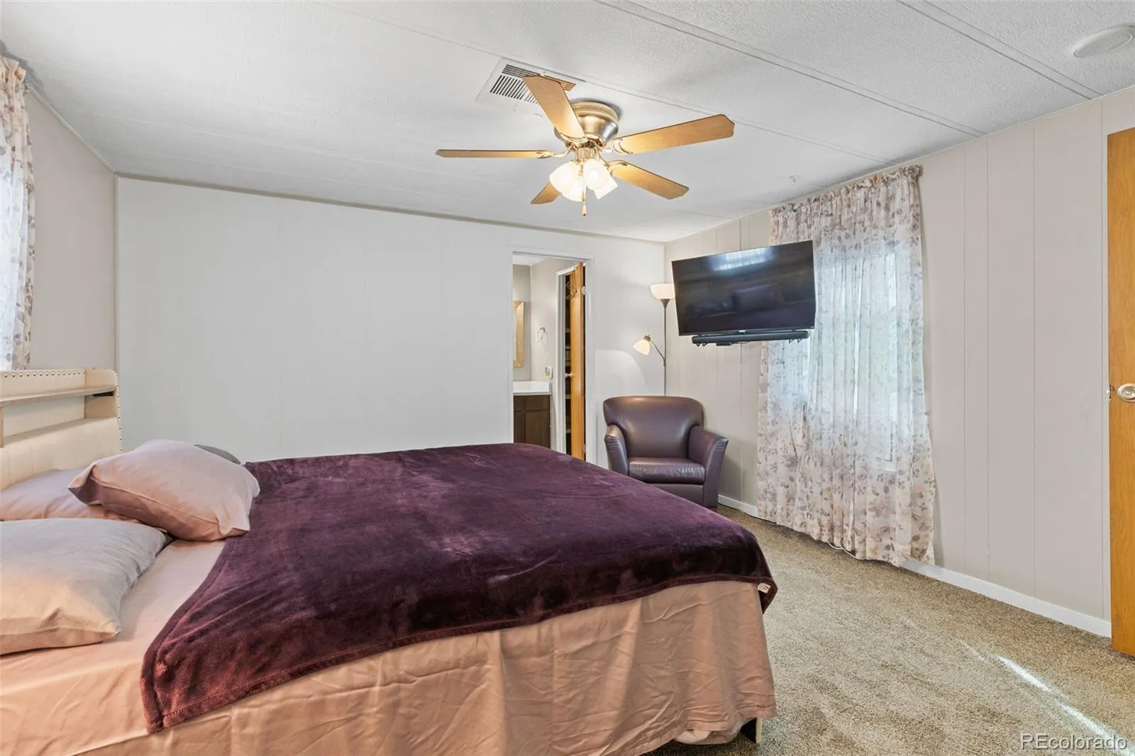 The spacious primary suite offers a true retreat with a large walk-in closet plus an additional closet in the attached, beautifully updated bathroom, complete with a stylish shower and ample storage space.