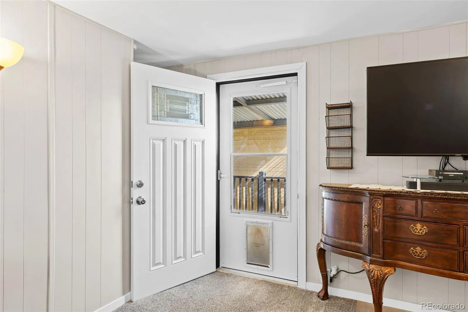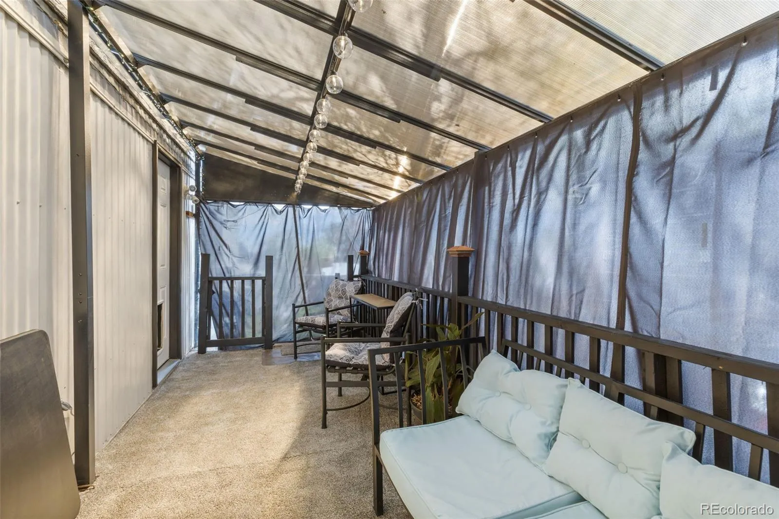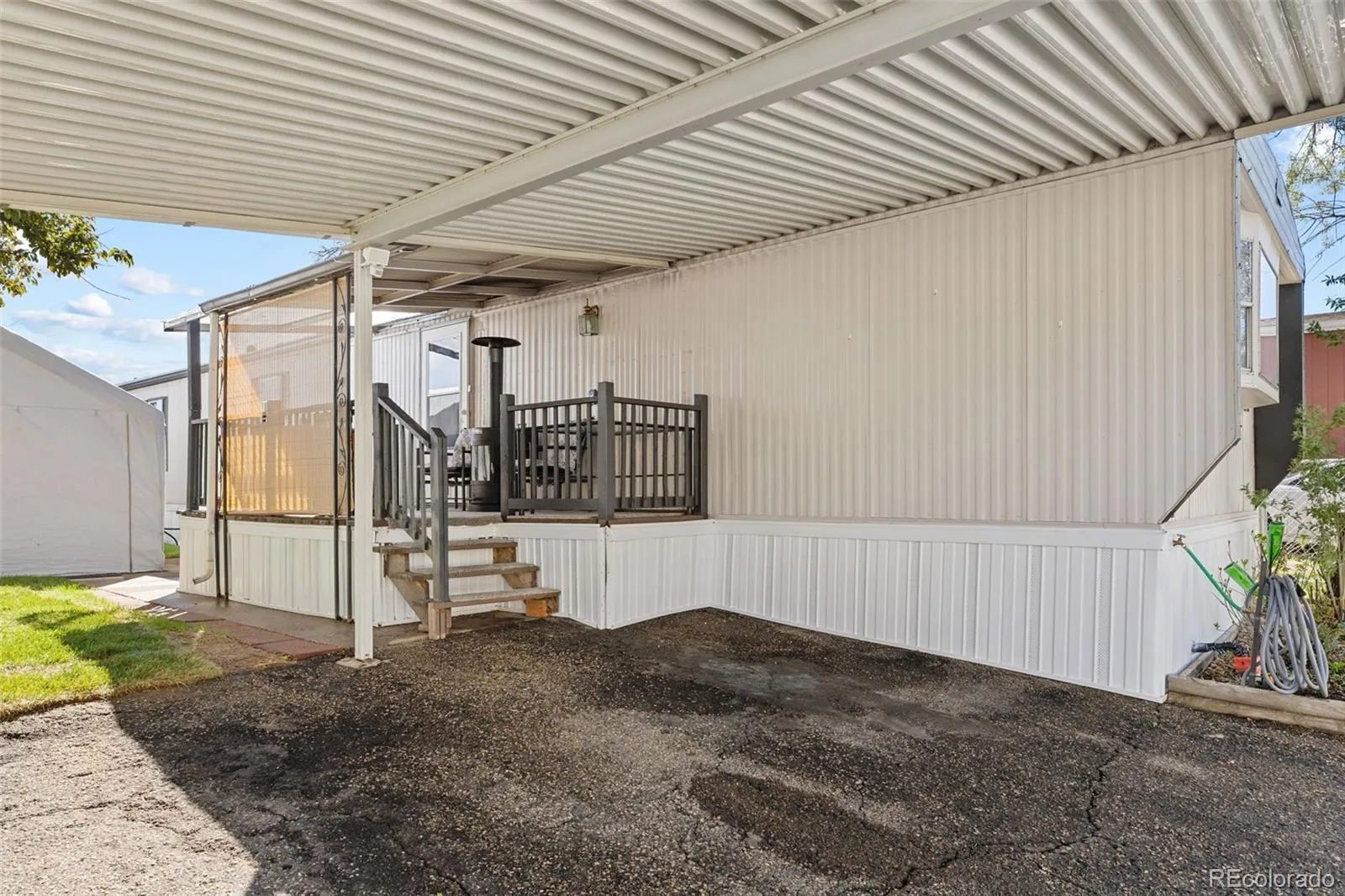 Additional upgrades provide comfort and peace of mind, including a whole-house water filtration system, upgraded PEX plumbing (60%), newer furnace (2018, natural gas), water heater (natural gas), window A/C units, exterior security lighting, and a durable metal roof with rubberized seal coating. Outdoor living is enhanced by an 8’ x 20’ covered, carpeted, screened-in porch with lighting, plus convenient features like pet doors, new steel front entry door, and storm door. The home also includes a 2-car carport for covered parking.