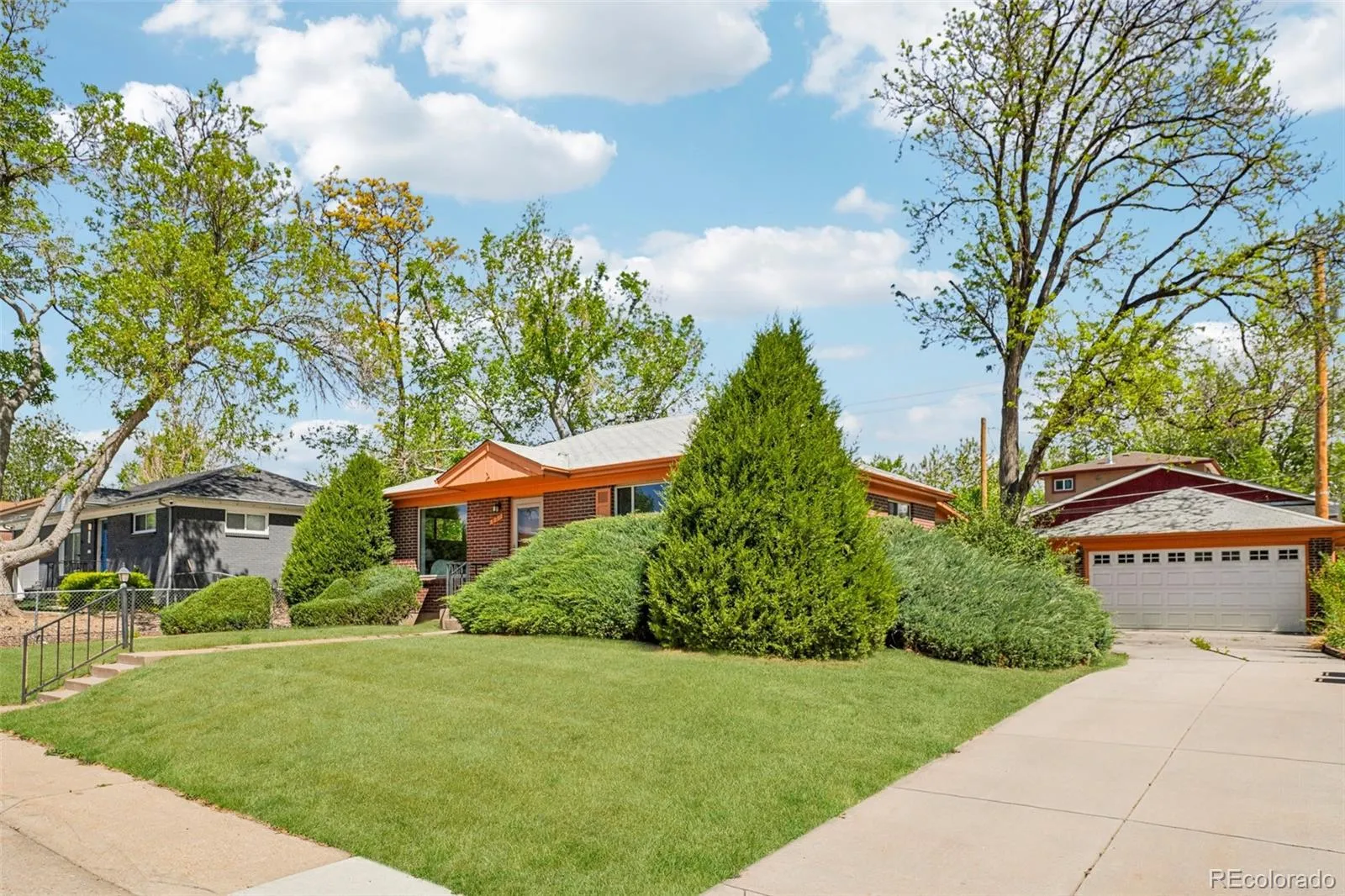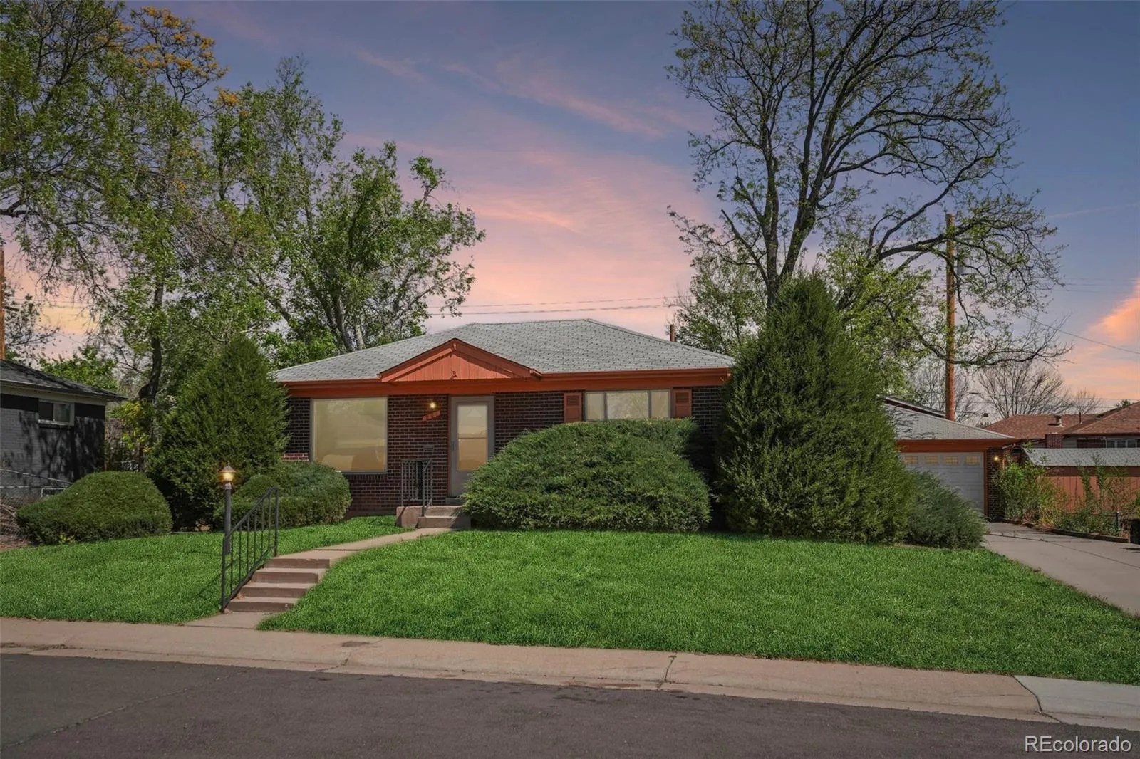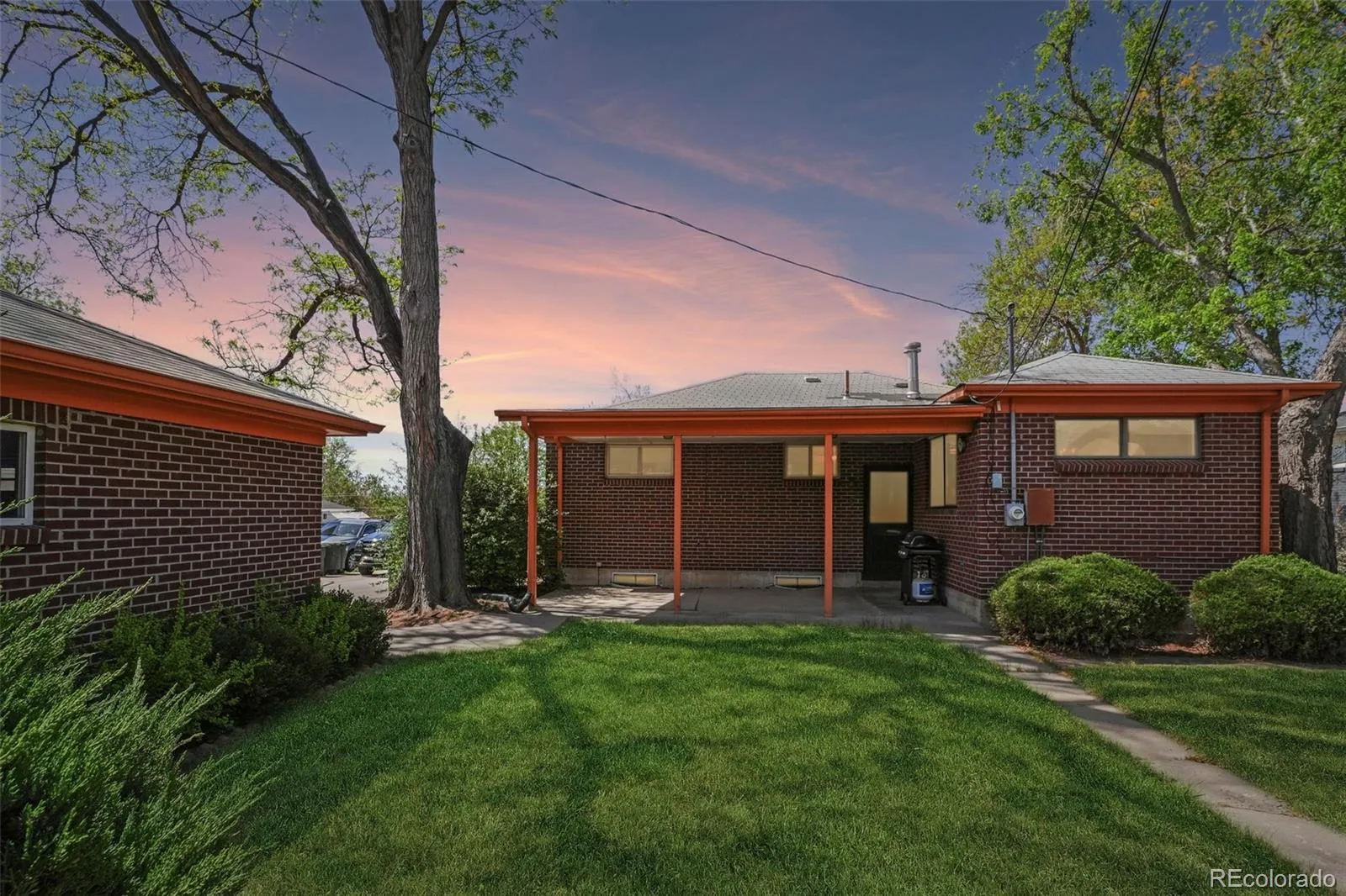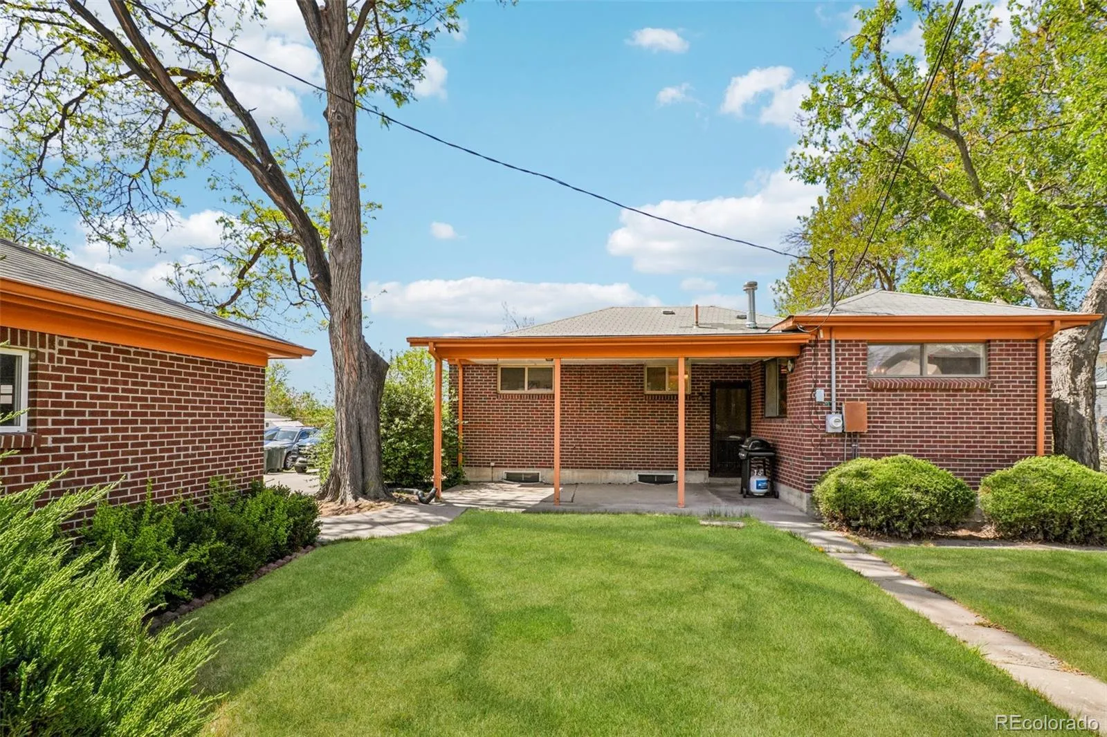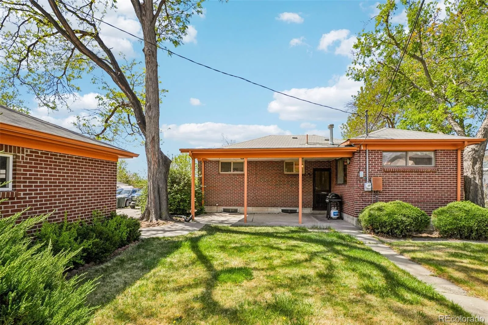Quaint, charming, and full of character—this classic brick ranch in Northglenn is ready to welcome you home. Offering 4 bedrooms and 2 bathrooms, this well-cared-for property blends timeless features with thoughtful updates. Step inside to a spacious living room filled with natural light from a large south-facing picture window. Fresh interior paint and brand-new carpet create a crisp, inviting feel, while beautifully refinished hardwood floors add warmth and style throughout the main level. The original owner expanded the home to include a dedicated dining room just off the kitchen, providing the perfect space for everyday meals or entertaining. The kitchen offers solid wood cabinetry, laminate countertops, and a tile backsplash, along with a smooth-top range/self-cleaning oven, range hood, and refrigerator—all included. Two main-floor bedrooms showcase stunning refinished hardwoods, and the updated ¾ bath features a low, easy-entry shower for added convenience. Downstairs, the finished basement expands your living space with a large family room, two additional bedrooms, and a second ¾ bath—ideal for guests, hobbies, or a home office. The laundry area includes a washer, dryer, and utility sink, while the unfinished section provides excellent storage with built-in shelving and even a stand-up freezer. Outside, you’ll find an oversized detached two-car brick garage and an extended driveway offering abundant off-street parking. Enjoy Colorado evenings under the spacious covered patio, surrounded by a yard equipped with a new automatic sprinkler system (2024). As a unique bonus, local historians note that the backyard is home to the largest hackberry tree in Northglenn—a special piece of local history right in your own yard. With its solid construction, flexible living space, and inviting charm, this home is one you won’t want to miss.