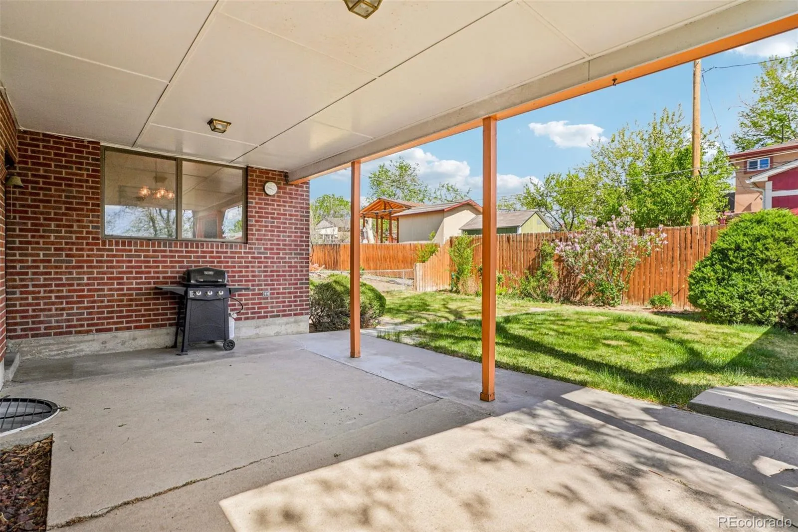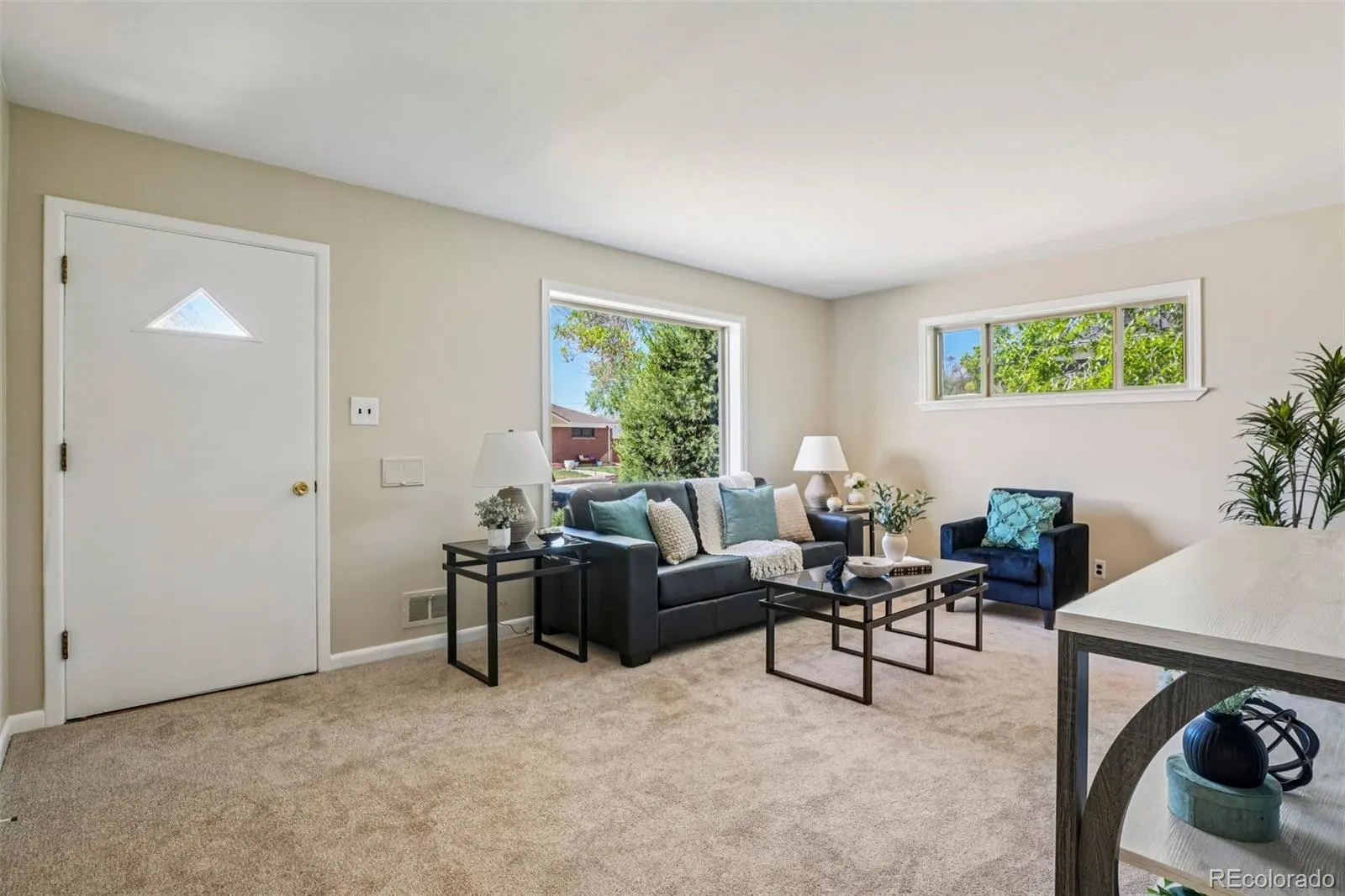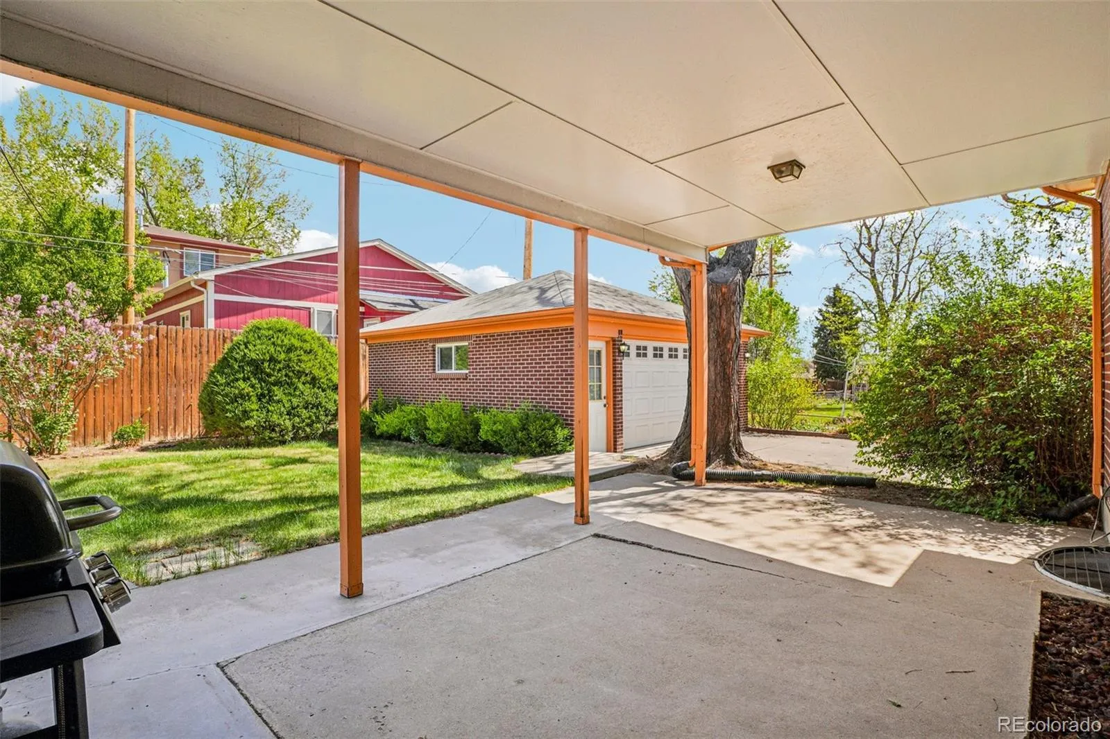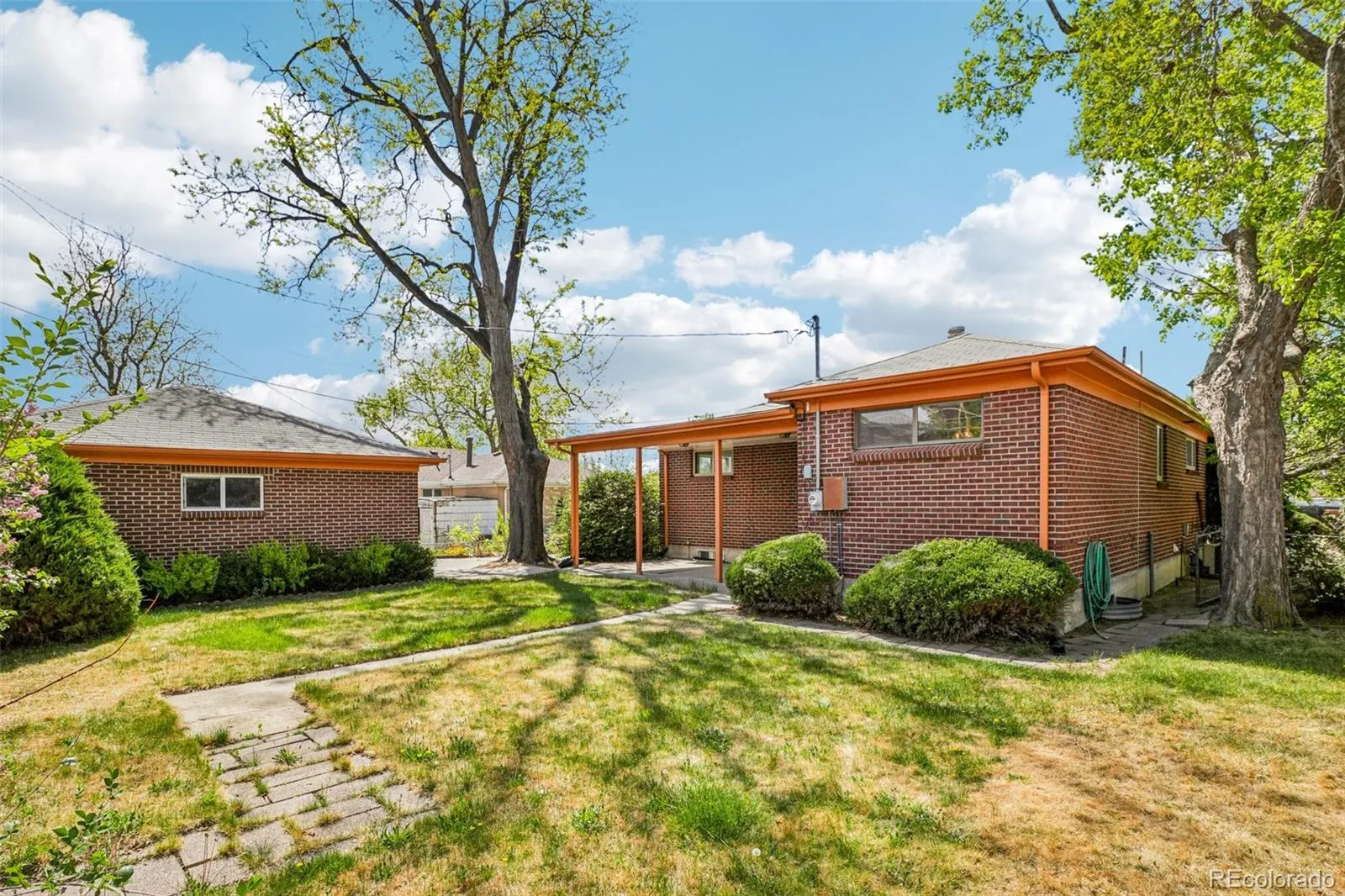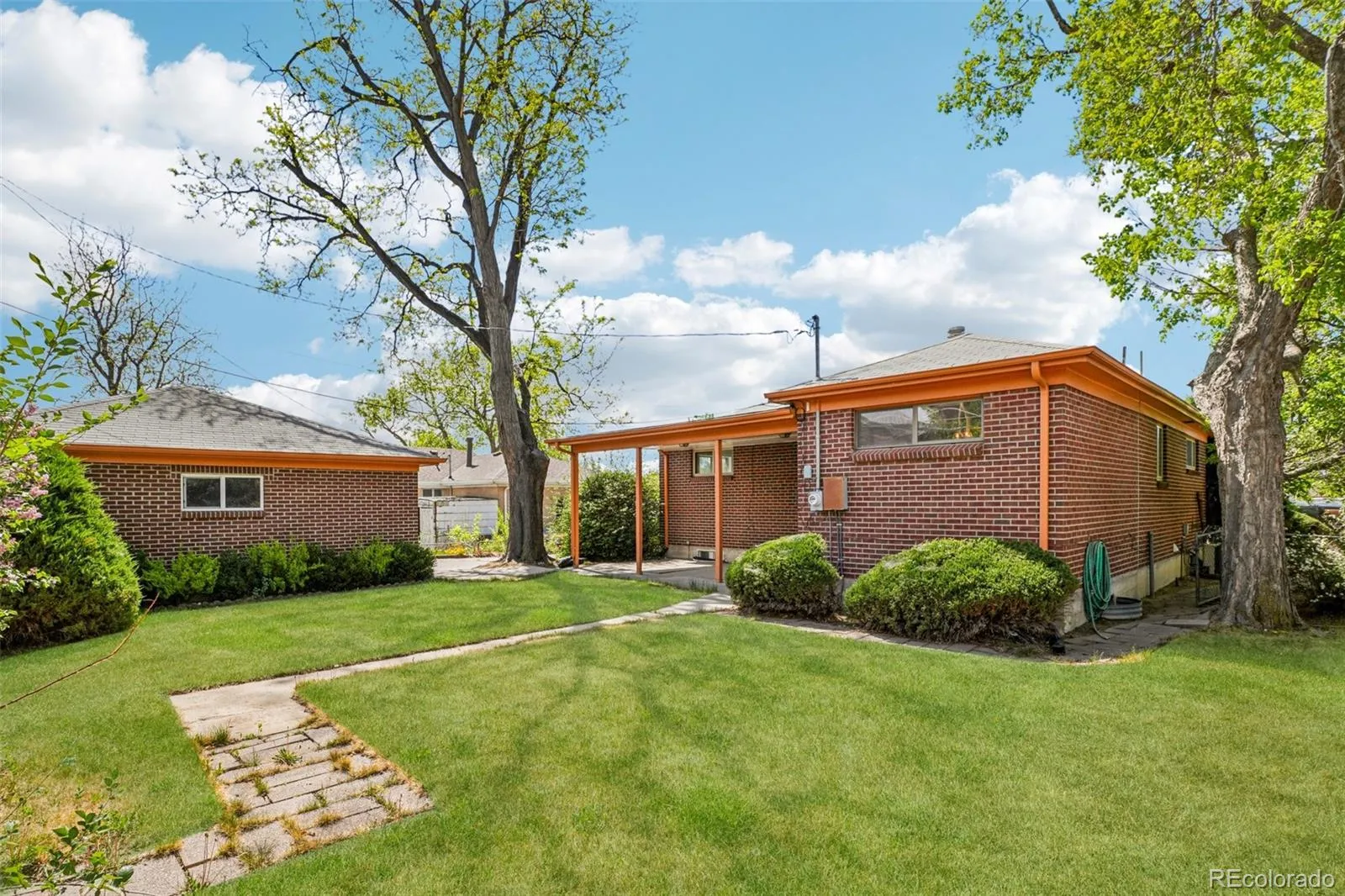 Quaint, charming, and full of character—this classic brick ranch in Northglenn is ready to welcome you home. Offering 4 bedrooms and 2 bathrooms, this well-cared-for property blends timeless features with thoughtful updates. Step inside to a spacious living room filled with natural light from a large south-facing picture window. Fresh interior paint and brand-new carpet create a crisp, inviting feel, while beautifully refinished hardwood floors add warmth and style throughout the main level. The original owner expanded the home to include a dedicated dining room just off the kitchen, providing the perfect space for everyday meals or entertaining. The kitchen offers solid wood cabinetry, laminate countertops, and a tile backsplash, along with a smooth-top range/self-cleaning oven, range hood, and refrigerator—all included. Two main-floor bedrooms showcase stunning refinished hardwoods, and the updated ¾ bath features a low, easy-entry shower for added convenience. Downstairs, the finished basement expands your living space with a large family room, two additional bedrooms, and a second ¾ bath—ideal for guests, hobbies, or a home office. The laundry area includes a washer, dryer, and utility sink, while the unfinished section provides excellent storage with built-in shelving and even a stand-up freezer. Outside, you’ll find an oversized detached two-car brick garage and an extended driveway offering abundant off-street parking. Enjoy Colorado evenings under the spacious covered patio, surrounded by a yard equipped with a new automatic sprinkler system (2024). As a unique bonus, local historians note that the backyard is home to the largest hackberry tree in Northglenn—a special piece of local history right in your own yard. With its solid construction, flexible living space, and inviting charm, this home is one you won’t want to miss.