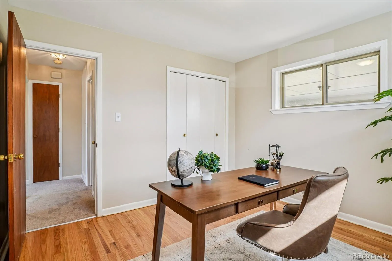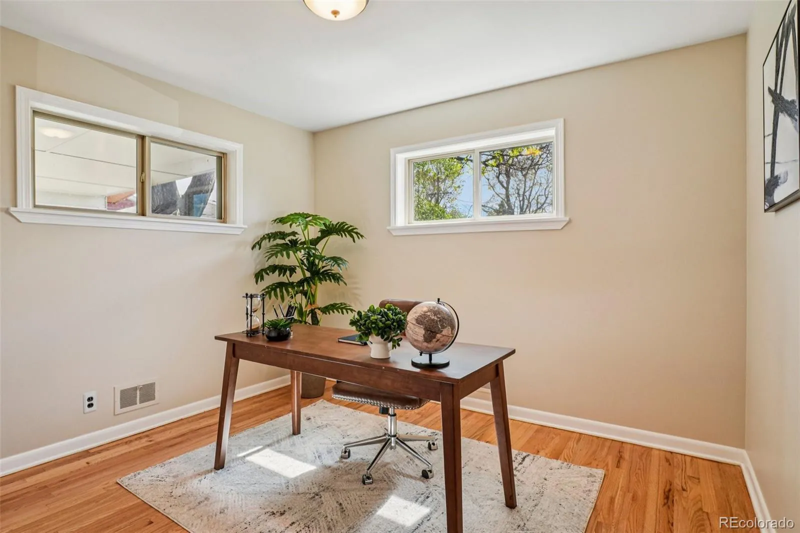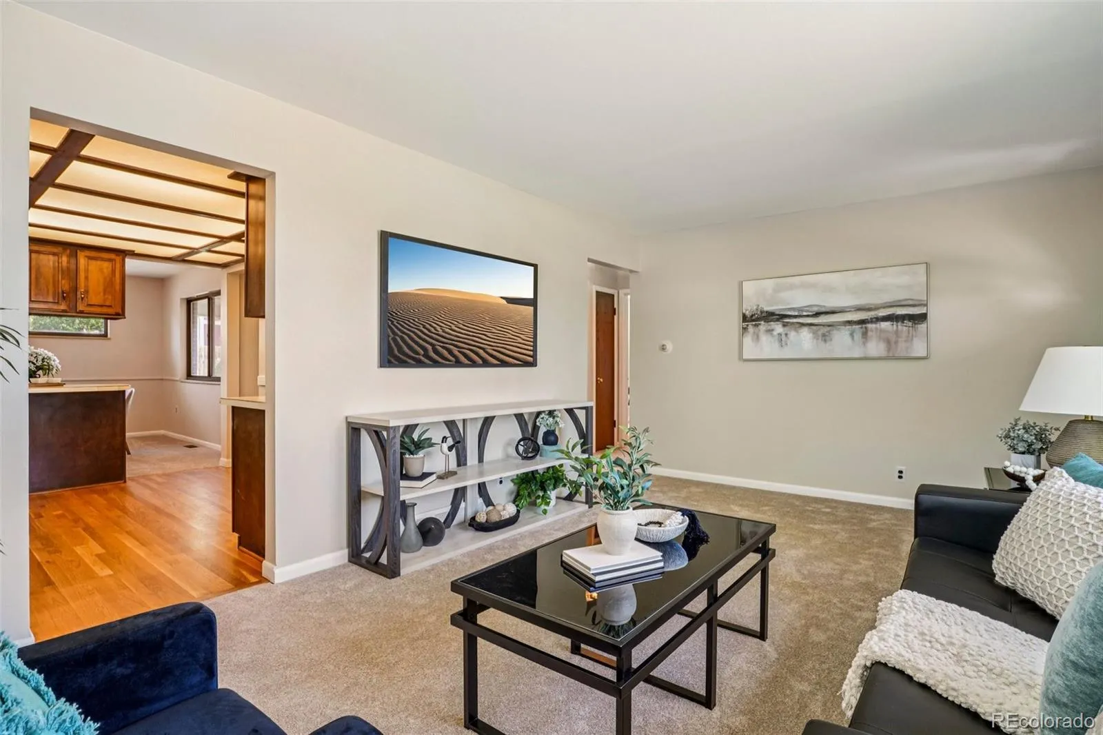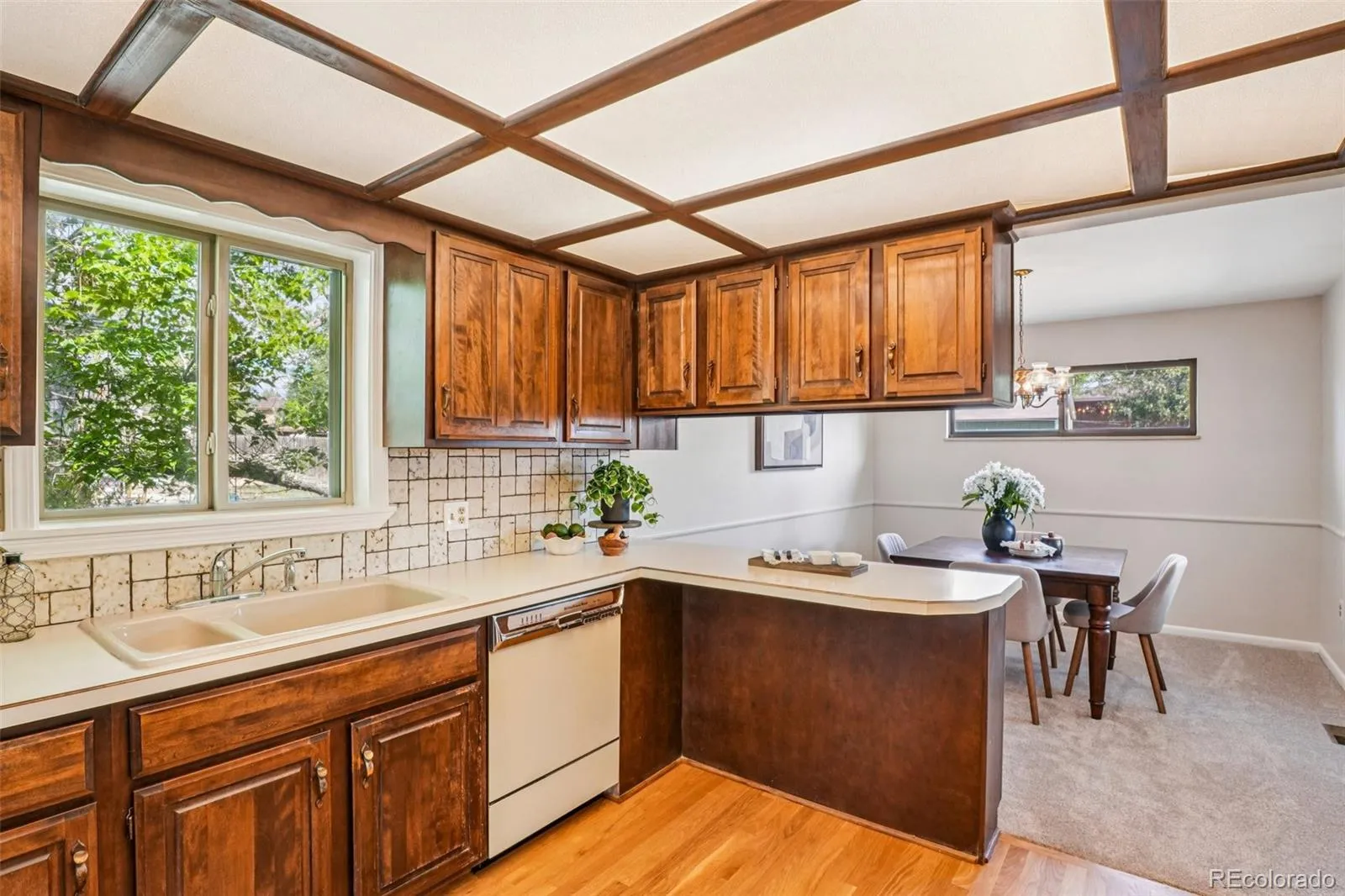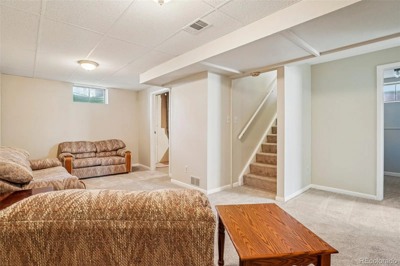Quaint, charming, and full of character—this classic brick ranch in Northglenn is ready to welcome you home. Offering 4 bedrooms and 2 bathrooms, this well-cared-for property blends timeless features with thoughtful updates. Step inside to a spacious living room filled with natural light from a large south-facing picture window. Fresh interior paint and brand-new carpet create a crisp, inviting feel, while beautifully refinished hardwood floors add warmth and style throughout the main level. The original owner expanded the home to include a dedicated dining room just off the kitchen, providing the perfect space for everyday meals or entertaining. The kitchen offers solid wood cabinetry, laminate countertops, and a tile backsplash, along with a smooth-top range/self-cleaning oven, range hood, and refrigerator—all included. Two main-floor bedrooms showcase stunning refinished hardwoods, and the updated ¾ bath features a low, easy-entry shower for added convenience. Downstairs, the finished basement expands your living space with a large family room, two additional bedrooms, and a second ¾ bath—ideal for guests, hobbies, or a home office. The laundry area includes a washer, dryer, and utility sink, while the unfinished section provides excellent storage with built-in shelving and even a stand-up freezer. Outside, you’ll find an oversized detached two-car brick garage and an extended driveway offering abundant off-street parking. Enjoy Colorado evenings under the spacious covered patio, surrounded by a yard equipped with a new automatic sprinkler system (2024). As a unique bonus, local historians note that the backyard is home to the largest hackberry tree in Northglenn—a special piece of local history right in your own yard. With its solid construction, flexible living space, and inviting charm, this home is one you won’t want to miss.