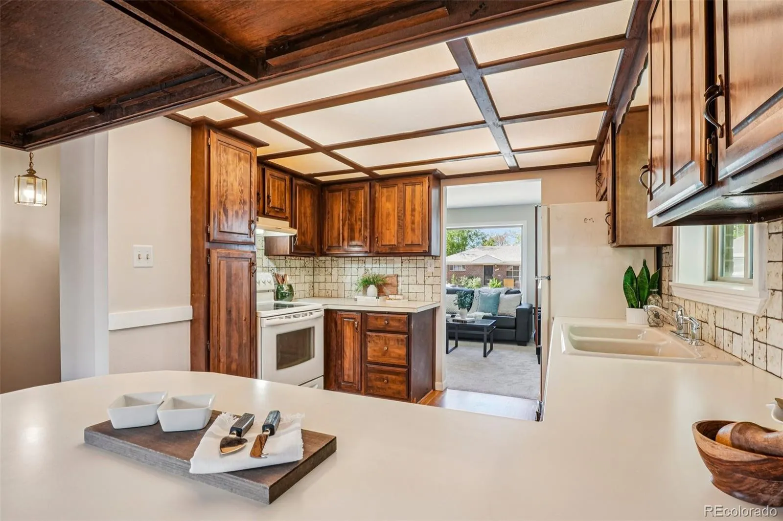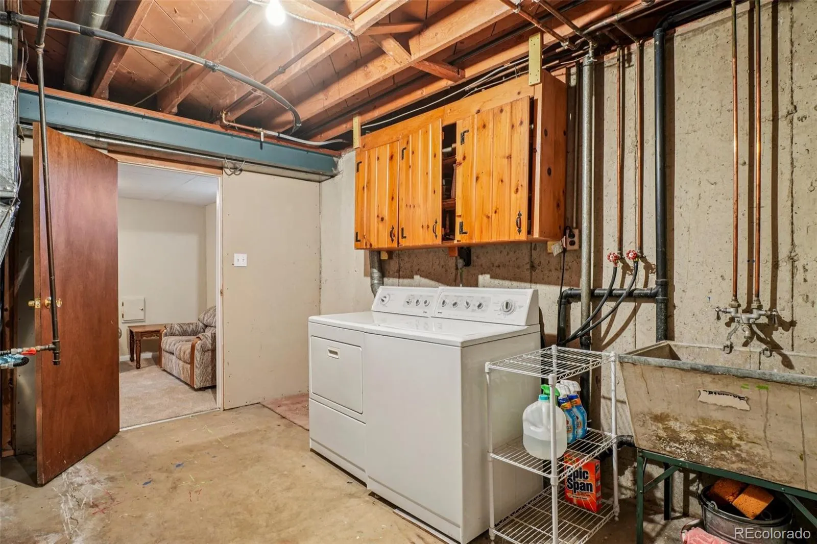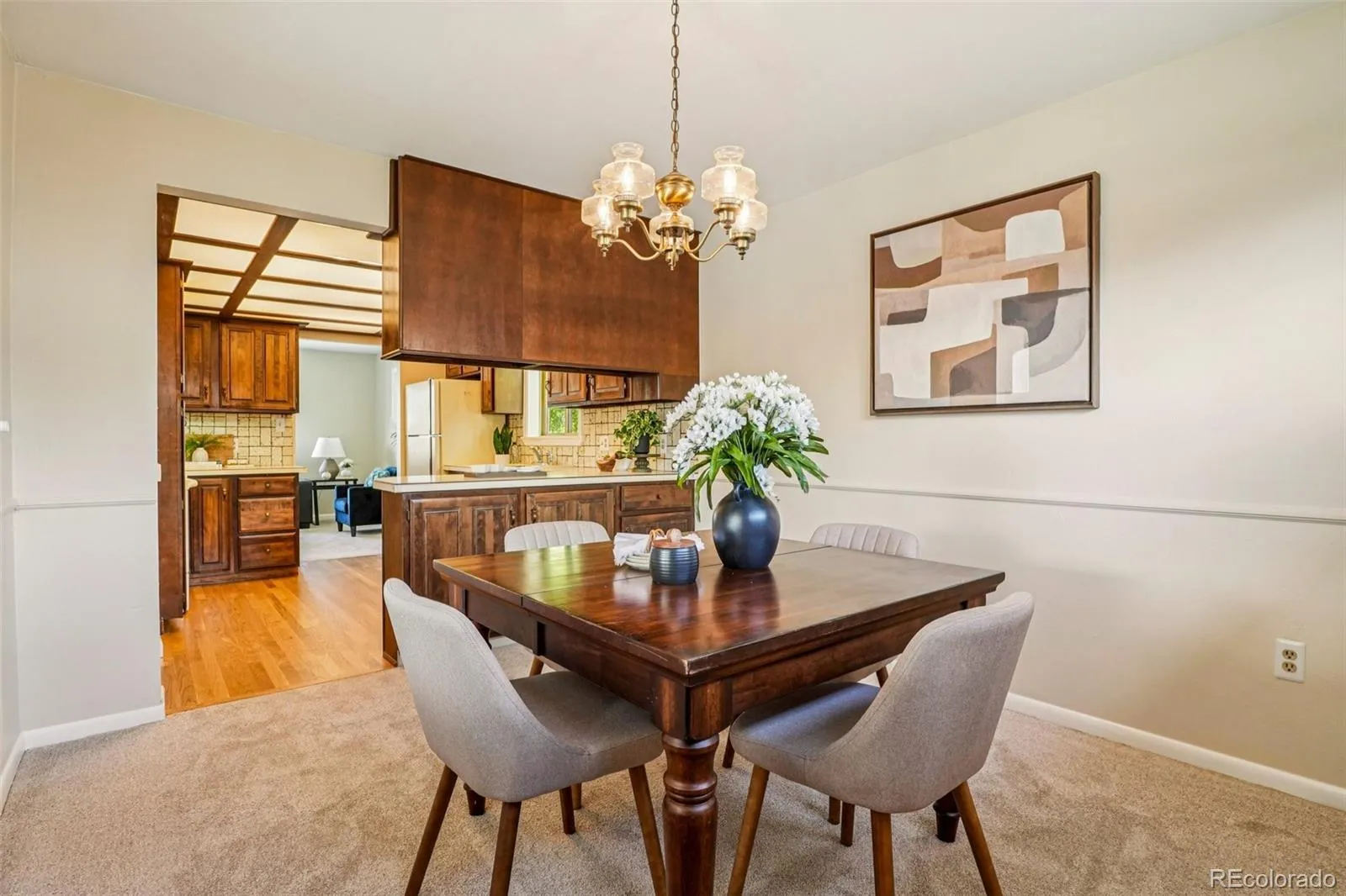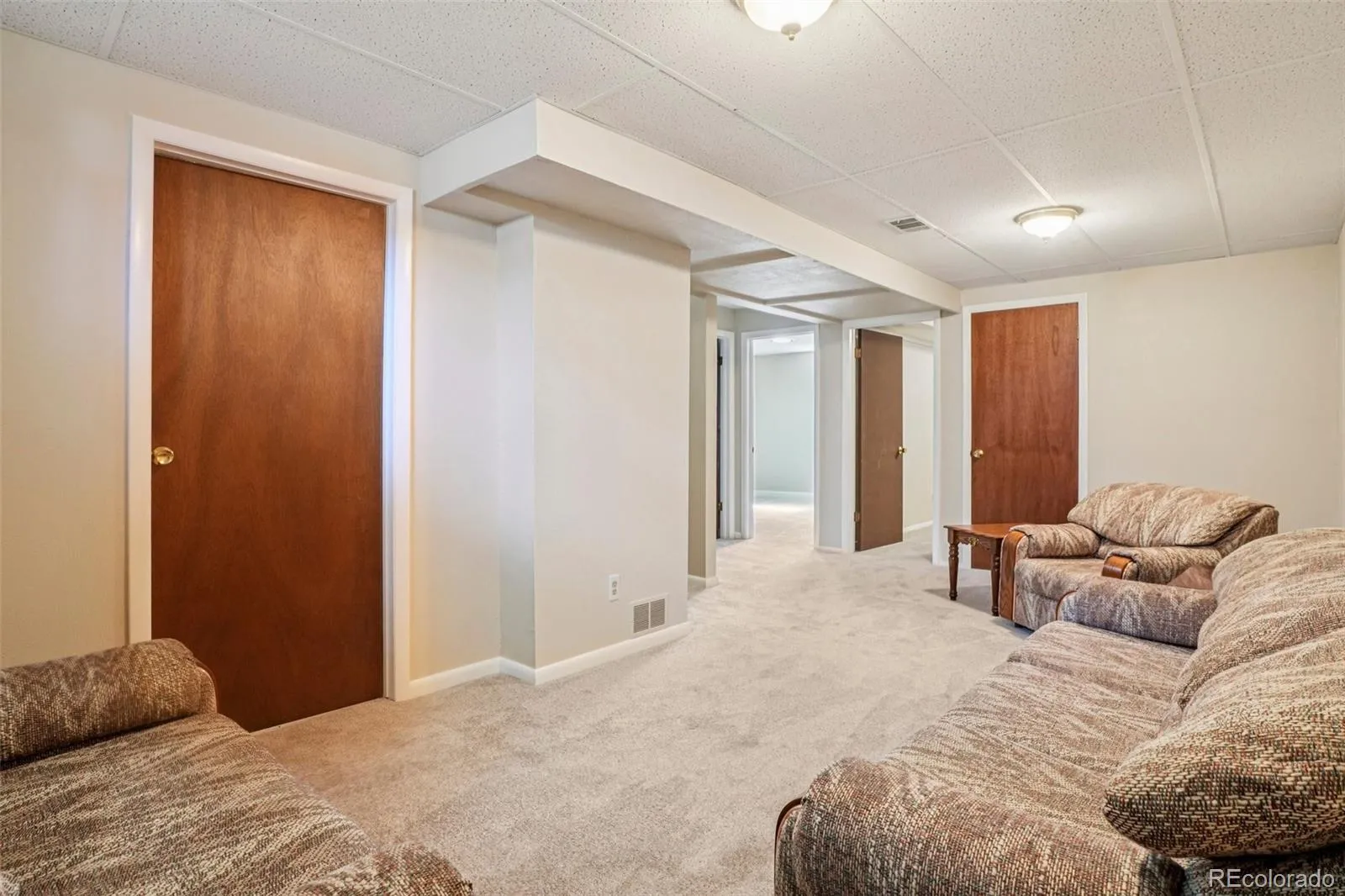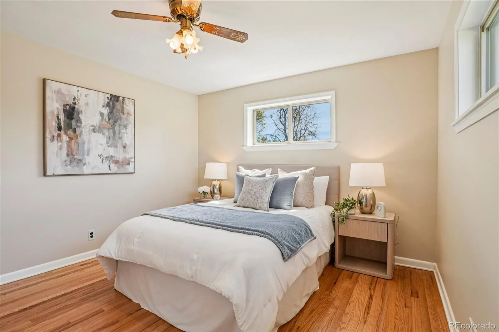 Quaint, charming, and full of character—this classic brick ranch in Northglenn is ready to welcome you home. Offering 4 bedrooms and 2 bathrooms, this well-cared-for property blends timeless features with thoughtful updates. Step inside to a spacious living room filled with natural light from a large south-facing picture window. Fresh interior paint and brand-new carpet create a crisp, inviting feel, while beautifully refinished hardwood floors add warmth and style throughout the main level. The original owner expanded the home to include a dedicated dining room just off the kitchen, providing the perfect space for everyday meals or entertaining. The kitchen offers solid wood cabinetry, laminate countertops, and a tile backsplash, along with a smooth-top range/self-cleaning oven, range hood, and refrigerator—all included. Two main-floor bedrooms showcase stunning refinished hardwoods, and the updated ¾ bath features a low, easy-entry shower for added convenience. Downstairs, the finished basement expands your living space with a large family room, two additional bedrooms, and a second ¾ bath—ideal for guests, hobbies, or a home office. The laundry area includes a washer, dryer, and utility sink, while the unfinished section provides excellent storage with built-in shelving and even a stand-up freezer. Outside, you’ll find an oversized detached two-car brick garage and an extended driveway offering abundant off-street parking. Enjoy Colorado evenings under the spacious covered patio, surrounded by a yard equipped with a new automatic sprinkler system (2024). As a unique bonus, local historians note that the backyard is home to the largest hackberry tree in Northglenn—a special piece of local history right in your own yard. With its solid construction, flexible living space, and inviting charm, this home is one you won’t want to miss.