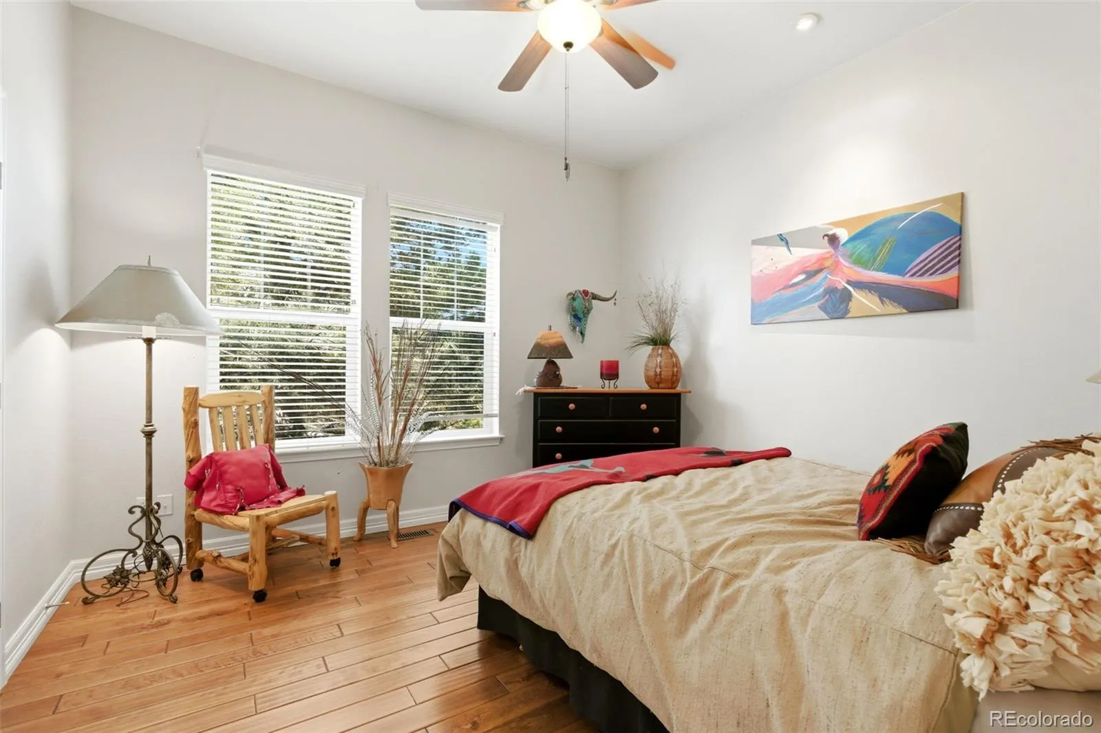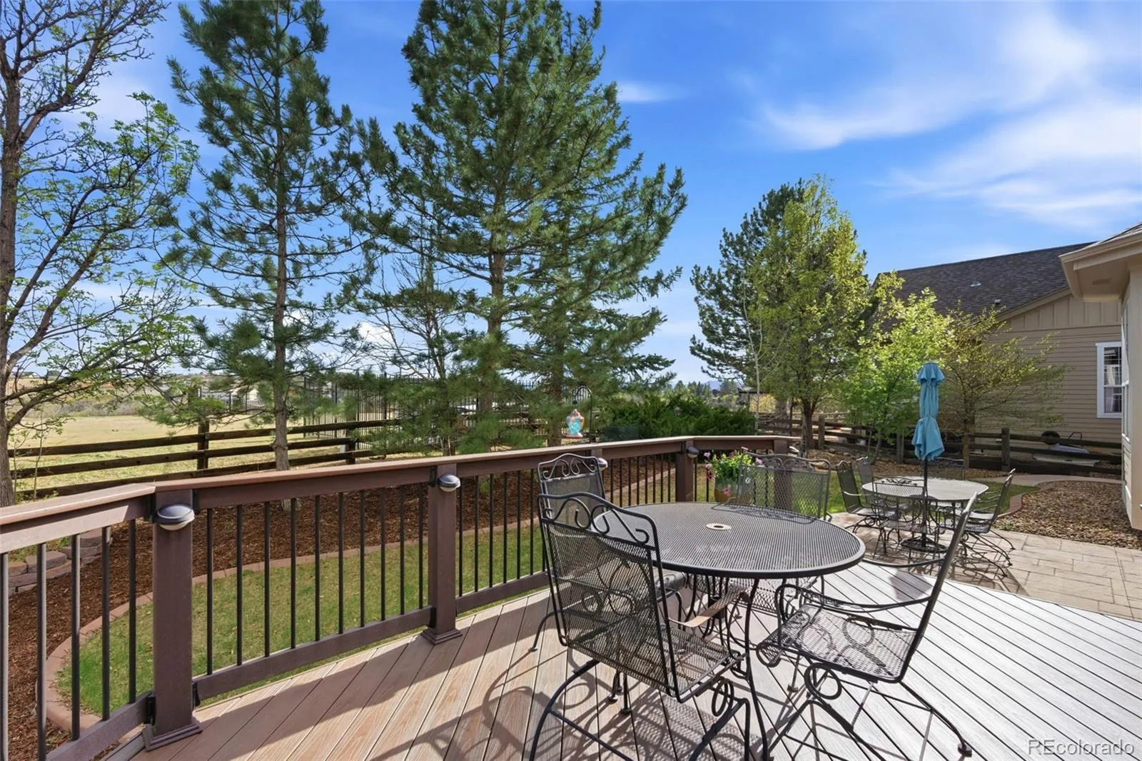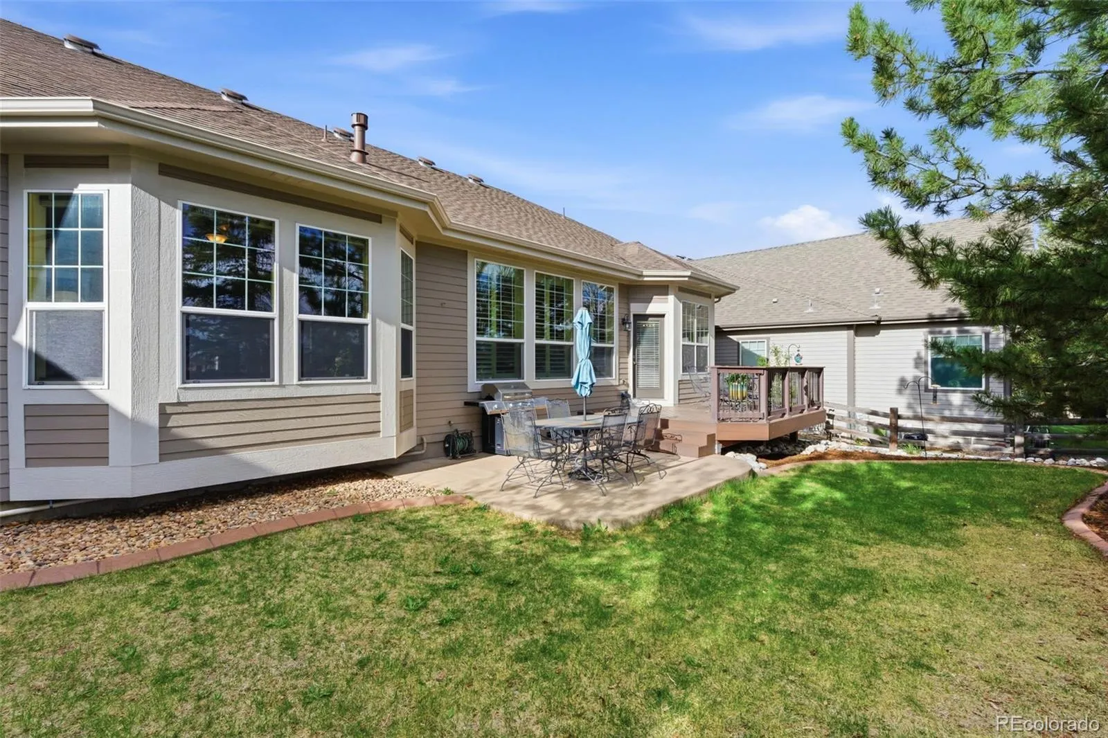 Large windows along the back of the home bring in natural light and showcase the open space and mountain views. Step outside to relax on the private Trex deck or stamped concrete patio, an ideal setting to enjoy Colorado sunsets!