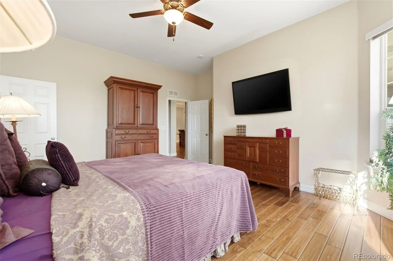 The primary suite is filled with natural light and captures mountain views, along with a 5 piece bath and a large walk-in closet.