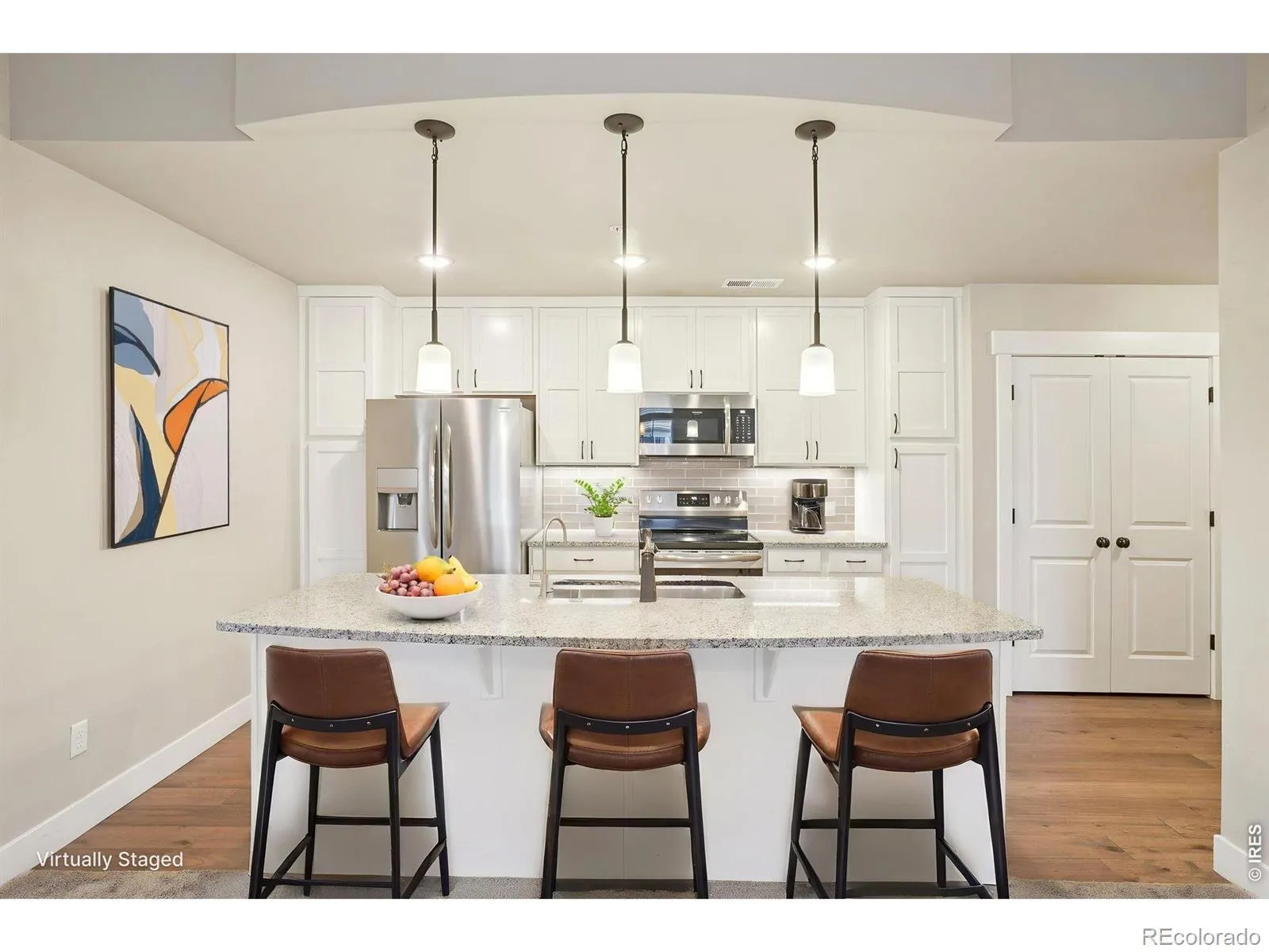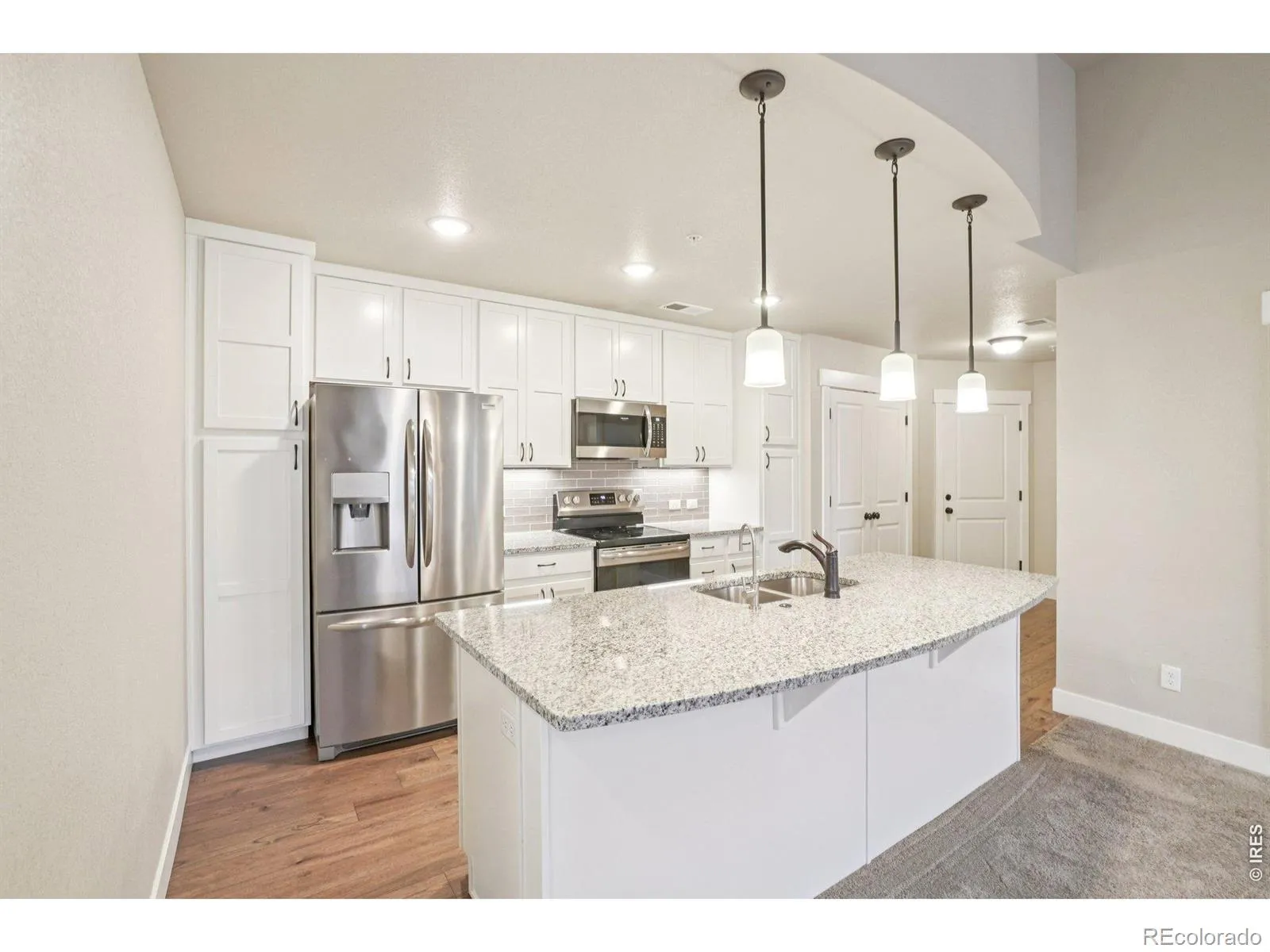**OPEN HOUSE SUNDAY 10-12!!** Easy living meets modern luxury in this stunning Landmark condo, featuring high ceilings, expansive windows, and clean, contemporary finishes that create a bright and inviting space. Located on the 3rd floor, this end-unit Oxford plan offers windows on two sides, bringing in abundant natural light. The secure building includes controlled entry, an elevator, and security cameras in common areas for added peace of mind. At The Flats at Centerra, residents enjoy a beautifully appointed clubhouse with a fully equipped fitness center, nearby dining within walking distance, and over 3.5 miles of scenic trails around Equalizer and Houts Lakes, plus convenient access to I-25 and MCR for easy commuting. Additional highlights include a reverse osmosis water filtration system at the kitchen sink, a stackable washer and dryer included, and relaxing mountain views from the private patio. The detached garage is just steps from the building’s back entrance. HOA dues cover basic cable and high-speed internet. Quick possession available!