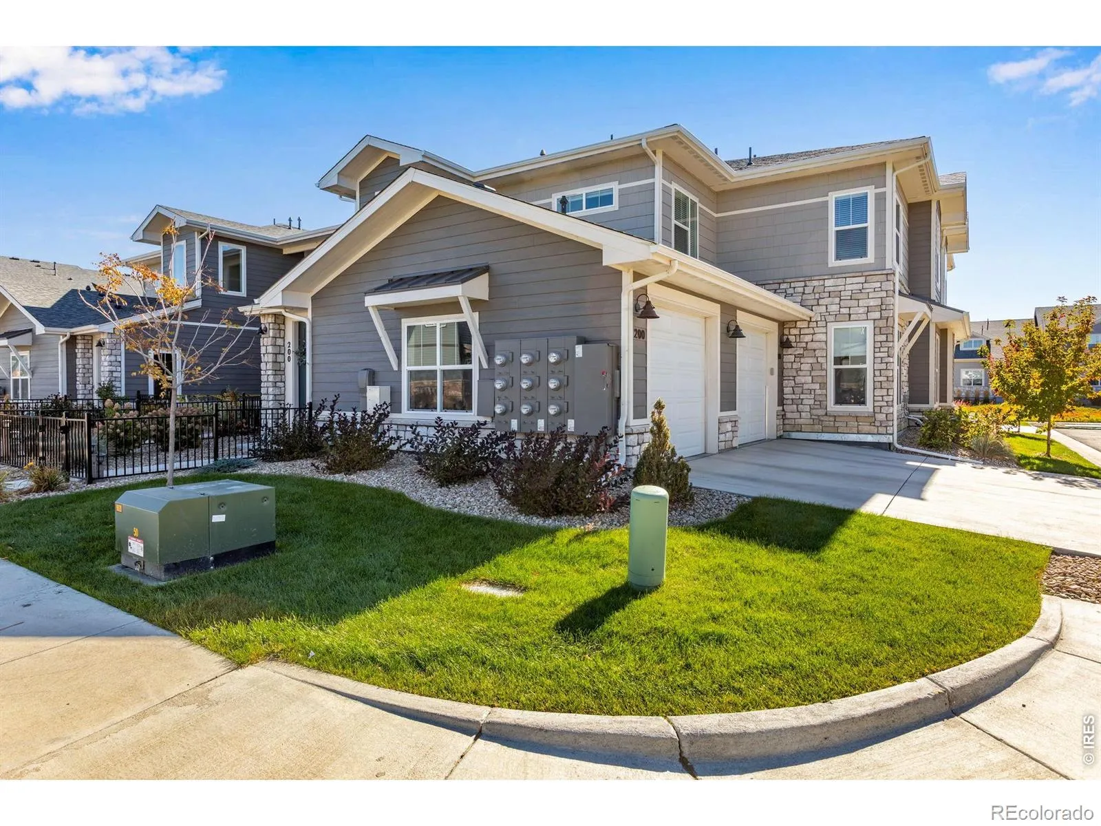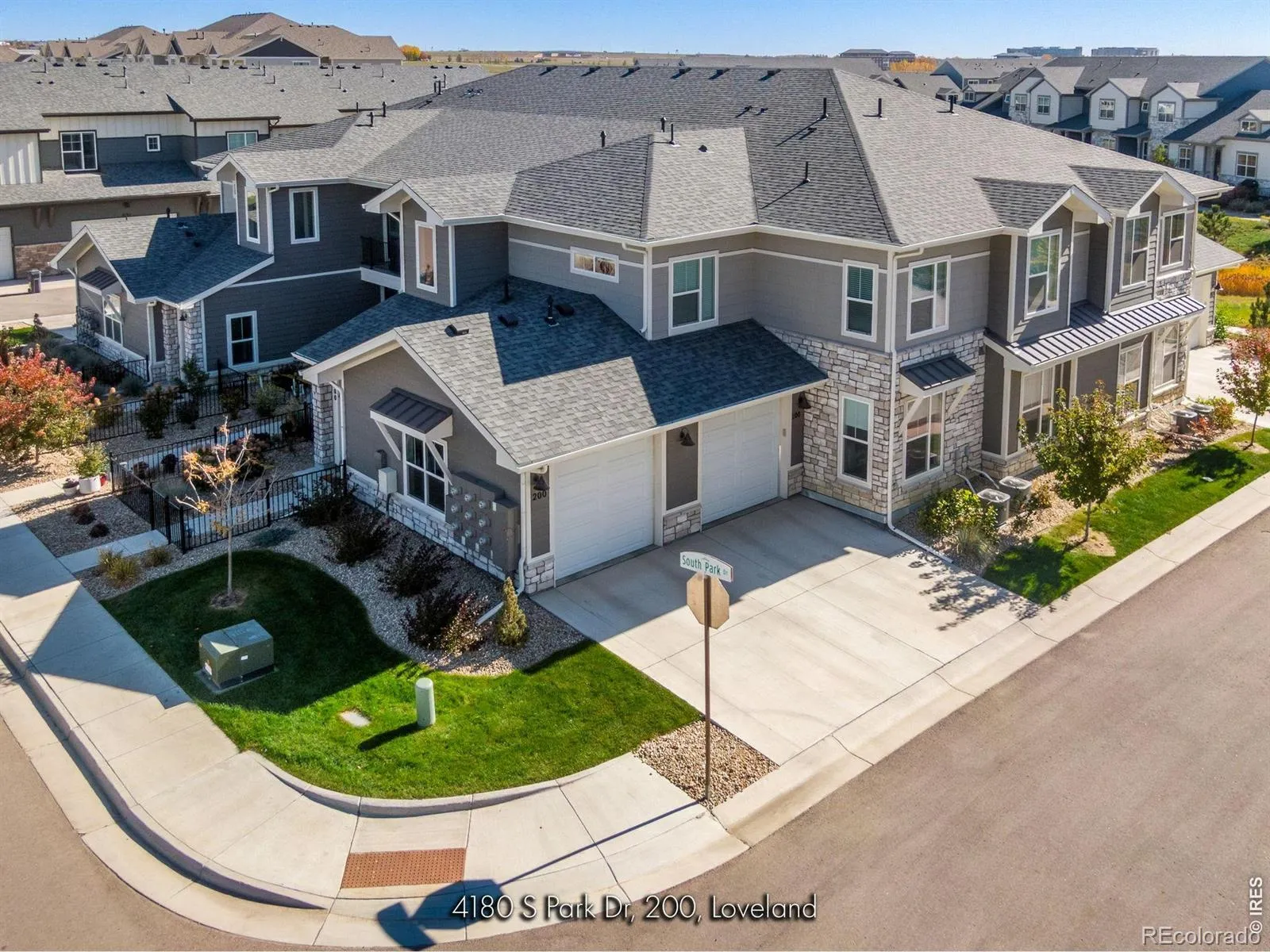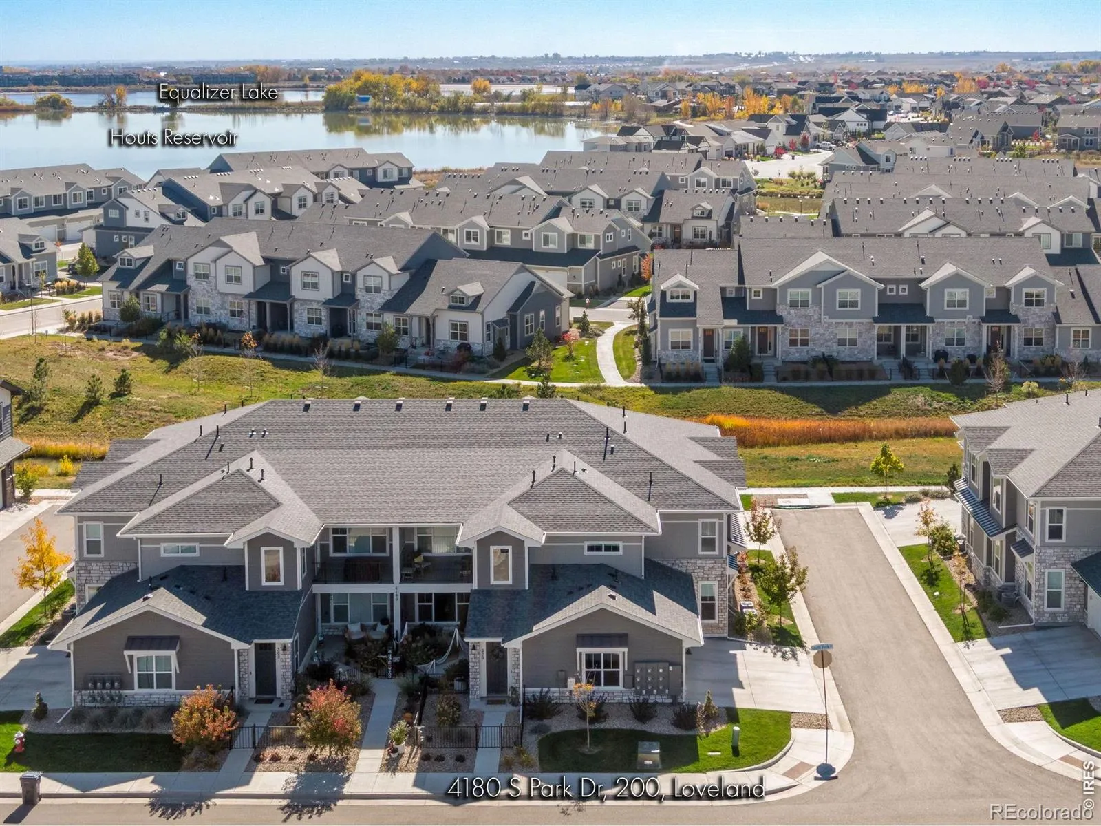 Move-in Ready + loaded with upgrades! An exceptionally sunny corner end-residence, townhome-style condo in the coveted Lakes at Centerra, ideally positioned moments from I-25 and Highway 34 with effortless access to Centerra’s premier amenities! Adorable Raised Ranch lightly lived-in & inviting open-concept layout. 1,653 finished SQFT with 1,535 SQFT on one level living, thoughtfully designed with 3 Bedrooms + versatile Office Nook area, 2 Bathrooms balancing comfort, function and style. The west-facing oversized single-car garage is fully insulated and sheet-rocked with an insulated door panel, perfect for Colorado seasons-while acres of HOA-protected open space to the south create a peaceful backdrop with immediate trail access. Inside – abundant storage off foyer and adjacent to the stairwell. The generous Primary suite serves as a private retreat with a walk-in closet & separate dual vanities in a spa-inspired primary bath with cool down seat in the shower. An expansive living room, covered front porch, and comfortable balcony enhance indoor-outdoor livability. Featuring a high efficiency furnace, tankless water heater & gorgeous designer finishes: quartz counters, full kitchen subway tile splash, maple cabinetry, stainless steel appliances and stainless appliances. Just down the street from the new park & Explorer’s Club, miles of stunning trail access and along with access to Houts Reservoir & Equalizer Lake, close to the clubhouse, pool & community garden, play area, and High plains environment center. Minutes from all the Centerra shops/restaurants & Medical Center of the Rockies & the new Avenue South Centerra development/south side of 34 (HOA includes internet too/Pulse High Speed Fiber.) Easy guest parking to the north.
