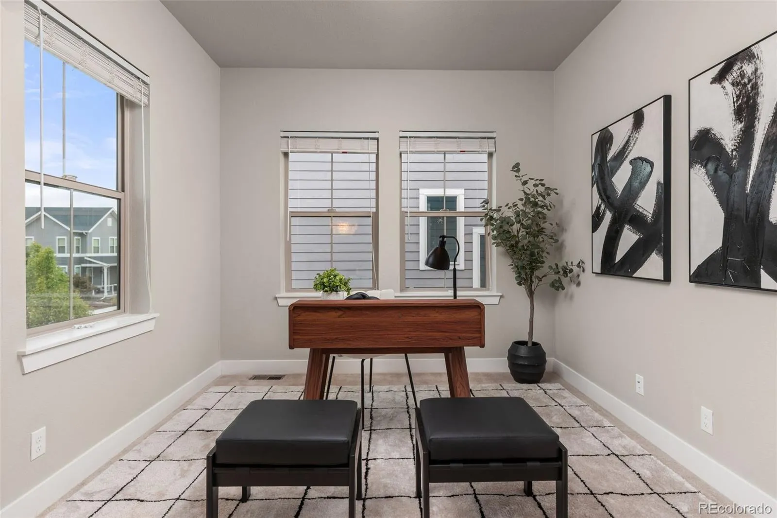 Beautifully finished and truly move-in ready, this stunning North End home offers an elevated blend of style, comfort, and location. Rich hardwood flooring flows throughout the main level, creating a warm, sophisticated backdrop for both everyday living and effortless entertaining. The heart of the home is a beautifully appointed kitchen featuring a large center island, abundant cabinetry, and seamless connection to the open-concept living and dining spaces. Soaring ceilings and expansive windows flood the living area with natural light, while the dining space offers easy indoor-outdoor flow—perfect for hosting or relaxed evenings at home. A convenient main-level powder room completes the space. Upstairs, a light-filled loft offers incredible flexibility as a home office, media room, or additional living space, with the option to easily convert into a third bedroom. The primary suite is a peaceful retreat with generous proportions, large windows, and a private bath with dual sinks and a spacious shower. A well-sized secondary bedroom and full bath complete the upper level. The finished basement expands the home’s versatility with a large recreation area, an additional bedroom, and a full bath—ideal for guests or multi-generational living. Perfectly positioned in the heart of the North End, enjoy exceptional walkability to local schools including Northfield High School, along with close proximity to the Rocky Mountain Arsenal, Splash Landing Pool and Park, and neighborhood pump track. Low-maintenance living meets timeless design in one of Central Park’s most sought-after locations—this is a home that truly won’t last long.
