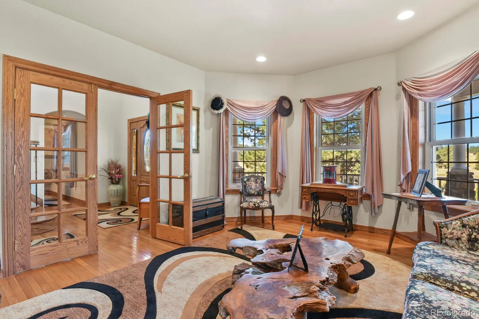 Country living at it’s best. This exquisite 5 BR 4 BA dream home sits on 65 acres. The setting is magnificent w/ towering pines surrounding the home. The front of the house boast a partial wraparound composite deck w/ vinyl railing. The front door opens into a 2 story foyer w/ impressive double staircase w/ designer metal balusters. Journey into the large open family room w/ two story stone fireplace perfect for entertaining. The large kitchen is a chefs dream w/ stainless steal appliances, granite counters, porcelain tiles, maple cabinets, walk in pantry, & breakfast nook. For formal dinners a separate, formal dining room with coffered ceilings. The main floor also boasts living room, bedroom w/ custom built in shelving (perfect for an office), & full bath. Travel upstairs to the Primary Suite with coffered ceilings, private sitting room, fireplace, & kitchenette, also a large 5 piece bath & walk in closet. There is a second primary bedroom w/ ensuite bathroom, as well as 2 additional bedrooms, 4 piece bath & loft that overlooks family room. The walkout basement is unfinished but was designed for 2 additional bedrooms, living room, 2 bathrooms & sauna just waiting to be completed. This incredible home was custom designed w/ no expense spared w/ wood finishing throughout, radiant floor heating, & has been pristinely cared for. Exit the back of the house thru the family room French Doors onto the stamped concrete patio perfect for family gatherings. There is a sprinkler system for the front & back & drip system for flower beds. The 40×60 work shop has electric and concrete floor perfect for storing tractors, RV’s, cars, or any other toys. Property is fenced & perfect for grazing. Zoned agricultural & currently has a tax ag status to keep taxes low. Water rights & mineral rights have not been filed but are available. This beautiful one of a kind home won’t last long. W/ full priced offer Ford Model 2120 tractor & attachments are included. New roof & gutters on house.
