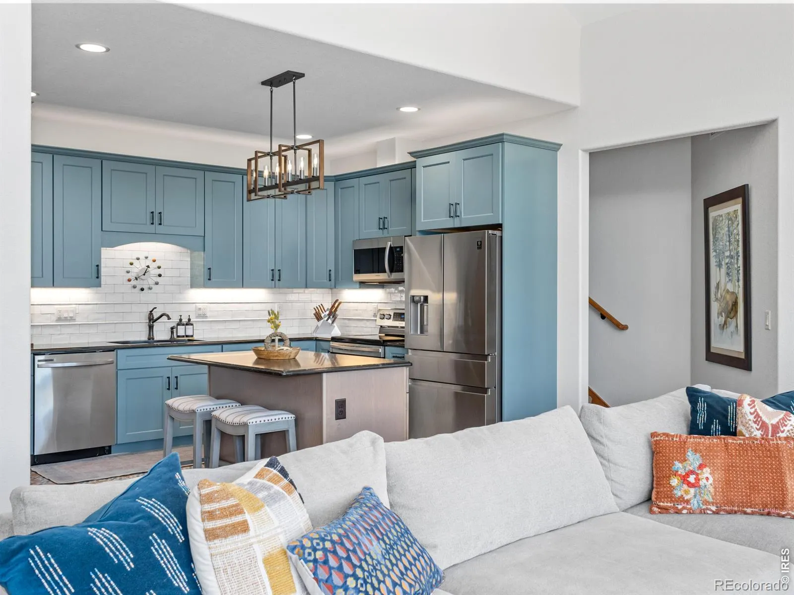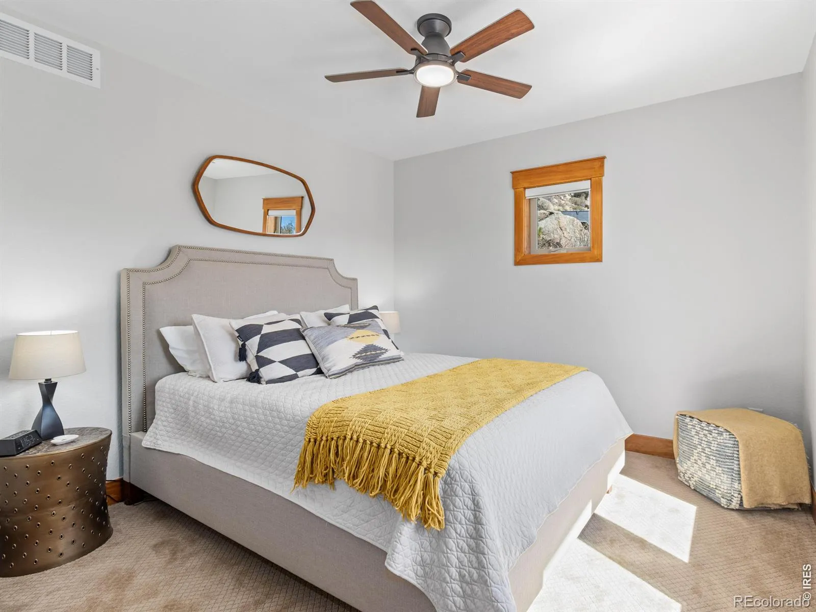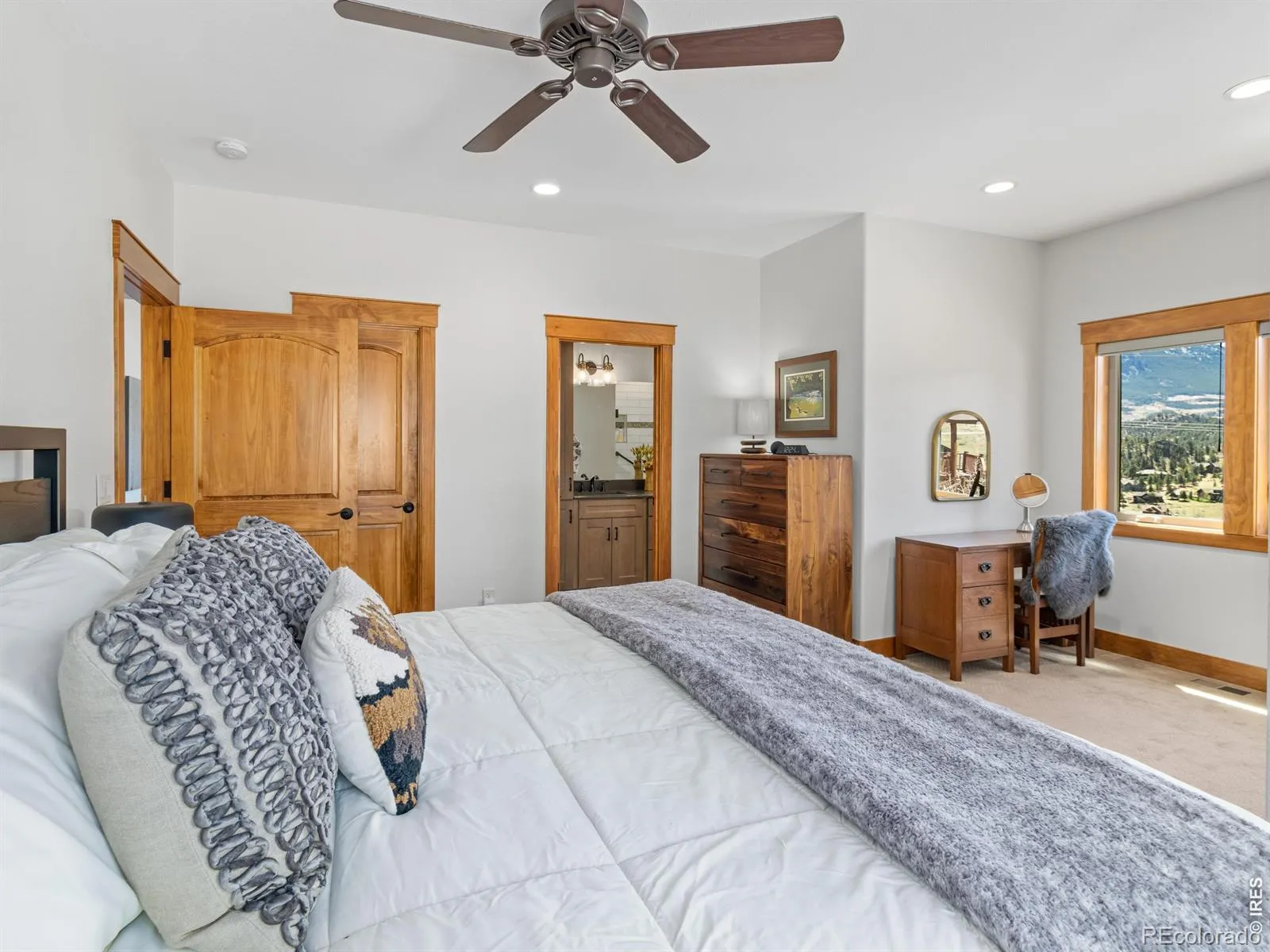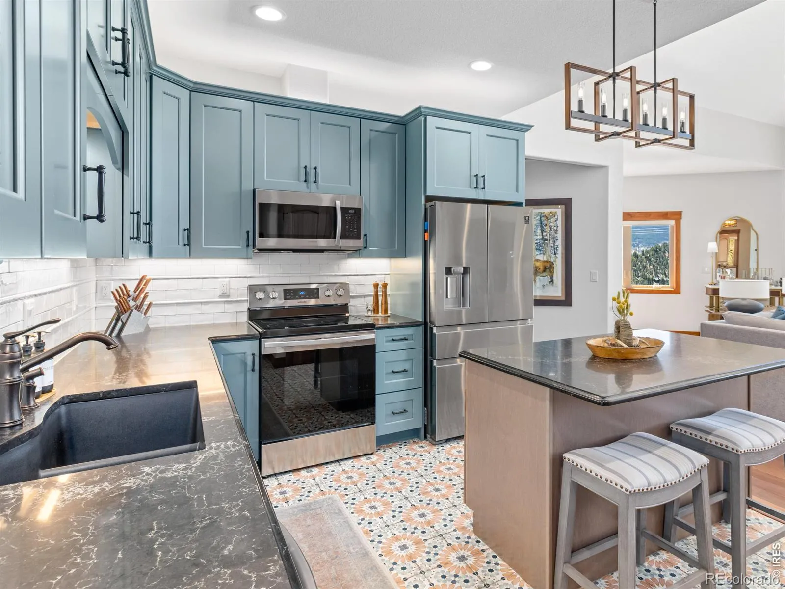 Enfolded in a hillside of big boulders & backing up to The Thumb Open Space, the stunning mountain home @ 225 Curry Dr is a true gem. Cross-Valley Views from Kruger Rock to Giant Track Mtn, w/ Twin Sisters the focal point & Twin Peaks – Longs & Meeker – crowning the scene, provide an ever-changing procession of light & shadows through the day. Located on the south slope of Prospect Mtn in the Prospect Highlands neighborhood, this beautiful, like-brand-new Estes Park home features luxurious, high-end finishes & a long list of new upgrades. Natural light floods into this beautifully crafted home, & there’s truly breath-taking views from every window. Inside, the home feels both refined & comfortable, w/ a clean, modern aesthetic, open-concept living, & nice big kitchen w/ island & pantry. The main level primary suite is positioned for privacy & convenience, & there is an office, mudroom/laundry room and exercise area rounding out the downstairs. Upstairs are add’l BRs & flexible living space. Quality finishes & smart design choices are evident throughout, from the sunshine pouring in the wall of south-facing windows – keeping the home bright-lit all day and warm w/ solar gain in the winter, perfect for relaxation & rejuvenation – to the efficient layout, to the generous storage. Recent upgrades include Central A/C, Hunter Douglas Blinds, Deck Awning. Hiking Trails are nearby & you can walk out the door & loop through the Thumb Open Space for a fantastic workout and amazing views. Homer Rouse Trail & Lily Mountain are a short drive to additional dog-friendly trails and there’s quick & easy access to downtown Estes & Rocky Mountain National Park. Outside the house, you’re immersed in classic Estes Park terrain – big rock outcroppings, mature evergreens, and open skies – yet still within city limits with paved access & utilities. Whether you’re looking for a full-time residence or a mountain getaway, this home delivers with newer construction, & truly exceptional views.