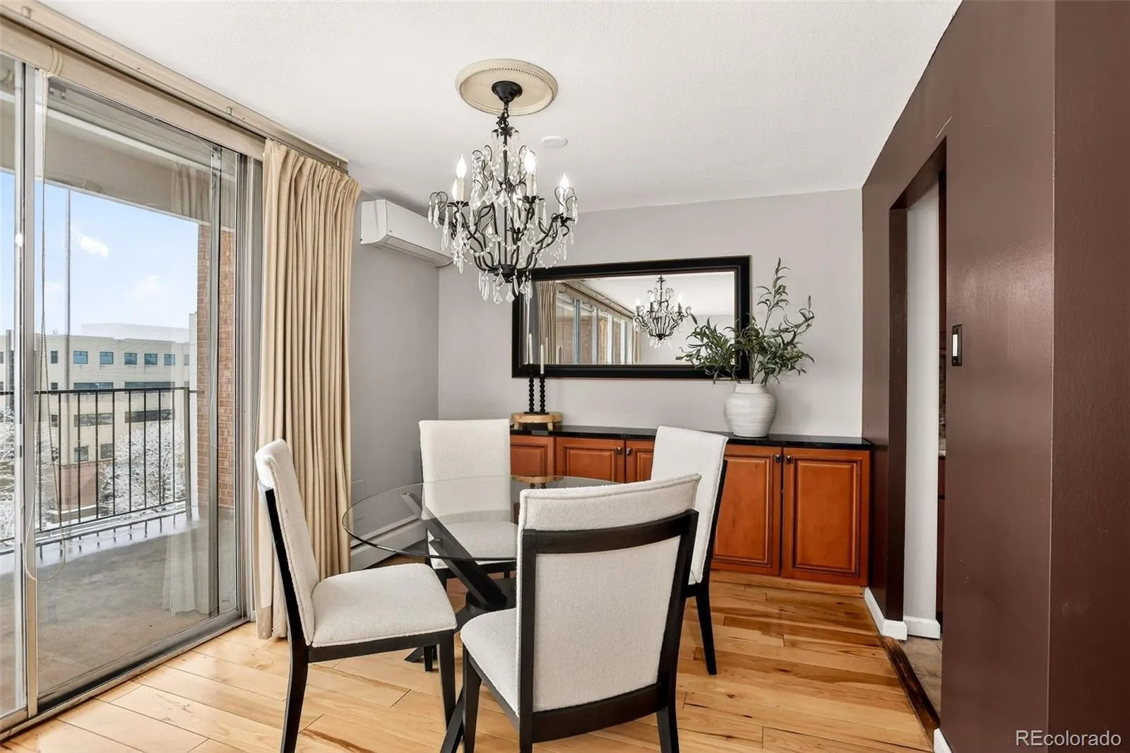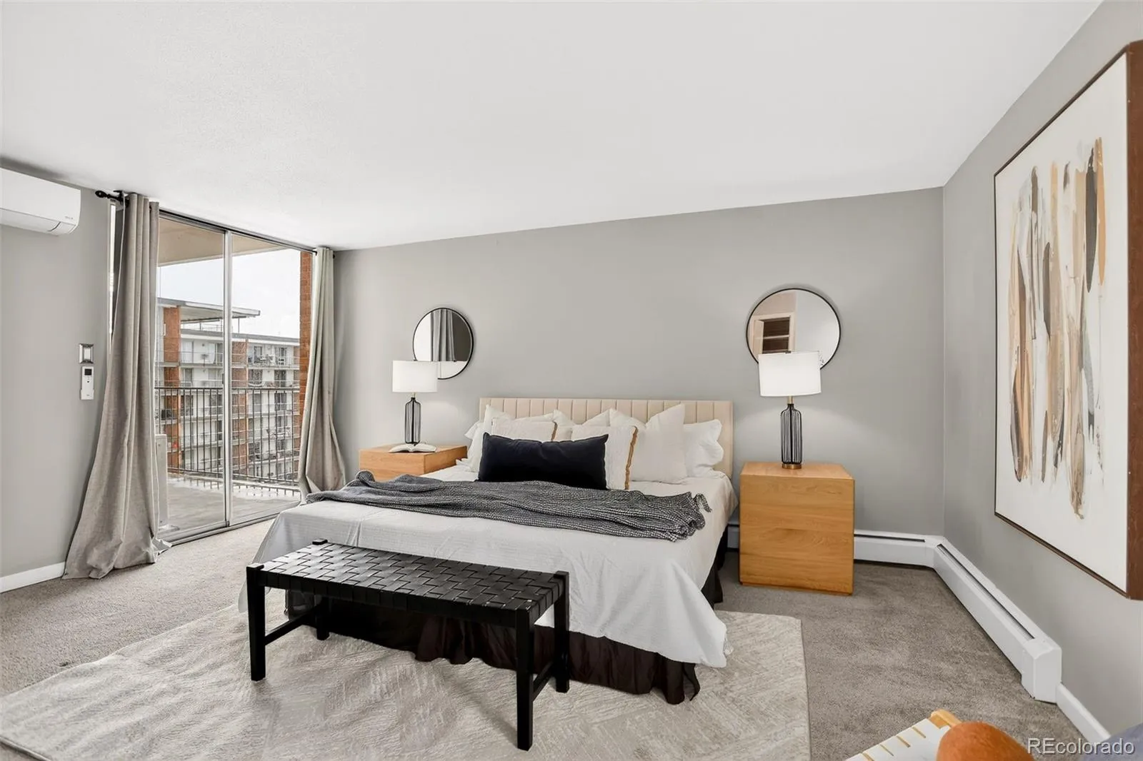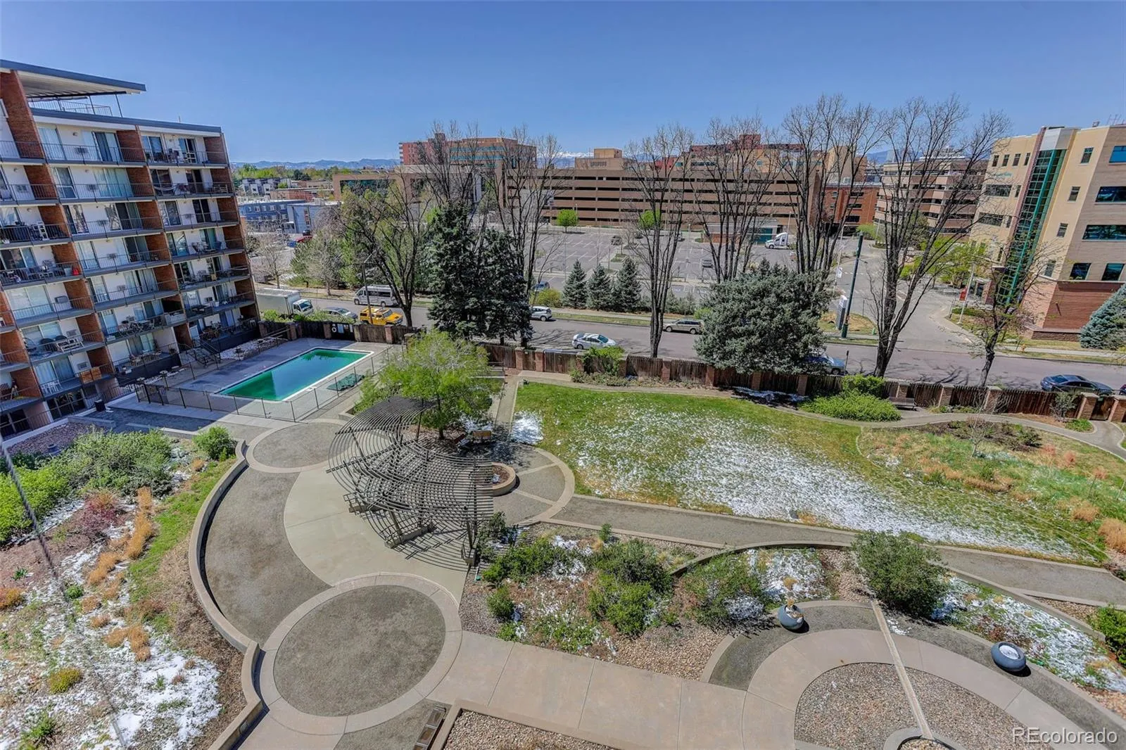 Welcome to this handsome 2BR/2BA northwest corner unit at Park Mayfair. Enter to a spacious living room with floor-to-ceiling, west-facing windows opening to a generously sized balcony. An attached dining room has built-in cabinetry matching the tall, crown molded cherry cabinets in the galley kitchen, complete with track lighting, stainless steel appliances, granite countertops, complimentary tile backsplash, and 12×24” tile flooring. The primary suite has its own access to the balcony overlooking the outside open space, ensuite bath with a vessel sink, designer tile, heated floors, and a walk-in closet with shelving/hanging options. Large closets throughout with custom doors provide great storage. A 2nd BR with its own AC unit has access to the updated ¾ hall bath. Coinless laundry is just down the hall. Building amenities include a billiard room, outdoor and indoor pools, fitness center with weight room, yoga, sauna and steam room, conference room with kitchen, two guest-rooms, and open space featuring gardens and a water feature. The building is well-maintained by an active professional management team. The HOA fee includes heat, trash, and water. The balconies and railings are currently being painted. The unit comes with its own storage area and a deeded parking space in the secure, underground garage. The 9th & CO retail/restaurant/entertainment area is close by, as is Cherry Creek. Come take a look!