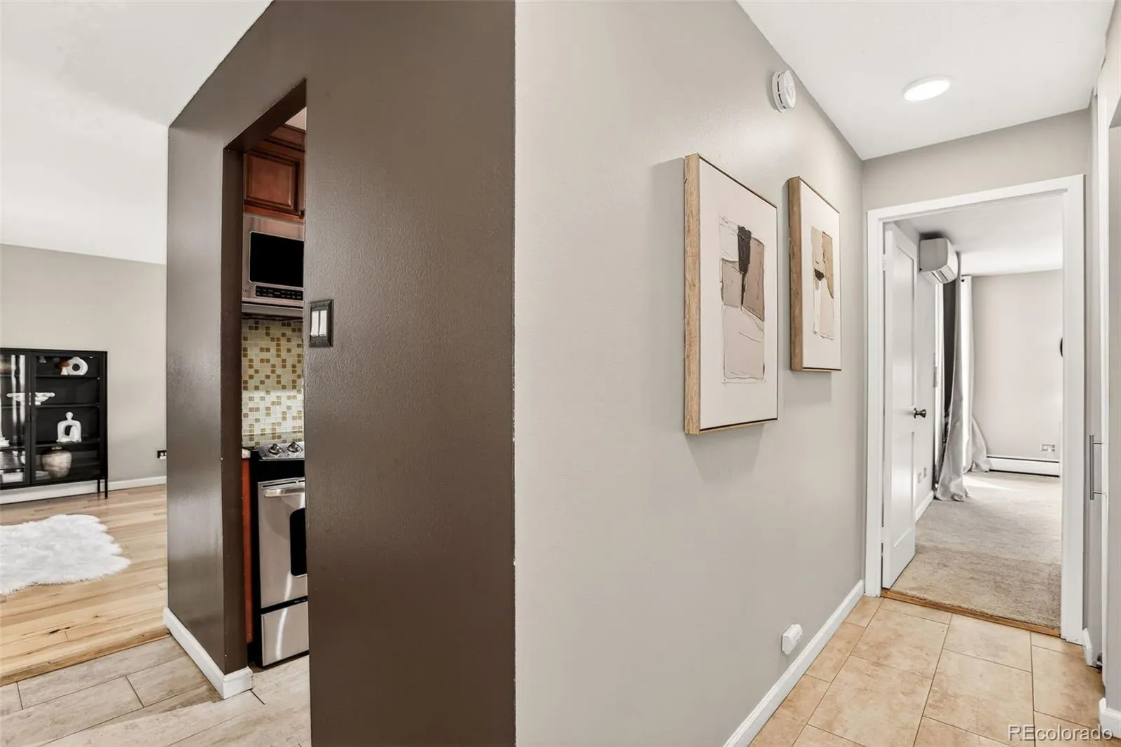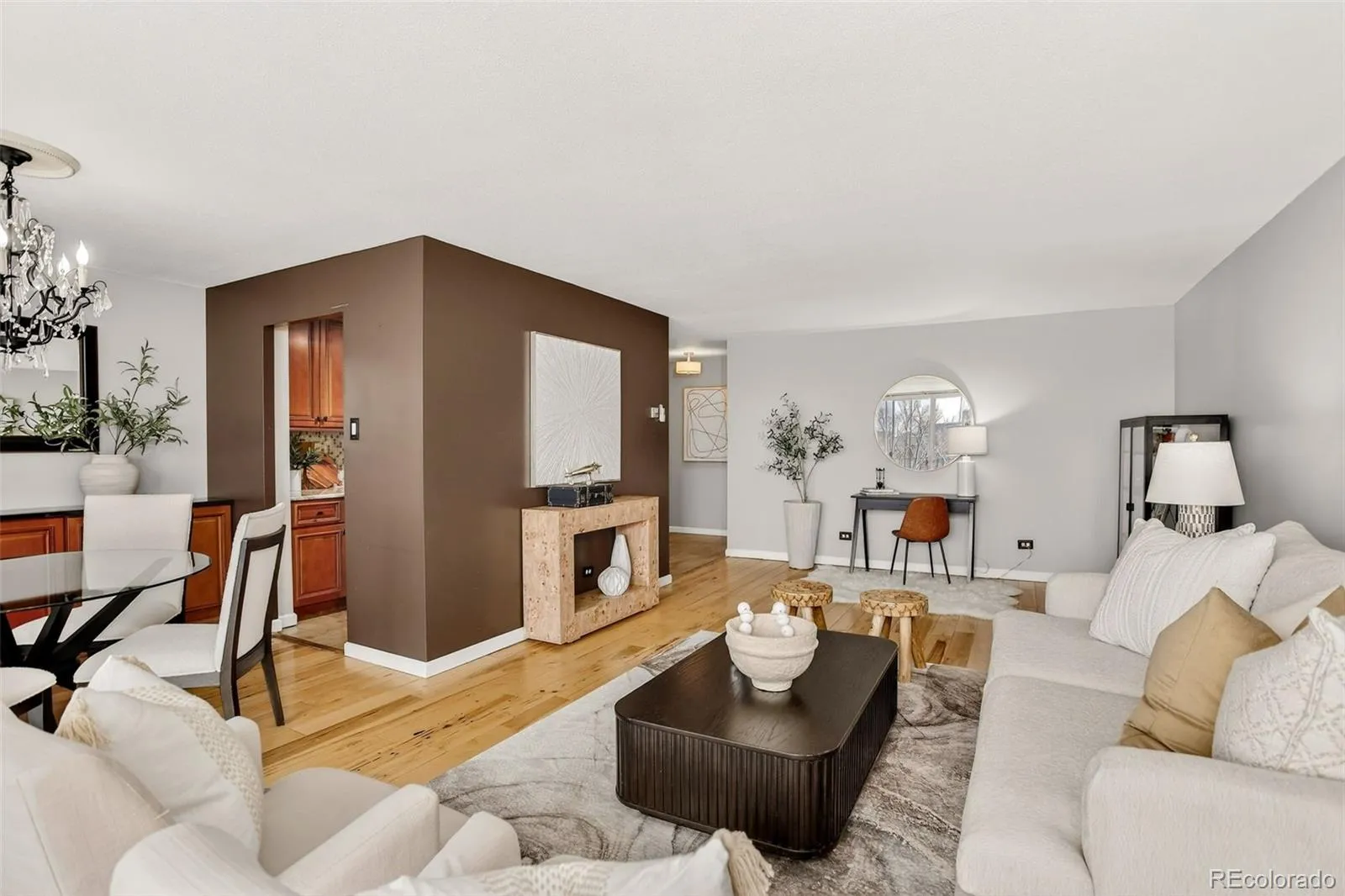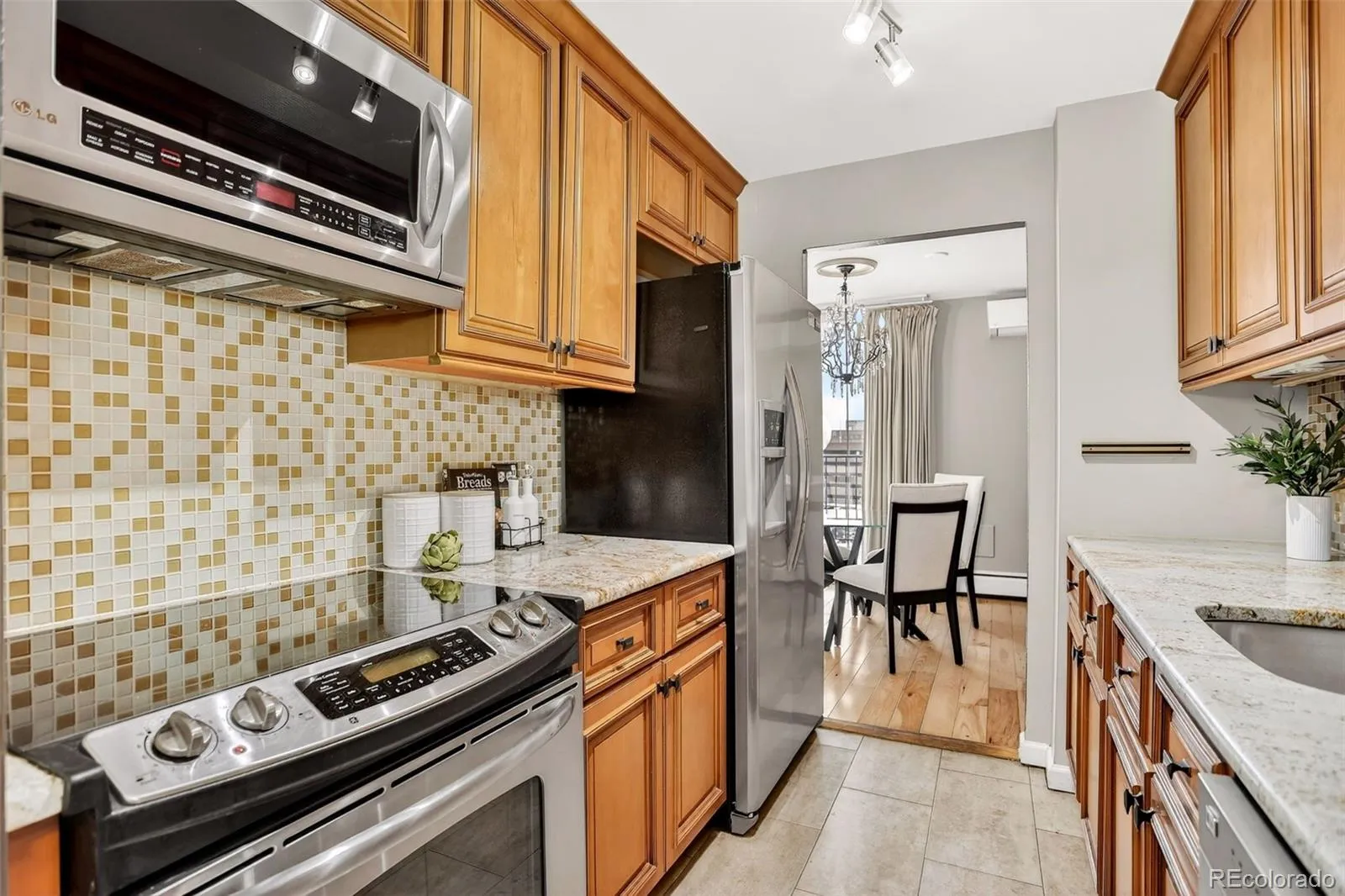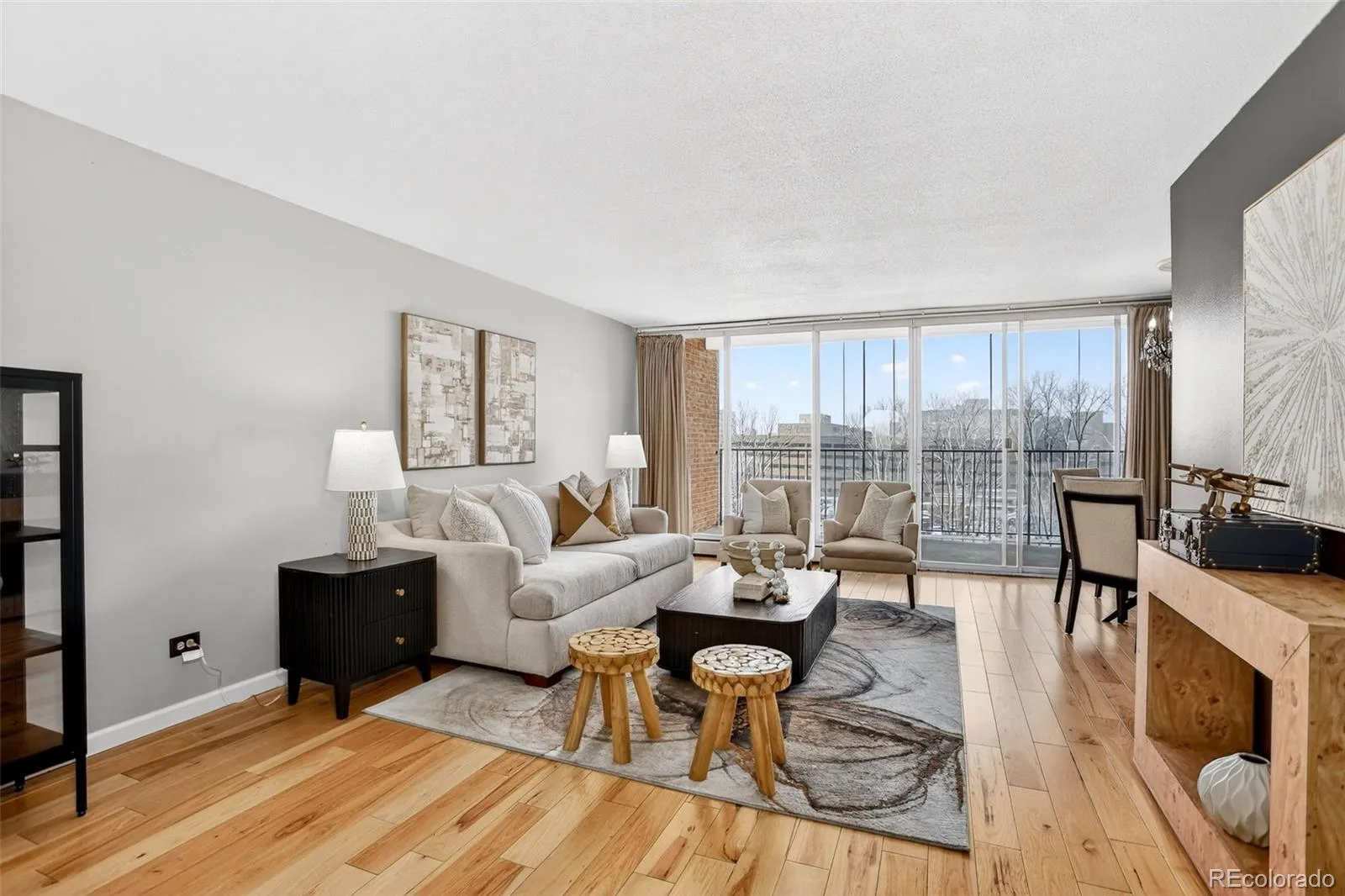 Welcome to this handsome 2BR/2BA northwest corner unit at Park Mayfair. Enter to a spacious living room with floor-to-ceiling, west-facing windows opening to a generously sized balcony. An attached dining room has built-in cabinetry matching the tall, crown molded cherry cabinets in the galley kitchen, complete with track lighting, stainless steel appliances, granite countertops, complimentary tile backsplash, and 12×24” tile flooring. The primary suite has its own access to the balcony overlooking the outside open space, ensuite bath with a vessel sink, designer tile, heated floors, and a walk-in closet with shelving/hanging options. Large closets throughout with custom doors provide great storage. A 2nd BR with its own AC unit has access to the updated ¾ hall bath. Coinless laundry is just down the hall. Building amenities include a billiard room, outdoor and indoor pools, fitness center with weight room, yoga, sauna and steam room, conference room with kitchen, two guest-rooms, and open space featuring gardens and a water feature. The building is well-maintained by an active professional management team. The HOA fee includes heat, trash, and water. The balconies and railings are currently being painted. The unit comes with its own storage area and a deeded parking space in the secure, underground garage. The 9th & CO retail/restaurant/entertainment area is close by, as is Cherry Creek. Come take a look!