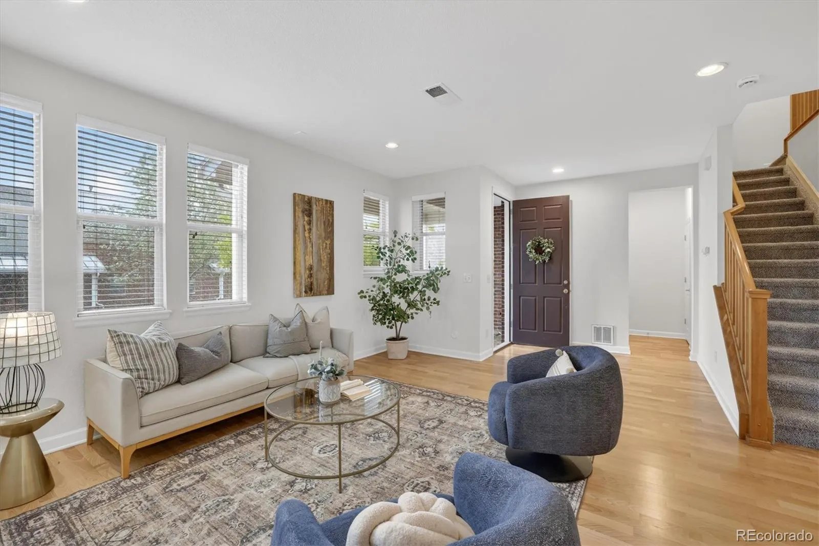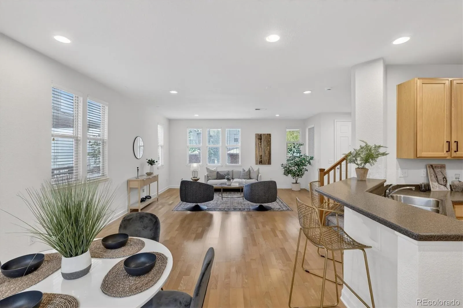 Beautifully refreshed end-unit townhome in the highly sought-after Cherry Creek School District, offering the perfect blend of low-maintenance living, thoughtful updates, and an unbeatable location. With 3 bedrooms, 3 bathrooms, a private fenced yard, and an attached 2-car garage, this home checks all the boxes. Step inside to a bright, open-concept layout filled with natural light thanks to the premium end-unit positioning. Fresh interior paint, brand new carpet, updated lighting in the upstairs bathrooms, and new cabinet hardware throughout create a clean, modern feel that is completely move-in ready. The kitchen flows seamlessly into the dining and living areas, making the space ideal for both everyday living and entertaining. Upstairs, the spacious primary suite offers a true retreat with dual sinks, a large walk-in closet, and a well-appointed en suite bath. Two additional bedrooms and a full bath provide flexibility for guests, a home office, or growing needs. Outside, enjoy your own private, fully fenced yard, perfect for pets, morning coffee, or relaxed evenings. The attached two-car garage offers convenience and additional storage, a rare find in townhome living. Located just north of Arapahoe Road, this home puts you minutes from Cherry Creek State Park, trails, parks, shopping, and dining, with easy access to major commuter routes. For buyers seeking a turnkey home in a prime location with space, privacy, and thoughtful updates, this is the one.