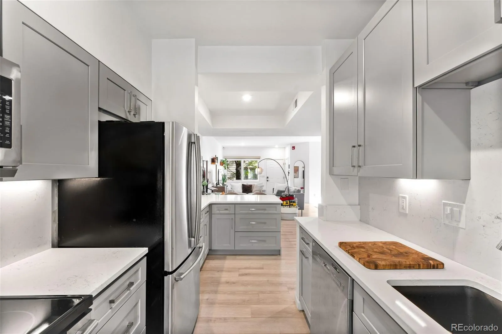 Nestled in the heart of Cherry Creek, this beautifully renovated one-bedroom condo is ready for you to move right in. If you’ve been searching for a place that just feels right the moment you walk in, this is it. The open-concept layout connects the living, dining, and kitchen areas in a way that makes the space feel both expansive and inviting — perfect for a laid-back night in or having friends over for dinner. The kitchen is a highlight: quartz countertops, stainless steel appliances, plenty of cabinet space, and a breakfast bar that makes morning coffee or a quick bite feel just a little more enjoyable. Speaking of morning coffee — step out onto your private patio and start the day the right way. The primary suite is your personal retreat, offering generous closet space and a spa-inspired ensuite bathroom that turns your daily routine into something worth looking forward to. Clean lines, neutral tones, and high-end finishes throughout give the whole home a polished, move-in-ready feel. And the location? Hard to beat. You’re steps away from Cherry Creek’s best shops, restaurants, parks, and transit options — the kind of neighborhood that makes life genuinely easier and more fun. This condo comes with one reserved parking space in the secure covered parking garage along with a private storage closet, and the ability to use another parking space. Come see it for yourself and schedule your showing today!
