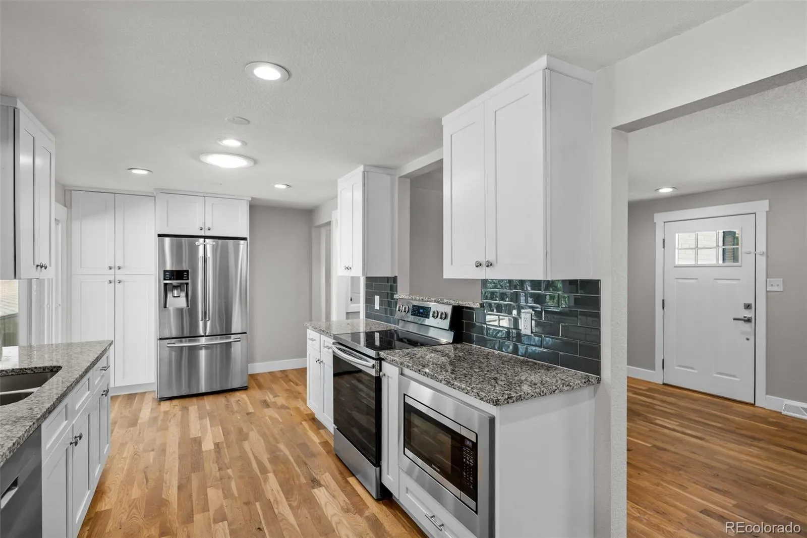 Brand New Listing! Comprehensively Transformed BRICK RANCH with a Redesigned OPEN-CONCEPT-FLOORPLAN LOADED with Upgrades Spanning Nearly Every Area of the Home. Showcasing a Beautifully REMODELED KITCHEN with Slab GRANITE Countertops*Glass Subway Tile Backsplash*Stainless Steel Appliances*Under Counter Sink*Brush Nickel Hardware*Spacious Pantry and In-ceiling LED Lighting + an Overhead Solar Tube Skylight. Some of the Many Wonderful Features Include: Upgraded Windows, Sliding Door & Paneled Interior Doors*Extended Hardwood Flooring*5” Baseboards*Upgraded Interior and Exterior Lighting & Wall Sconces*Upgraded Electrical Switches/Outlets*Replaced Front Door & Hardware/Sliding Patio Door/Garage Door*CUSTOM Doorway/Openings Casement Trim*Neutral Carpeting & Paint and Retextured Walls & Ceilings Throughout. Includes THREE REMODELED BATHROOMS – (Vanities/Granite Countertops/Sinks/Faucets/Mirrors/Toilets/Lighting & Fixtures). The Major Mechanical Systems Feature an Upgraded FURNACE*AIR-CONDITIONING & WATER HEATER and a Samsung Front-Load Washer and Dryer. Positioned on a Nice Green Mtn Estates Lot Featuring an approx. 30ft Covered Rear Patio w/Low Maintenance Vinyl Ceiling, Large Attached Storage Shed and Extra Deep 2-Car Garage. Just a Few Blocks to approx. 2,400 Acres of OPEN SPACE & Union Blvd’s Many Shops & Restaurants. About 2 Miles to St. Anthony’s Hospital, the West Light Rail Station and Approx. 11 Miles to Downtown *source google maps. The various upgrades were made by current and prior owner. Dates of the remodeled and upgraded features vary. Information though deemed reliable is not guaranteed. Buyers are advised to independently verify all information. …Showings Start Monday 4/20.
