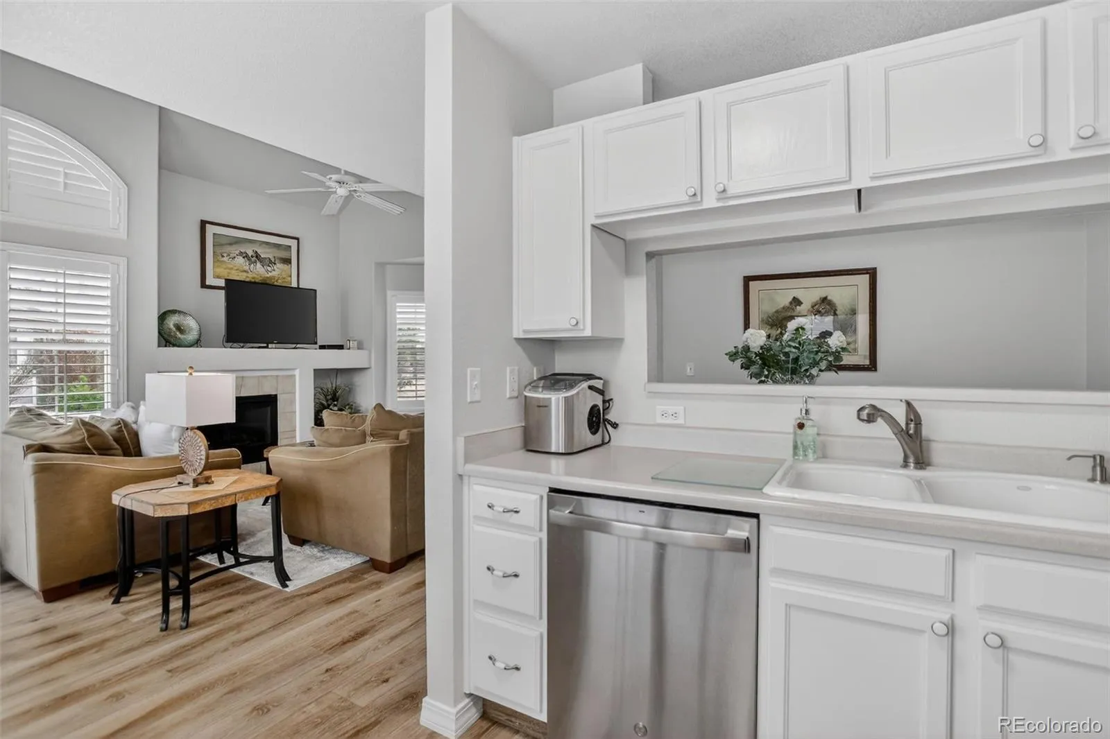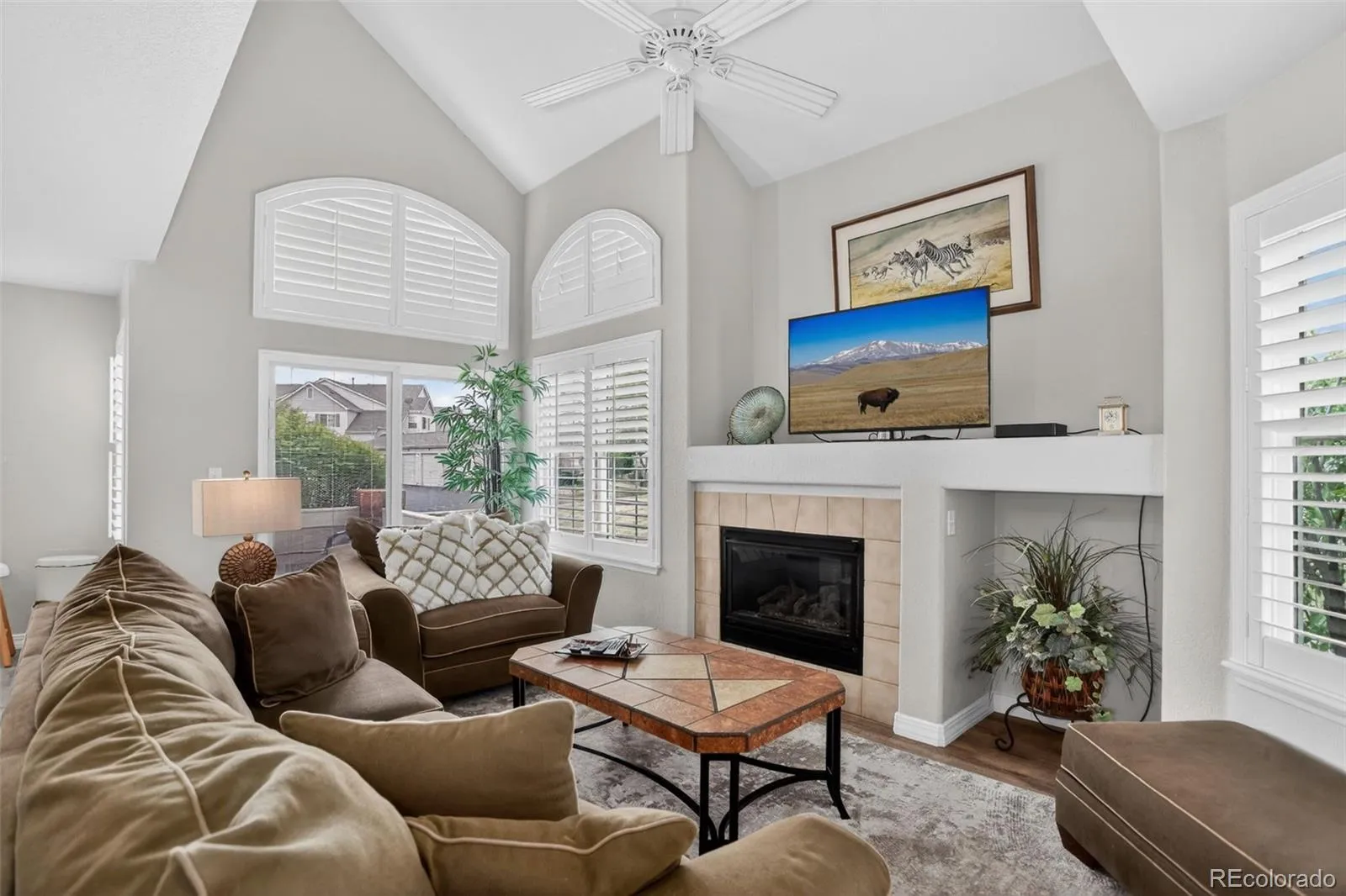 Turnkey Living in the Heart of Parker’s Sought-After Challenger Park. This beautifully updated townhome checks every box. Step inside and you’ll immediately notice the bright, open great room featuring gleaming hardwood floors, soaring vaulted ceilings, and a cozy gas fireplace, the perfect backdrop for both relaxing evenings and entertaining guests. The kitchen shines with brand-new stainless steel appliances and a breakfast bar that flows effortlessly into the spacious dining room.