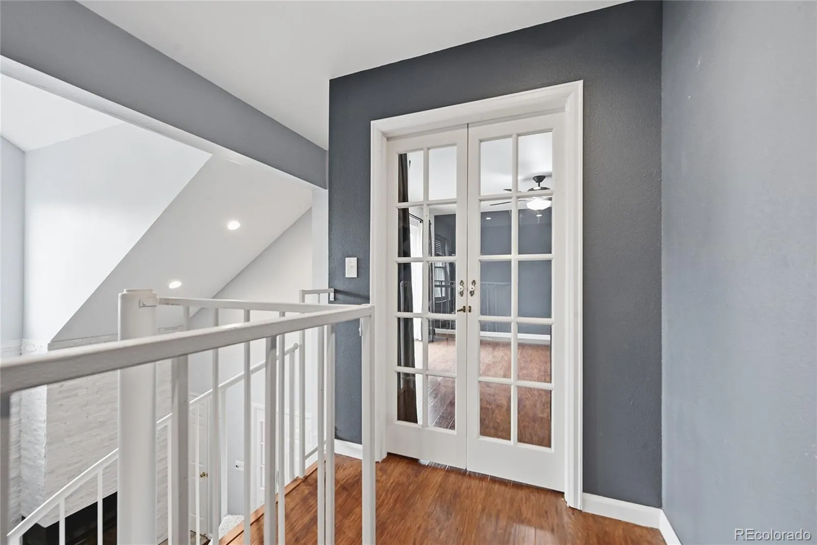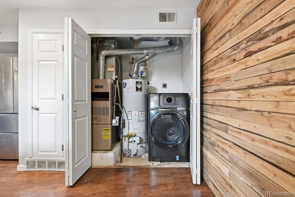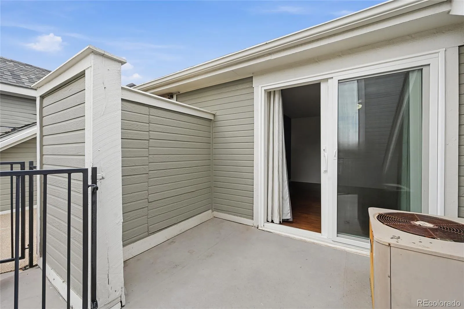 2 bedrooms and 2 bathrooms. Remodeled kitchen and designer updates. 2 patios. One off the entry and the other off the upper bedroom. New windows. One of the largest units in the community. Both wall mounted tvs go with the property as well as the washer/dryer combo. Community pool and just steps from mass transit. Close to DTC.