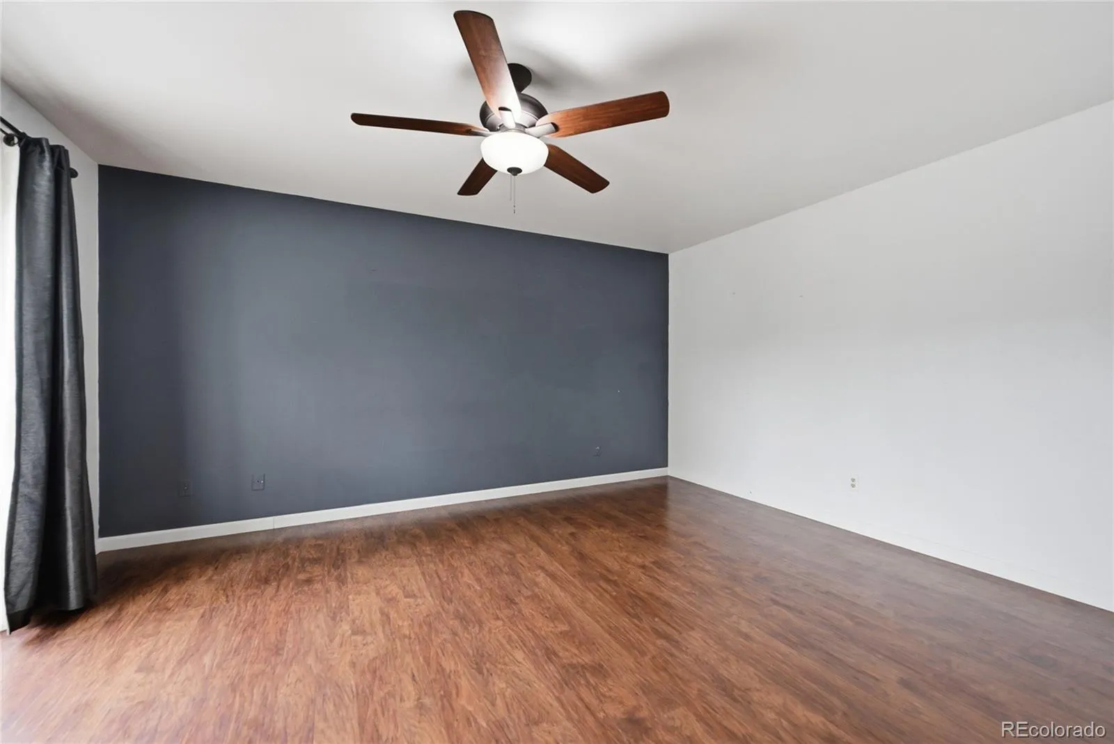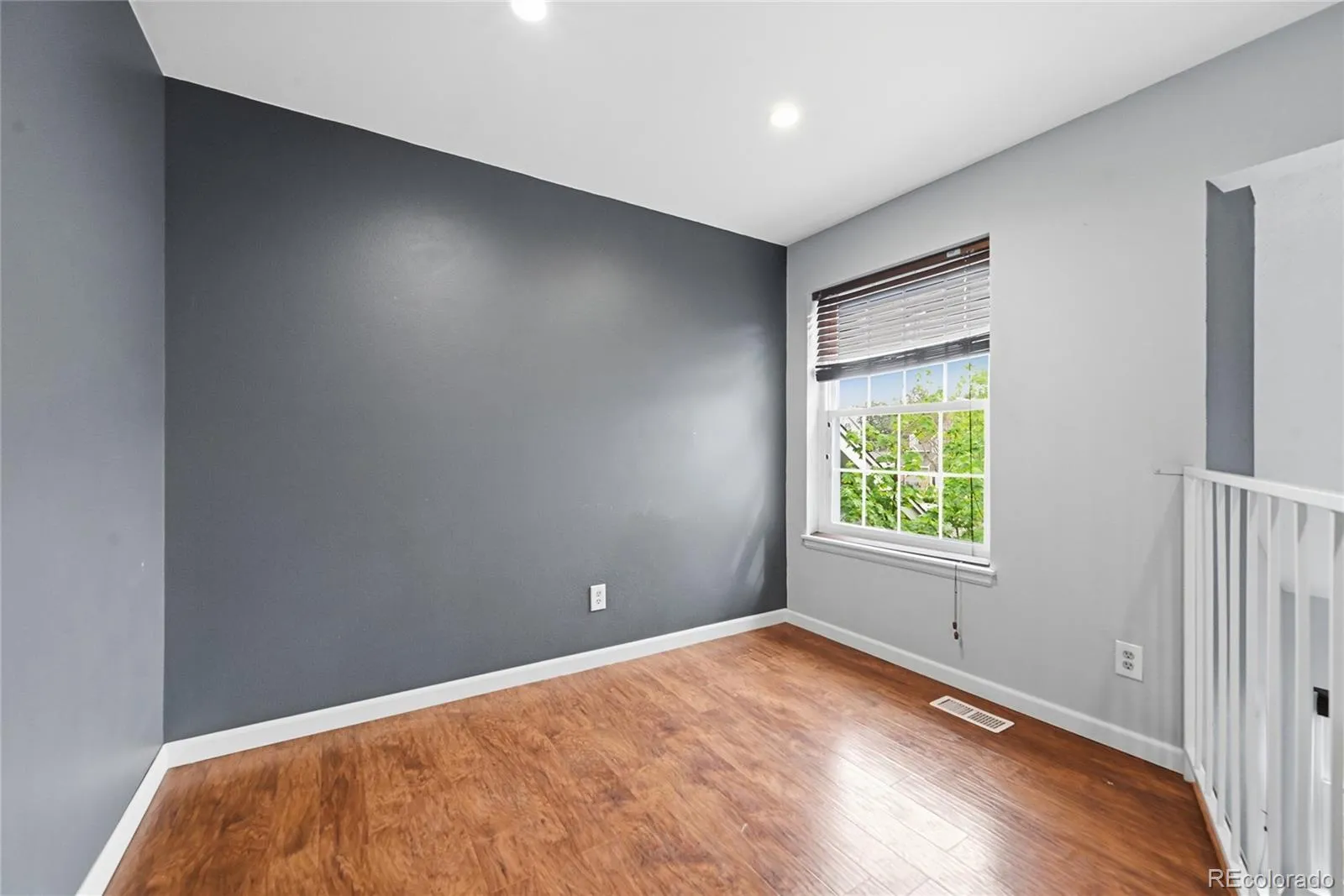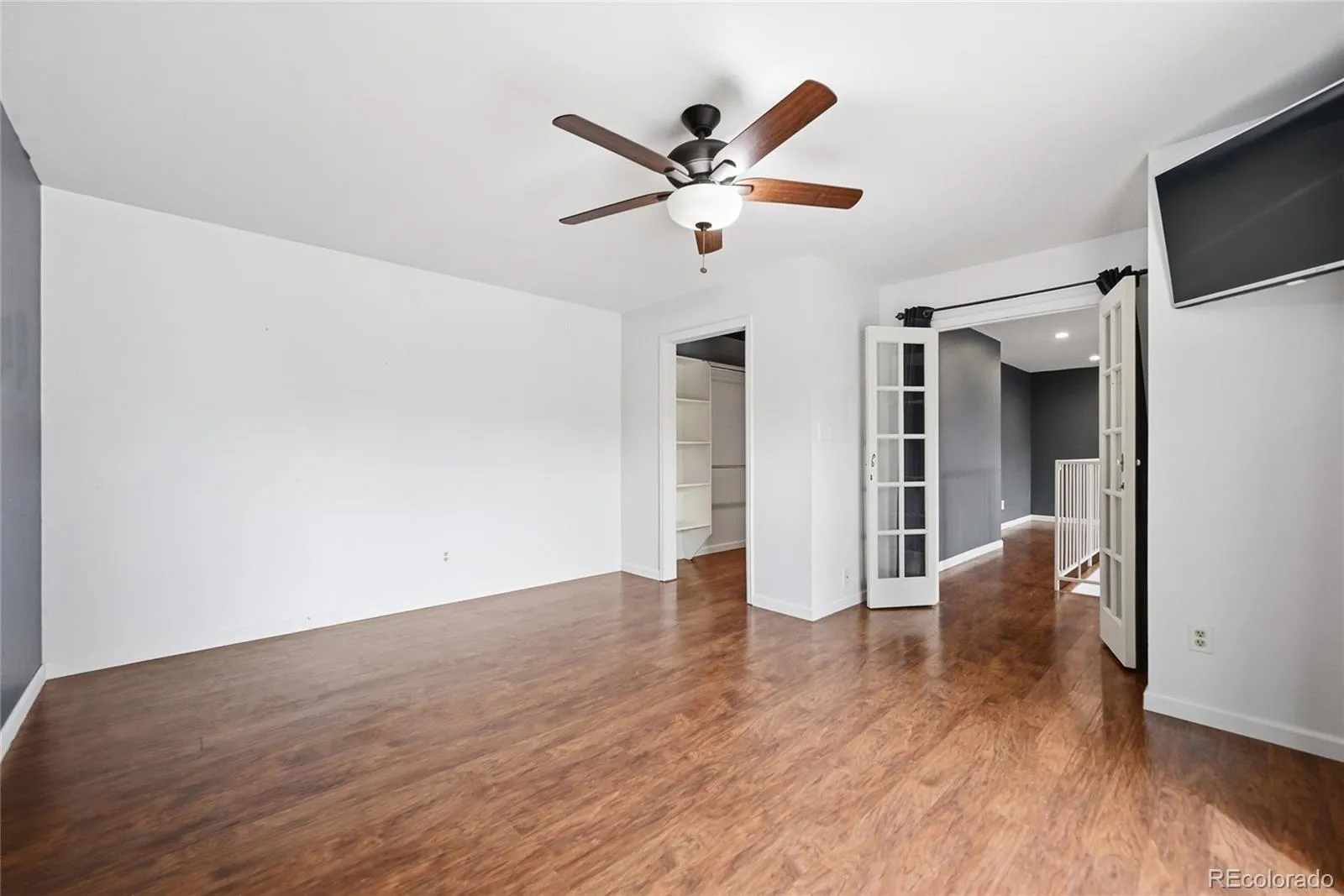 2 bedrooms and 2 bathrooms. Remodeled kitchen and designer updates. 2 patios. One off the entry and the other off the upper bedroom. New windows. One of the largest units in the community. Both wall mounted tvs go with the property as well as the washer/dryer combo. Community pool and just steps from mass transit. Close to DTC.