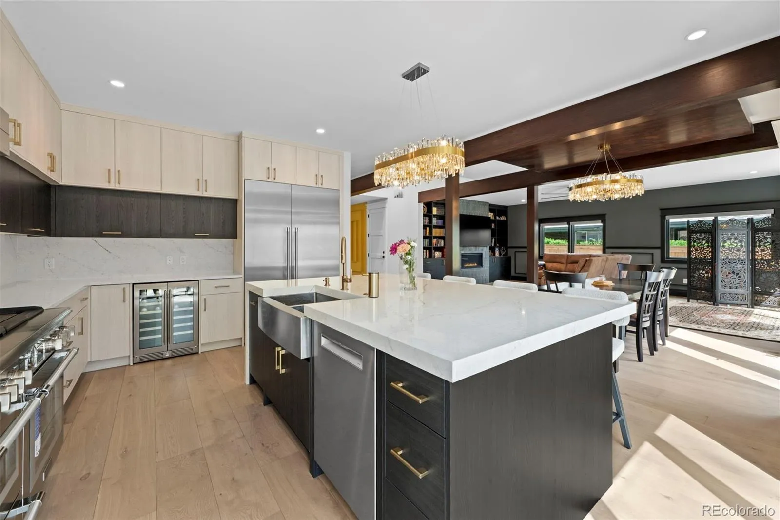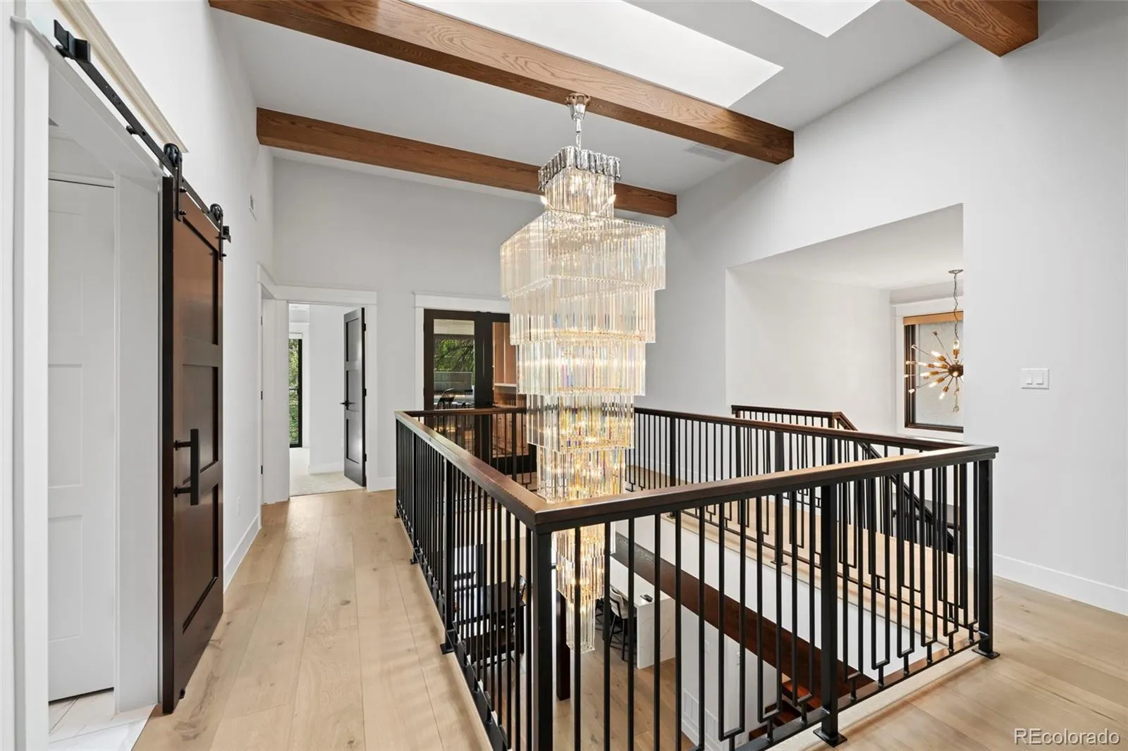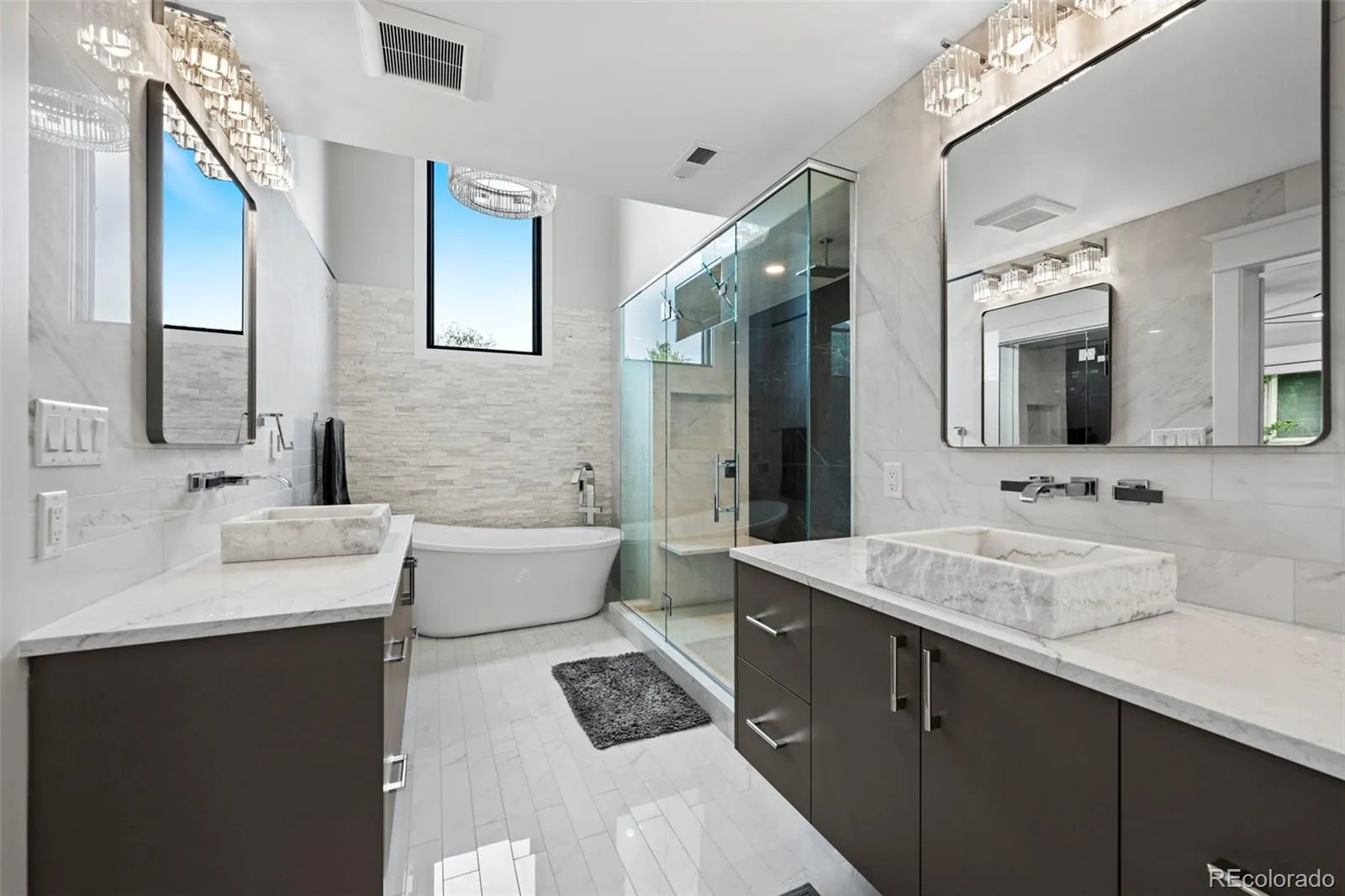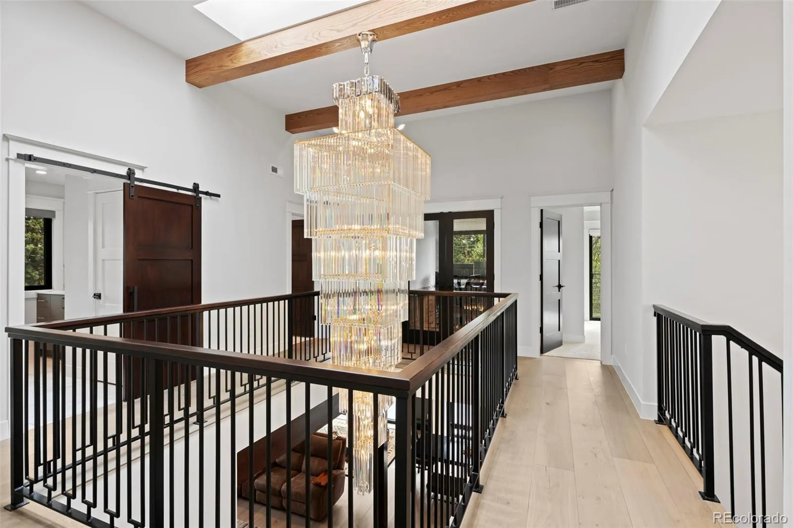 Beautiful Hilltop new build by Faulkner Grey Homes featuring custom, high-end finishes throughout! Enter through a statement piece pivot front door that leads to an expansive foyer and center atrium with 25+’ high ceilings! The entry level boasts a wide-open floor plan with a large great room, dining, and kitchen that opens to a large Trex deck perfect for entertaining. Kitchen showcases beautiful two-tone cabinetry with gold accents, state-of-the-art Thermador Smart Appliance package, 8’ kitchen island, and quartz countertops. Take the floating staircase to the upper level to behold the amazing centerpiece chandelier. Primary bedroom features a large walk-in closet and stunning bath with separate his and her vanities, oversized steam shower, and freestanding tub, where you can unwind underneath 15’ ceiling and stunning chandelier. Three secondary upstairs bedrooms have ensuite full baths. Additional upper-level private upstairs office and spacious laundry. The main-level bedroom with ensuite full bath can double as an in-law’s suite or large office. Lower-level private bedroom and bath, family room with fireplace, kitchenette/wet bar, and covered patio are perfect for any visiting guests. Walk-out basement allows ease of access to the large backyard or can serve as a second entry for private rental of the lower-level space. This home truly has it all! Nestled in the heart of south Hilltop, walking distance to Carson Elementary school, and minutes away from Cherry Creek, the location can’t be beat. Gorgeous home in a stellar location!
