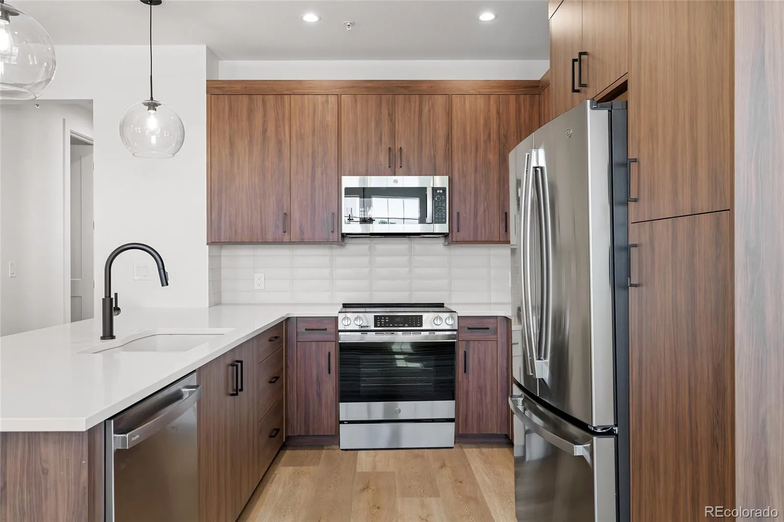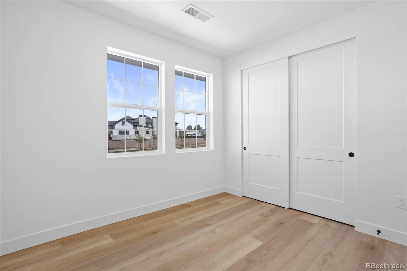 This exceptional and newly constructed residence offers a rare opportunity to own the largest home in the building, thoughtfully designed for both privacy and presence. With three walls of windows, the home is filled with natural light – creating an airy, open atmosphere that feels both expansive and serene. The layout unfolds with intention, offering a seamless flow between living spaces while maintaining a sense of definition and comfort. At the heart of the home, the living room is anchored by a fireplace that adds warmth and character, creating a natural gathering place for both quiet evenings and entertaining. The kitchen is equally refined, featuring European full-overlay cabinetry, 3cm quartz countertops, a full-height backsplash, and GE/Profile stainless steel appliances. It connects effortlessly to the main living and dining areas, enhancing the home’s open, livable design. The expansive deck extends the living experience outdoors, offering a private setting to take in Colorado’s sunshine and surrounding views. Whether hosting or unwinding, this elevated outdoor space adds a meaningful layer to the home’s lifestyle appeal. The primary suite is a true retreat and features a spa-like bath with dual vanities, a zero-threshold shower, and designer finishes. An attached two-car garage provides everyday convenience, while the residence also benefits from all-electric, solar-ready construction, smart home features, fire suppression, and a private courtyard entry. Designed for lock-and-leave ease without sacrificing space or privacy, this home delivers a truly elevated living experience. Located within The Village on the Broadlands, residents enjoy access to parks, trails, a pool, and nearby amenities, along with convenient connectivity to shopping, dining, and major routes.