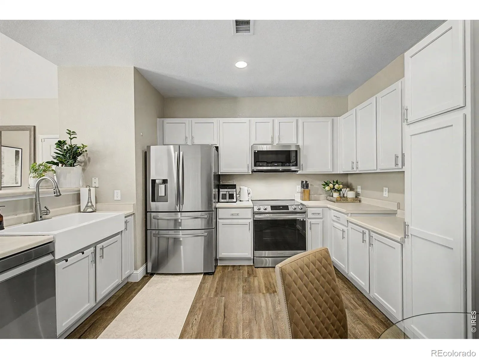 This charming 3-bedroom, 2-bathroom townhome offers a functional open-concept floor plan designed for comfortable everyday living. A dedicated office has been thoughtfully converted into a third bedroom with the addition of a closet and stylish barn doors, providing added flexibility for a variety of lifestyle needs.Recent updates include professionally painted kitchen and bathroom cabinetry, enhancing the home’s clean, modern appeal. A newer Samsung washer and dryer add to the home’s convenience and practicality.Set among peaceful green surroundings in a quiet, established neighborhood with highly regarded schools, this property presents an ideal balance of functionality, comfort, and ease of living.