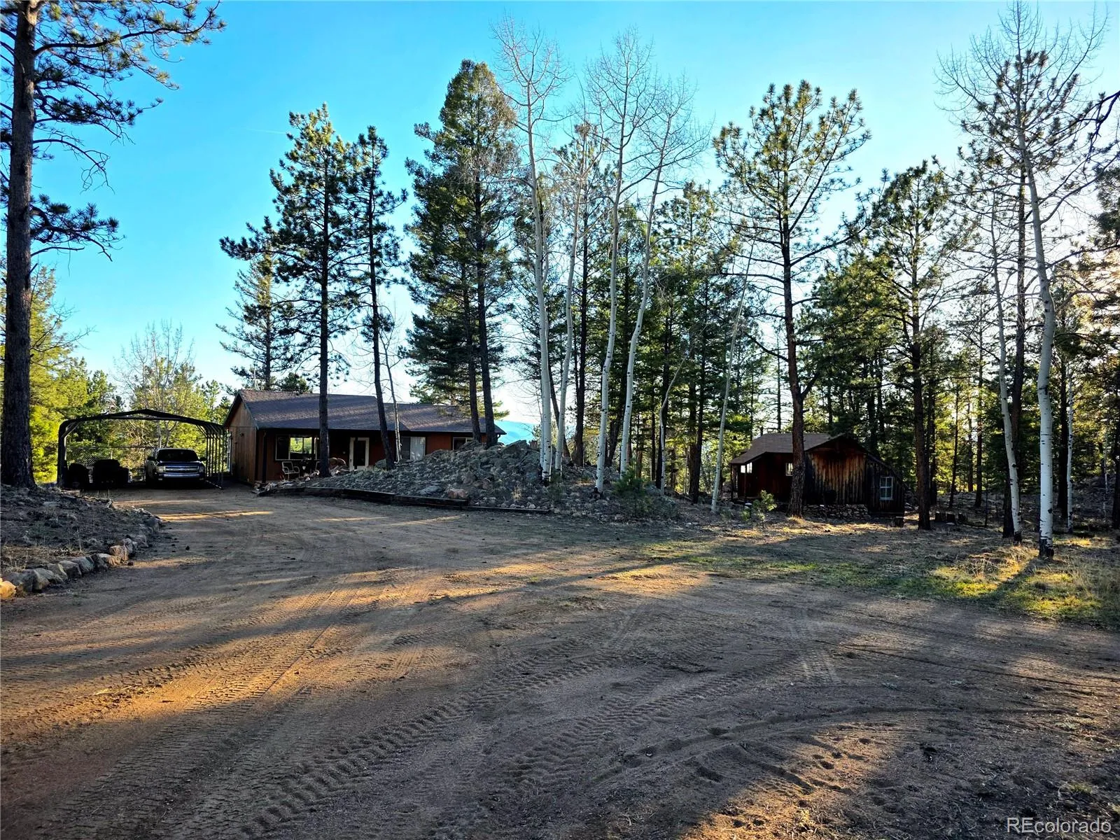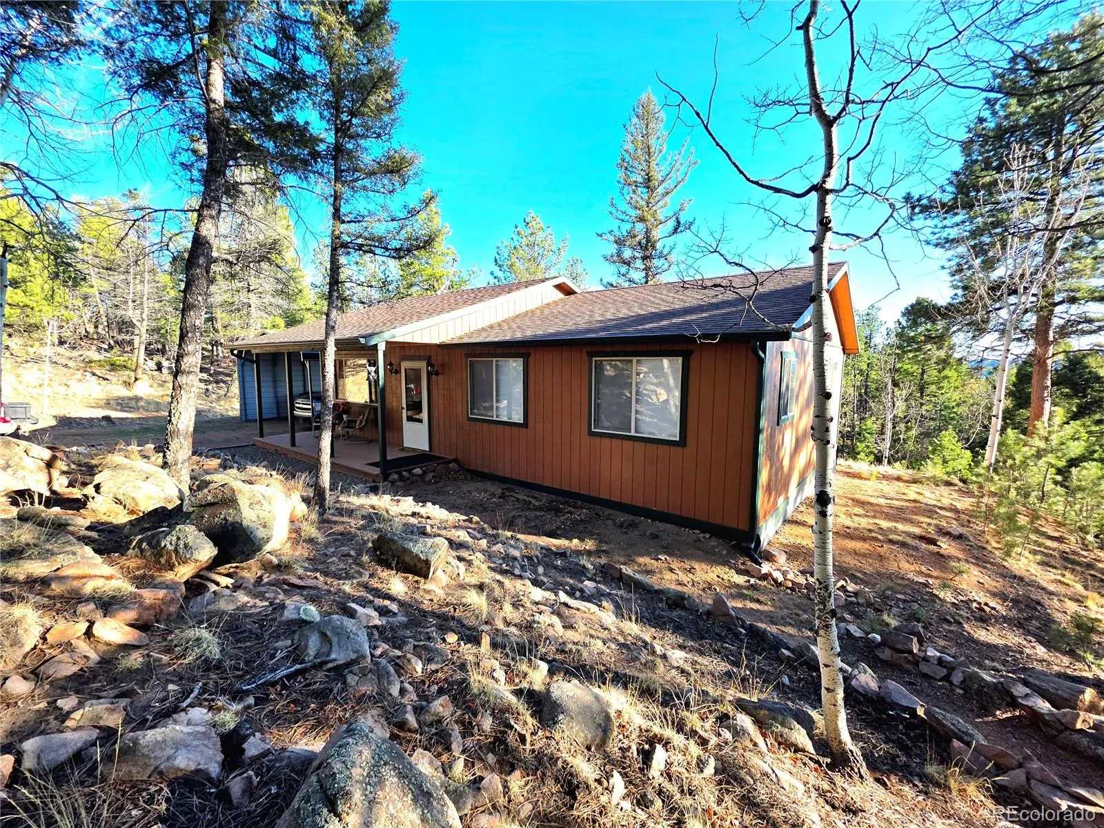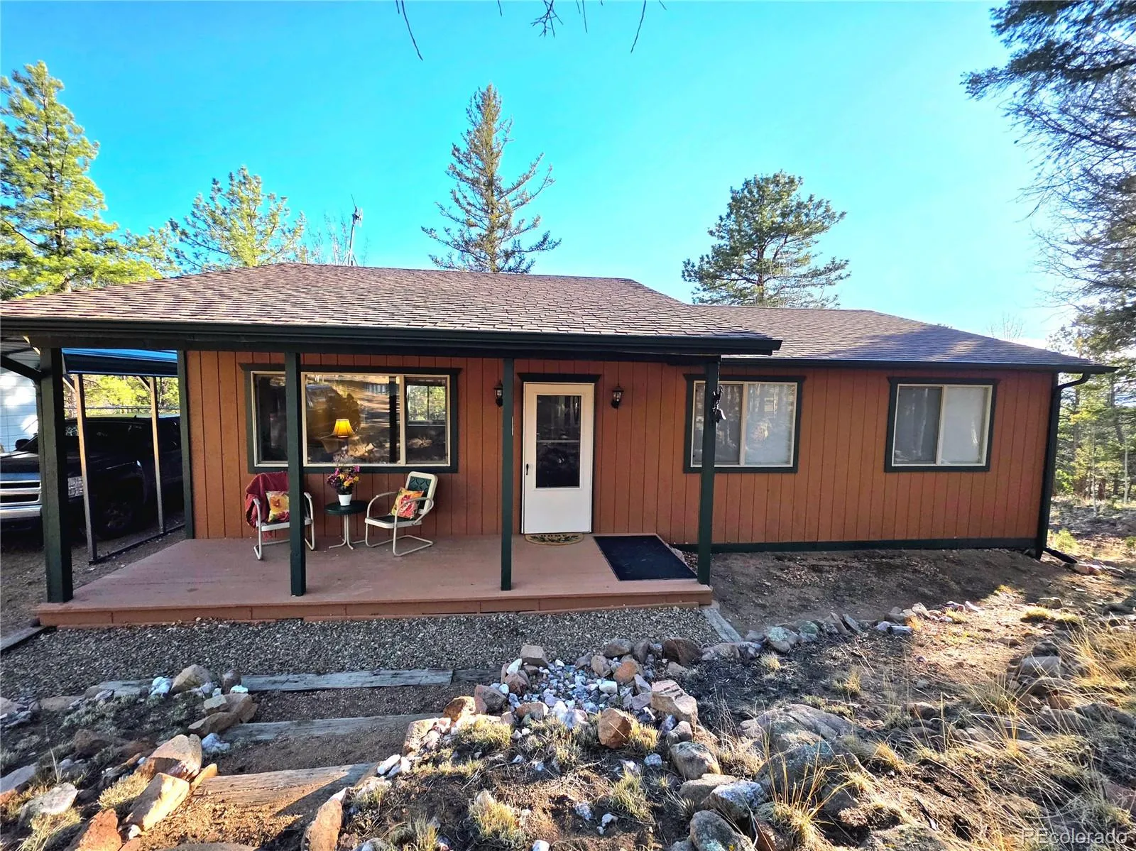 Mountain ranch home features 3-bedrooms, 2-bathrooms situated on nearly 7 acres in Lake George, Colorado. This immaculate, move-in-ready property offers stunning mountain views and has no HOA or restrictions. The home has been meticulously maintained, featuring a freshly painted interior, new flooring in the pantry and laundry rooms and radiant heat. The open-concept layout includes a generous kitchen with a breakfast bar and walk-in pantry, and opens into a bright living room. Outside, you can enjoy a covered front porch and a painstakingly landscaped yard with thoughtful stone features. The 6.8-acre property is mostly level and highly usable, making it ideal for hobby farming, horses, or pets. The back property line is already fenced, and the land is rich with mature Aspen, tall pines, and native gemstones waiting to be uncovered. Additional features include a handsome cabin-style shed that can serve as a workshop or bunkhouse, a circular driveway with a two-car carport, and ample parking for an RV and all your toys. Near the Dream Stream, 11 mile Reservoir & Canon, Spinney reservoir for boating and fishing, near plentiful forestry for hunting, hiking, horse back riding and off-roading. Contact me if you would like more information or if you are interested in scheduling a viewing of this welcoming mountain oasis today.