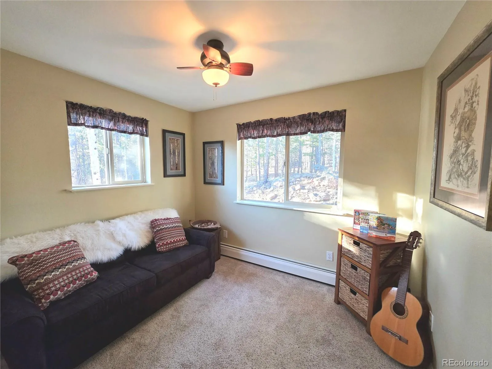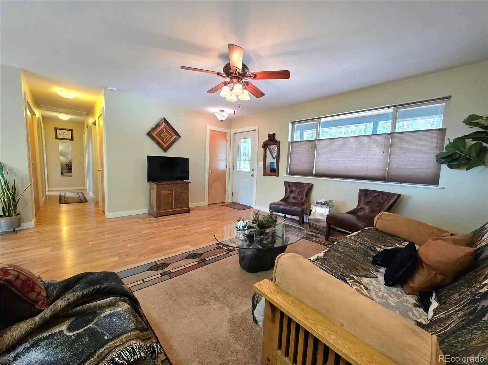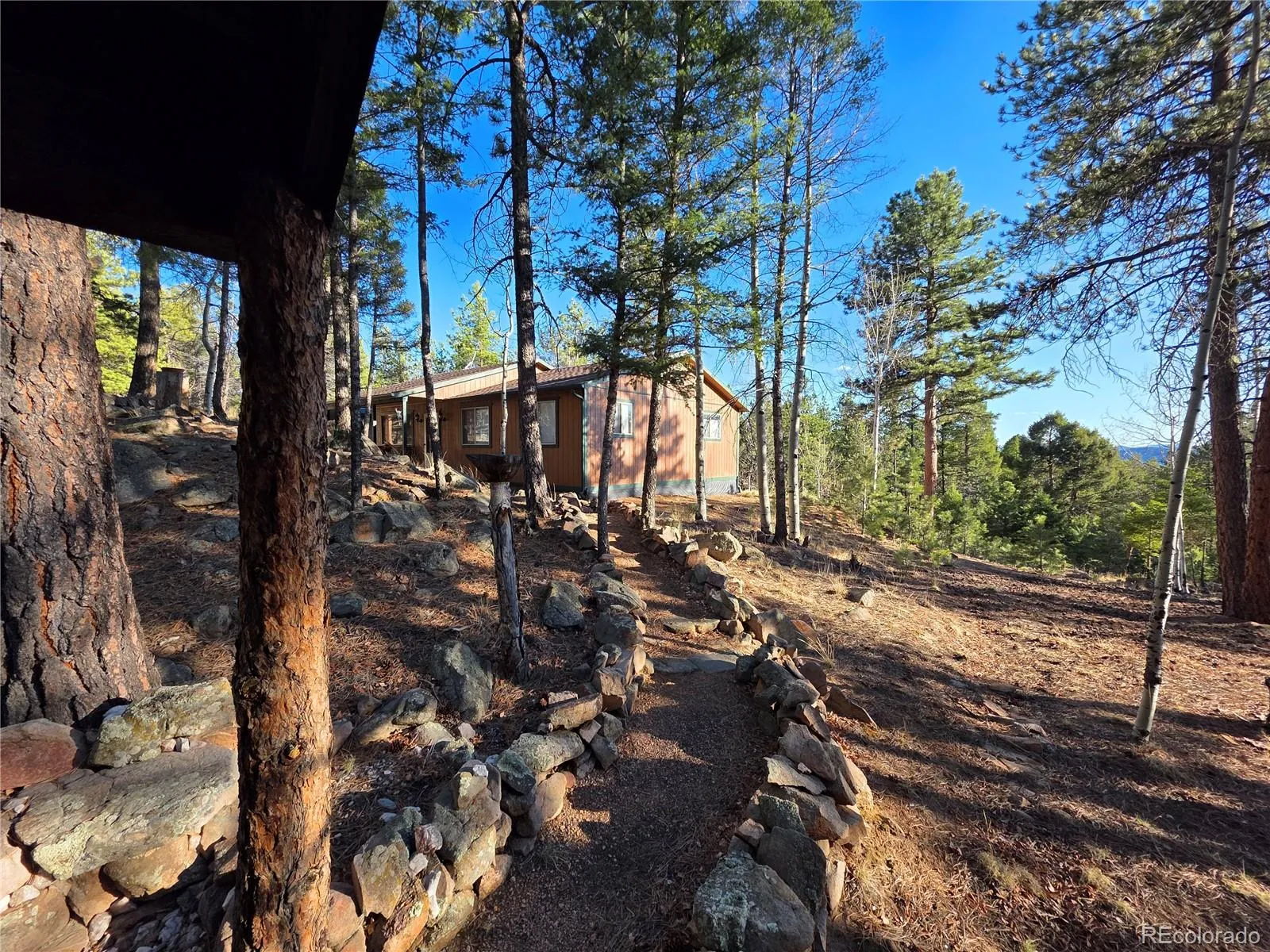 Mountain ranch home features 3-bedrooms, 2-bathrooms situated on nearly 7 acres in Lake George, Colorado. This immaculate, move-in-ready property offers stunning mountain views and has no HOA or restrictions. The home has been meticulously maintained, featuring a freshly painted interior, new flooring in the pantry and laundry rooms and radiant heat. The open-concept layout includes a generous kitchen with a breakfast bar and walk-in pantry, and opens into a bright living room. Outside, you can enjoy a covered front porch and a painstakingly landscaped yard with thoughtful stone features. The 6.8-acre property is mostly level and highly usable, making it ideal for hobby farming, horses, or pets. The back property line is already fenced, and the land is rich with mature Aspen, tall pines, and native gemstones waiting to be uncovered. Additional features include a handsome cabin-style shed that can serve as a workshop or bunkhouse, a circular driveway with a two-car carport, and ample parking for an RV and all your toys. Near the Dream Stream, 11 mile Reservoir & Canon, Spinney reservoir for boating and fishing, near plentiful forestry for hunting, hiking, horse back riding and off-roading. Contact me if you would like more information or if you are interested in scheduling a viewing of this welcoming mountain oasis today.