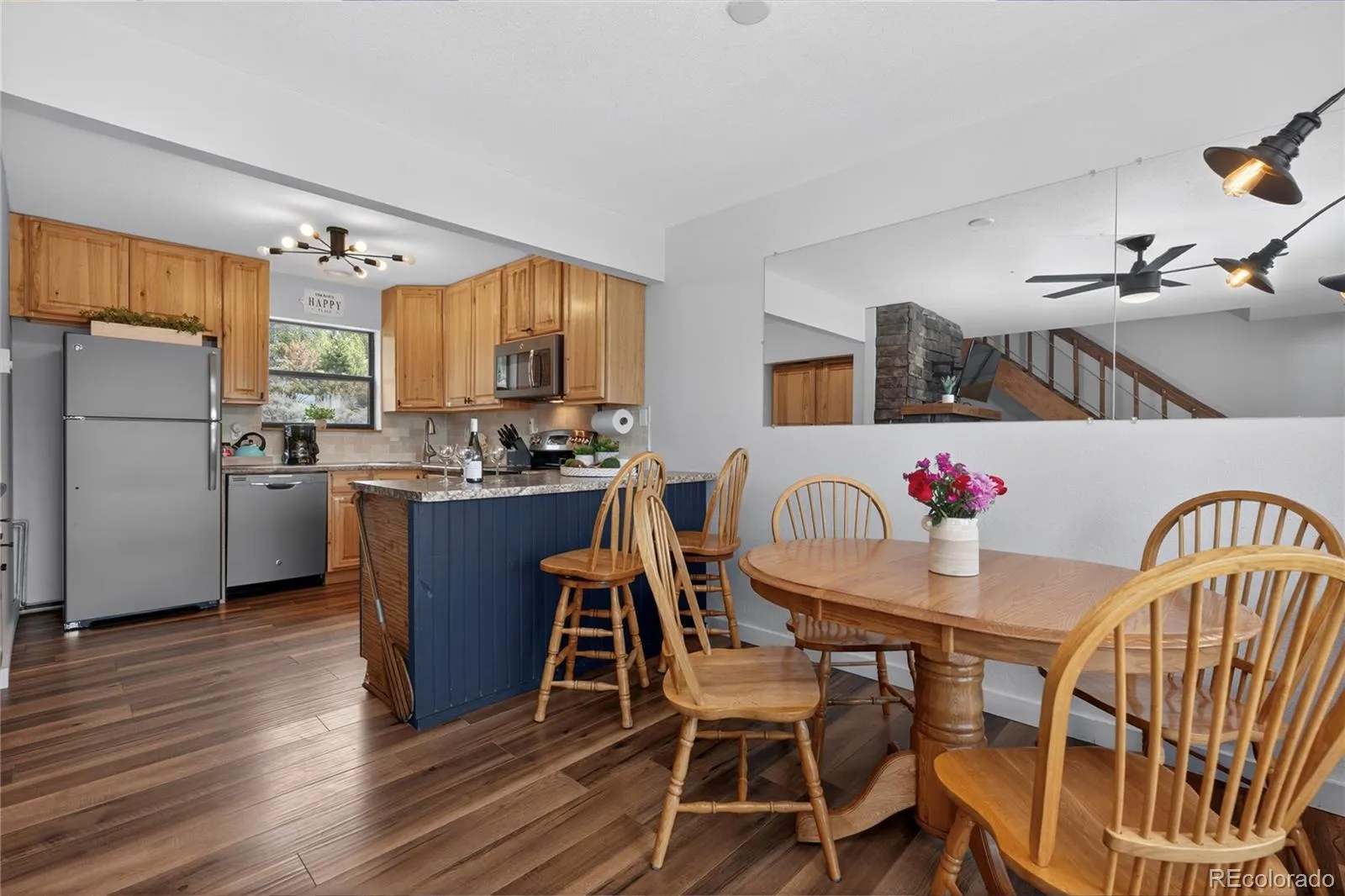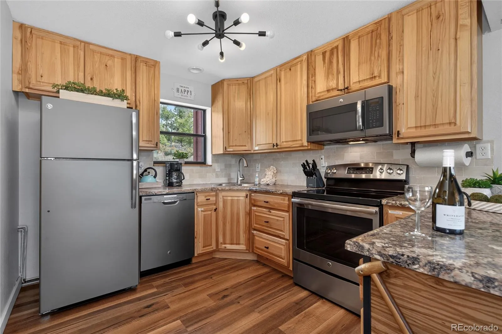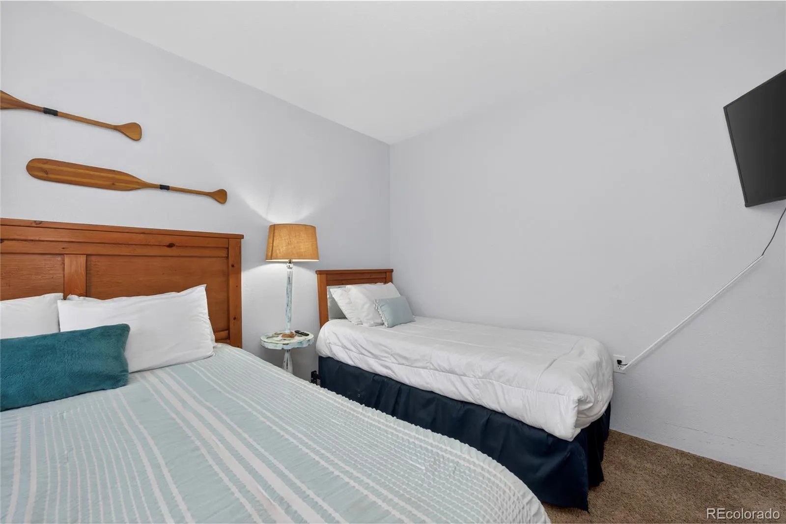Watch video! This bright, turn-key mtn contemporary condo features numerous upgrades including additional kitchen cabinets & hardware, stainless steel appliances, washer & dryer, new light fixtures, ceiling fans, door knobs, luxury vinyl plank flooring, baseboard heaters with thermostats, water heater, double-pane windows & sliding glass doors, and a gas fireplace with stone surround. Fully furnished and move-in ready, enjoy both spacious decks–the living room deck and primary bedroom balcony–offering gorgeous Lake Granby views, while the back deck overlooks a peaceful area. Bonus: 3rd non-conforming bedroom adds flexibility. Perfect as a year-round escape or short-term rental. Private attached garage with room for storage. Two deeded parking spots too! Schedule your showing today!