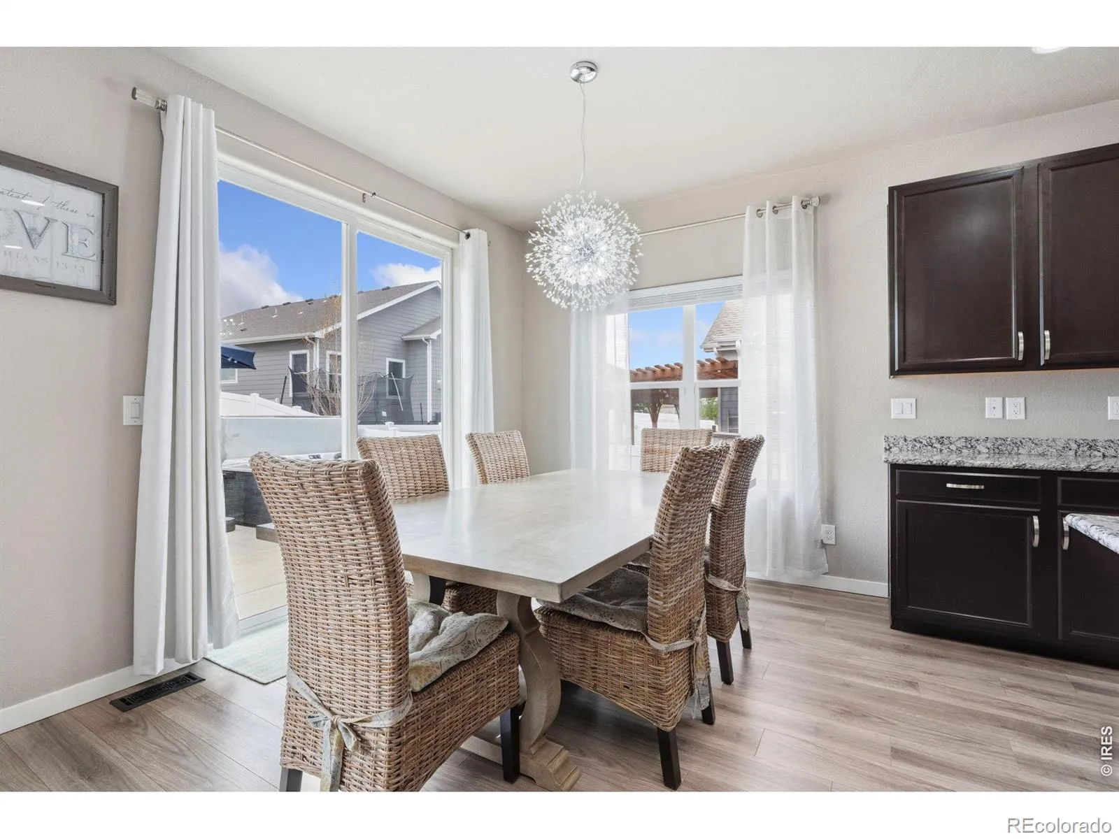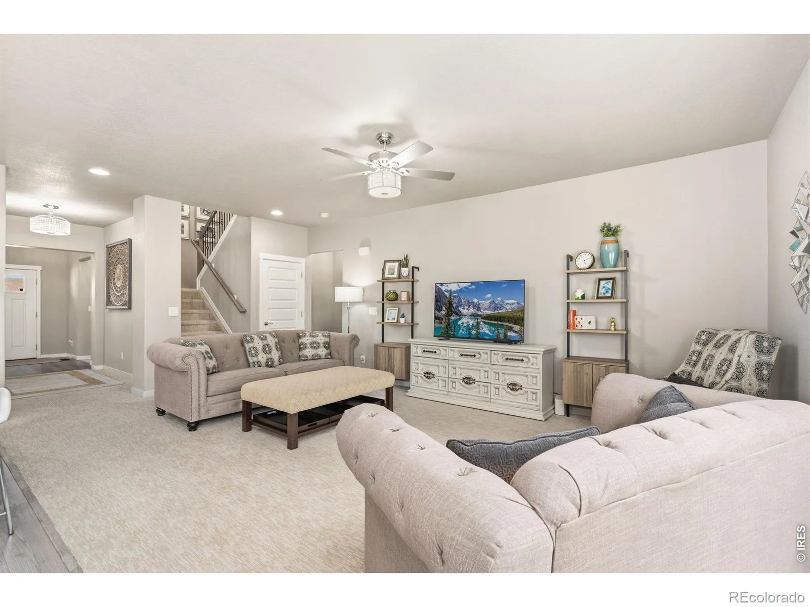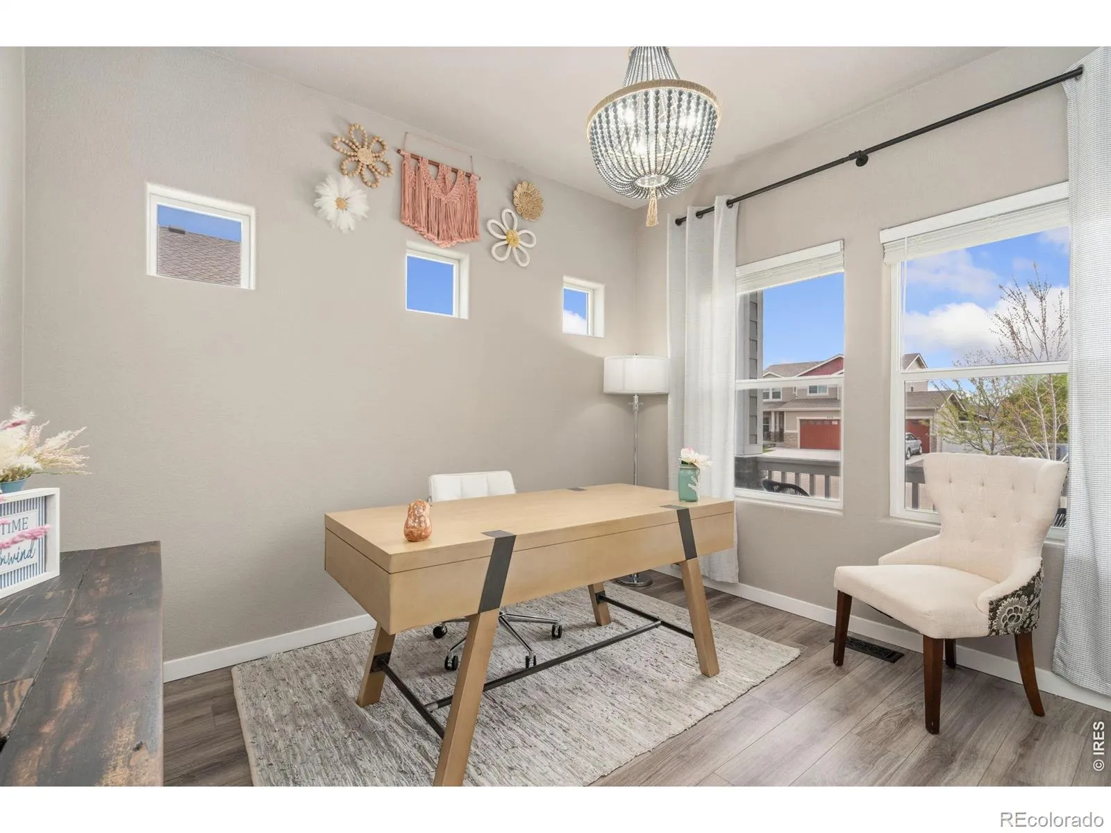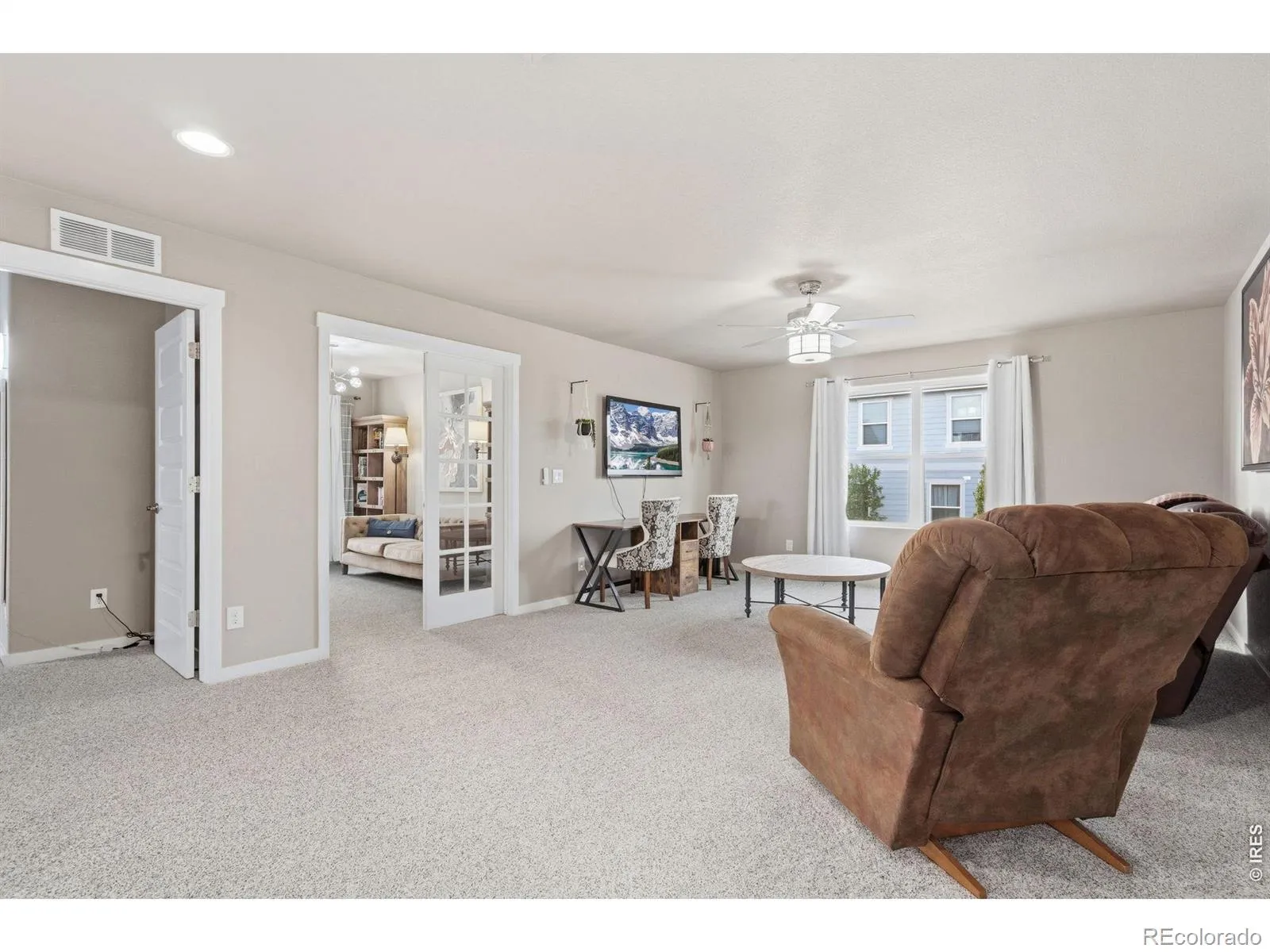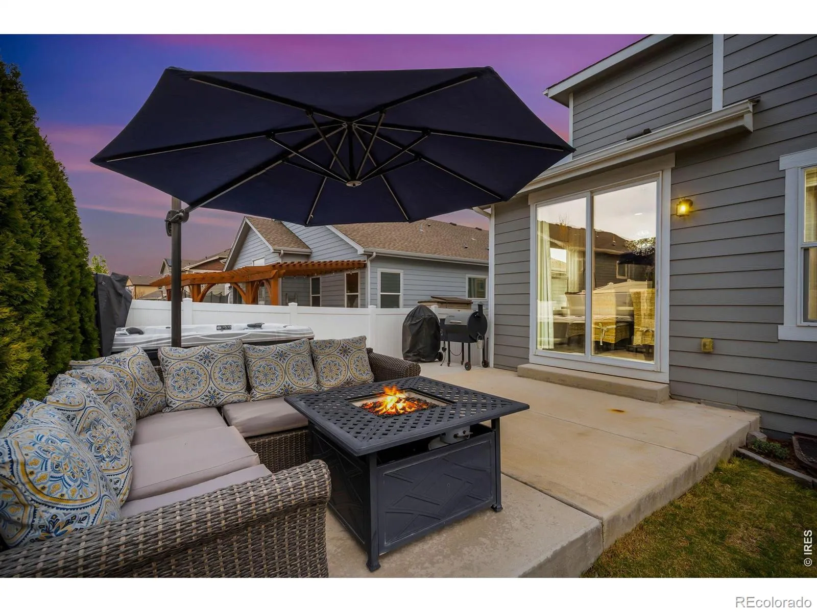 Welcome to this beautifully maintained two-story home offering a functional and spacious layout with a main floor primary suite and a fully finished basement. Thoughtfully updated with stylish light fixtures, luxury vinyl plank flooring, and upgraded carpet throughout, this home blends comfort and modern design.The main level features a dedicated office with French doors, a spacious laundry room with additional storage, and an open-concept living area. The kitchen is designed for both everyday living and entertaining, complete with granite countertops, a large center island, stainless steel appliances, electric range, and a walk-in pantry.The main floor primary suite is a private retreat, showcasing a coffered ceiling, walk-in closet, and a luxurious 5-piece bath with dual sinks, soaking tub, separate shower, and private water closet.Upstairs, you’ll find a versatile loft/family room, an additional flex space with French doors, three bedrooms, and a full bathroom with dual sinks and granite countertops.The finished basement expands your living space with a large rec area, a 5th bedroom with a walk-in closet, a full bathroom, and extra storage.Enjoy Colorado outdoor living with a covered front porch, expanded backyard patio, included hot tub, and a beautifully landscaped yard with vinyl privacy fencing. Additional highlights include an oversized 2-car garage with 220V outlet for EV or camper use, radon mitigation system, whole-home humidifier.