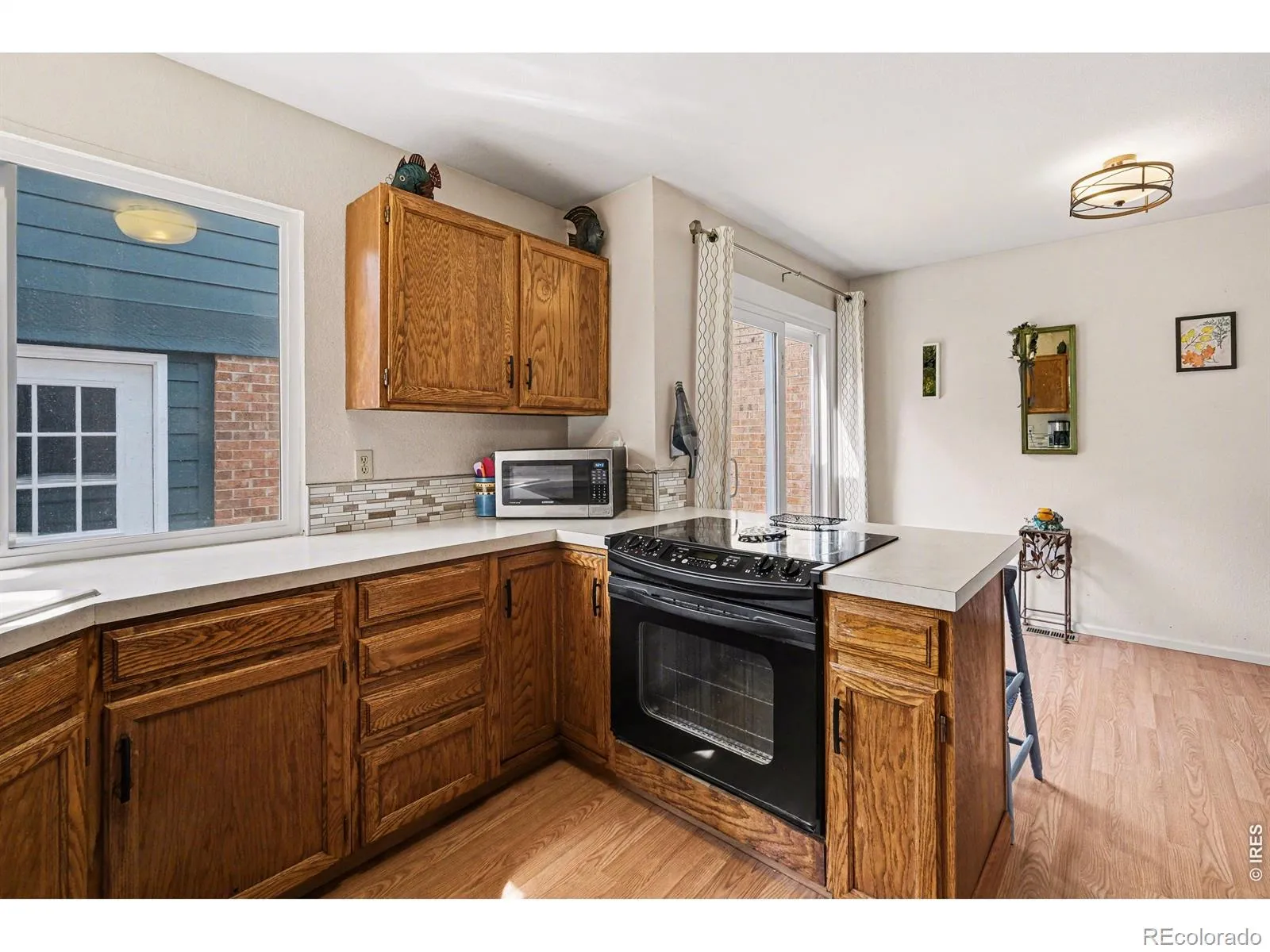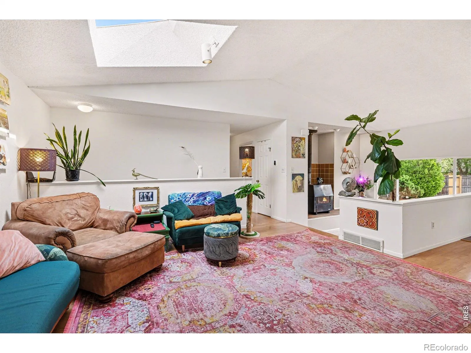 Private, fresh oasis backing to open space in the heart of Fort Collins! Step into a home full of sun-splashed spaces, cozy nooks, and rooms built for relaxation. The main level features a great room with vaulted ceilings, laminate flooring, and a large skylight to bring the outdoors in. Curl up with a good book in the cozy sunken living room by the wood-burning stove (located to offer alternative heat for the entire home) or sip your morning coffee in the breakfast nook. Larger gatherings can spill into the dining room for ample seating. The kitchen features bar seating, pantry, coffee station, and a corner sink overlooking the courtyard. Select from two primary suites; one on each level. The main level retreat features a private bathroom and laminate floors while the lower level offers an expansive space with daylight level windows, laminate flooring, and an option to use an adjacent bedroom as a private study, huge second closet, or home gym. The finished basement provides great spaces to host game night or enjoy the movie night with friends on your massive TV (INCLUDED)! The lush, private grounds provide ample space for a Summer BBQ and yard games while the gardener will appreciate the meticulously maintained garden beds – this home has only been owned by CSU horticulture staff and graduates! Zero lot line living provides incredible privacy and wide, open spaces that back to open space and trails. The oversized garage creates a private courtyard and backyard space and includes a window into the attached storage/workshop. High-end improvements have been made for your future at home – fresh paint, new premium windows, and new light fixtures. All appliances stay! Close to shopping, dining, parks, trails, and entertainment – live in the middle of it all. Schedule a tour today and make your next move your best move!