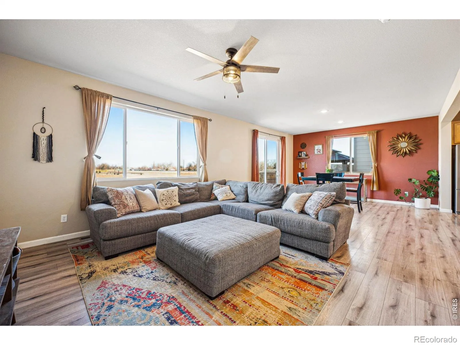 Country Road….take me home! This beautifully designed 3-bed, 2.5-bath home in Berthoud’s PrairieStar neighborhood offers the perfect blend of privacy, community, and breathtaking mountain views. Tucked into a peaceful cul-de-sac and backing to open space, this home provides a serene retreat while keeping you close to everything you need. Step into the open floor plan with 9 ft ceilings and large windows flooding the space with natural light. The main level seamlessly connects the kitchen, dining, and living areas, creating the ideal space for both everyday living and entertaining. The kitchen features a large island with breakfast bar, extra-tall cabinets, stainless steel appliances, a 5-burner gas range, and a walk-in pantry. Upstairs, a spacious loft/flex space offers endless possibilities-whether you need a home office, playroom, or rec room, this space adapts to your lifestyle. The primary suite is a true retreat, offering privacy, stunning sunset views, and an en-suite bath with a large walk-in shower and walk-in closet. Two additional bedrooms, a full bath, and a large laundry room complete the upper level. Need storage? This home has it covered with a 5-ft crawl space, under-stair storage, and a 2-car attached garage. Beyond the home, the PrairieStar neighborhood offers incredible amenities. Just three houses down the street, you can access scenic trails winding through the community. Head down the street and enjoy basketball, tennis, and pickleball courts, plus picnic areas, community gardens, and a dog park. With an unbeatable location just across from TPC Colorado, 5 minutes from Downtown Berthoud, and easy access to Hwy 287 for trips to Longmont, Loveland, or I-25, this home truly has it all. Check out the full list of upgrades in the MLS and make sure to add this one to your list of “must sees”.