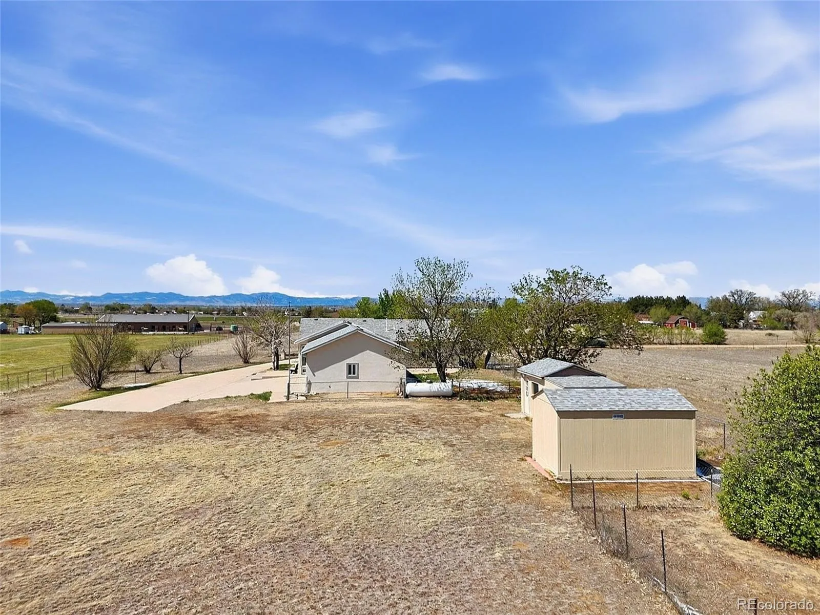 Beautiful Countryside Home on 1 Acre with Mountain Views! Conveniently located at the end of cul-de-sac just 1.5 miles SW from the Prairie Center. Enjoy your own private slice of paradise with plenty of room for horses, chickens, goats, etc! Nobody to tell you what you can or cannot do on your property! Perfect for business owners wanting to park commercial trailers, trucks onsite. Bring all your toys, there are plenty of room for RV’s, boats etc! Beautiful landscaped front and back yard. As you enter the home you will be greeted with vaulted ceilings, floor to ceiling windows in the living room and mountain views! Entertain and cook in your spacious kitchen with connecting dining room. Head through the sliding glass door from the dining room and step into your large fully finished bonus/sun room!! The main level has 2 bedrooms with a full guest bathroom and the primary bedroom with en-suite bathroom. In the basement you’ll find another large family room, laundry room, 2 additional bedrooms, a large walk-in closet and a separate kitchen area. Plenty of storage space in the basement as well. Big oversized 3 car garage attached to the home. X2 Large sheds in backyard. Class 4 Hail Resistant Roof installed in 2020. LeafFilter recently installed with lifetime warranty. New well head installed this year! If you’re looking for peace and quiet where you can escape the hustle and bustle yet want to be close to town, then this is the home for you!! Turnkey Ready…Come get it!!