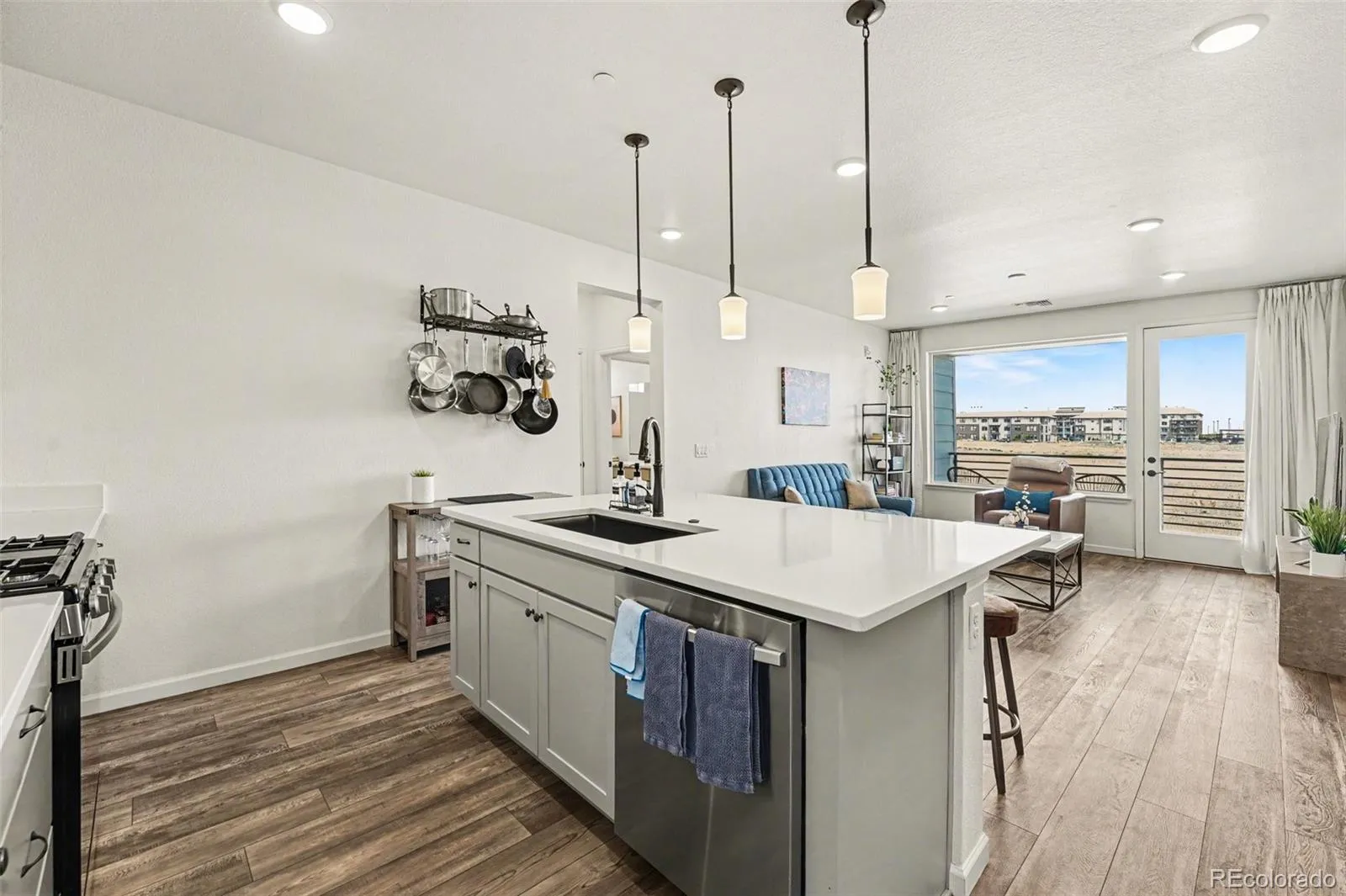 Coming Soon! Short sale opportunity in wonderful Gateway Commons Community. This is home is move-in ready and perfectly positioned in Denver with quick access to Denver International Airport, Downtown Denver, and major commuter routes, this location makes everyday living effortless. This rare ground-floor, end-unit residence offers 3 bedrooms, 2 bathrooms, and 1,252 square feet of bright, functional living space. With added separation from neighboring homes, you’ll enjoy enhanced privacy, abundant natural light, and a quiet, comfortable setting. The open-concept layout creates a seamless flow between the kitchen, dining, and great room, ideal for both everyday living and entertaining. The modern kitchen is designed to impress with a large center island, pantry storage, white quartz countertops, Samsung appliances, and Kohler fixtures, blending style and practicality. All appliances are included, making this home truly move-in ready. Step outside to your private patio that backs to open space, offering a peaceful and secluded outdoor retreat, perfect for relaxing mornings or unwinding in the evening. The primary suite is thoughtfully positioned for privacy and features a spacious walk-in closet and a sleek en-suite bathroom with contemporary finishes and lighted mirrors. Two additional bedrooms provide flexibility for guests, a home office, or creative space, while a conveniently located laundry area enhances everyday functionality. Enjoy the convenience of direct access to your private garage, which is already plumbed for an electric vehicle, adding future-ready functionality to your home. Located in the desirable Gateway Commons community, this home offers the perfect balance of accessibility, comfort, and modern design inviting you to settle into a lifestyle that’s both connected and relaxed. Seller is offering up to 3% seller paid concessions for rate buy down and/or closing costs with acceptable offer.