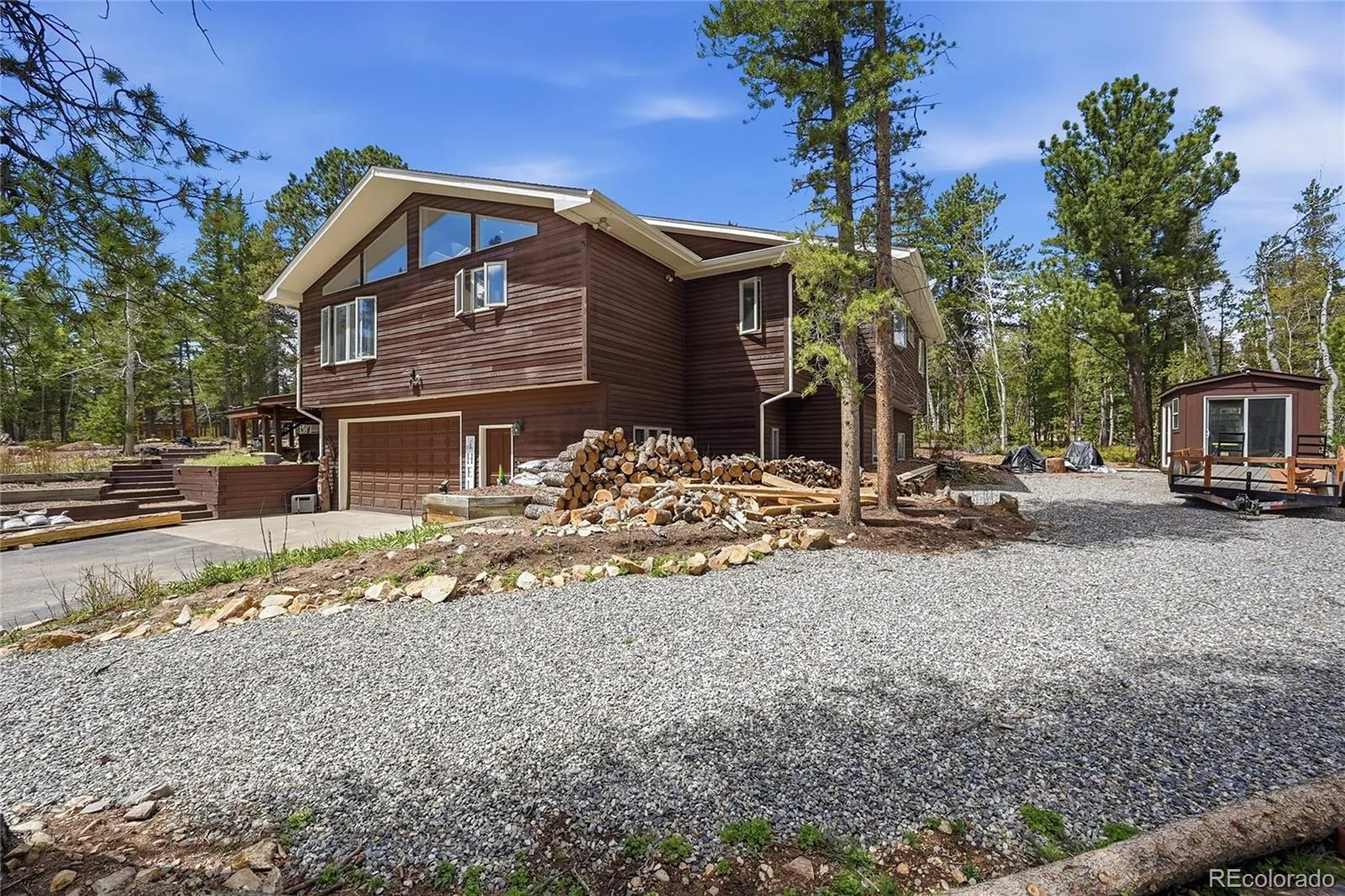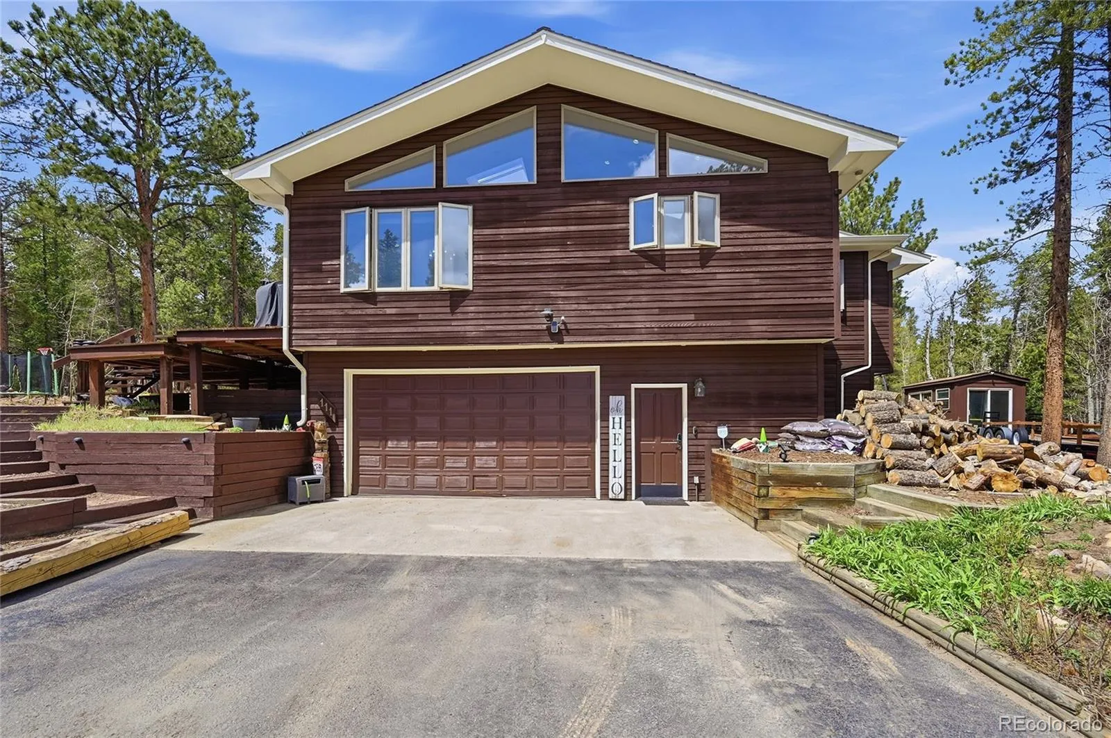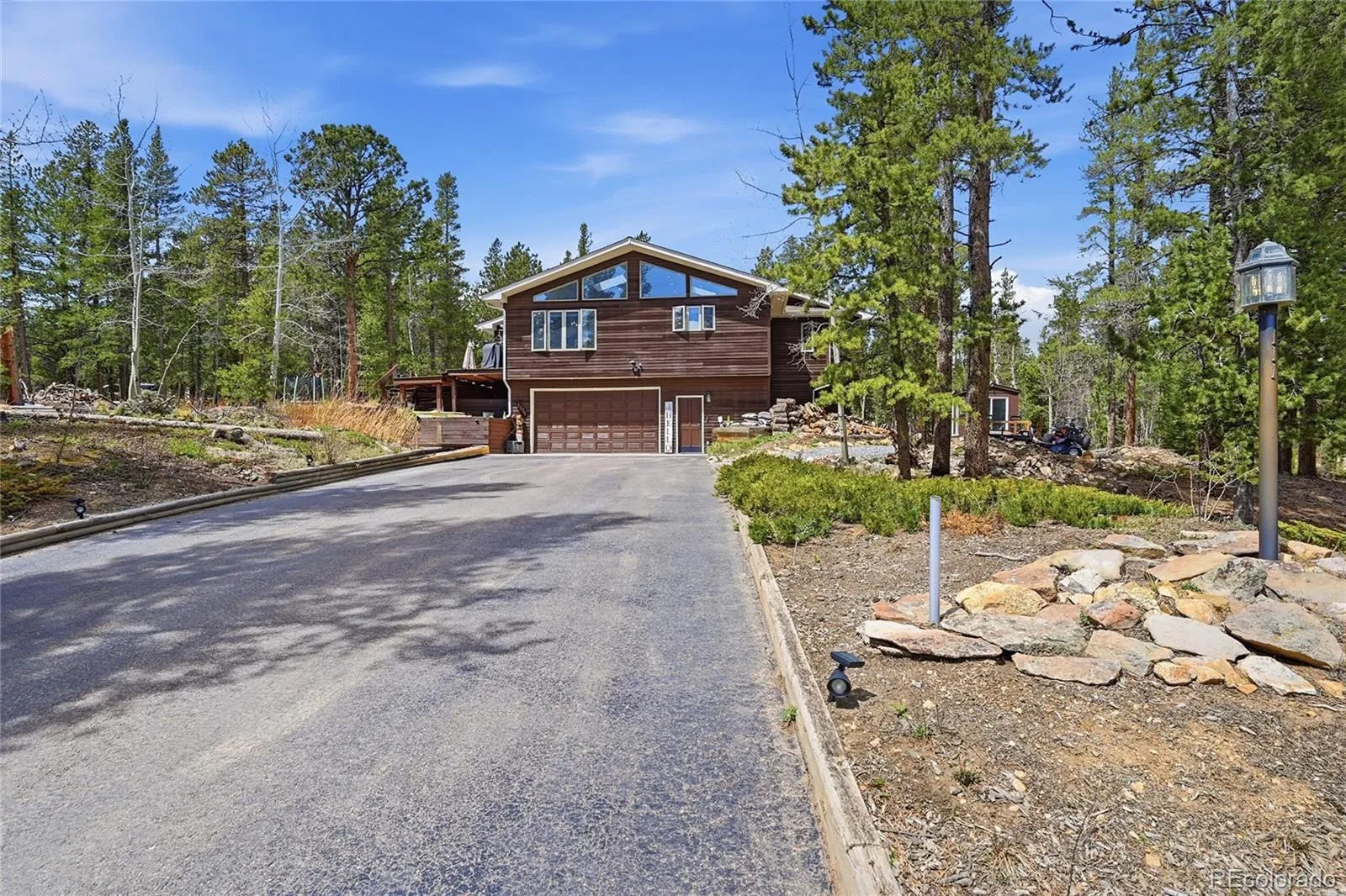 Stunning updated sprawling ranch on over an acre in the private, highly desirable Missouri Lakes community, featuring a private pond for catch-and-release fishing. Light, bright, and open throughout with abundant windows and soaring tongue-and-groove ceilings. Warm radiant heat adds comfort year-round. The beautifully updated kitchen is designed for entertaining and features a large granite island, granite countertops, spacious breakfast bar, oversized walk-in pantry, vaulted ceilings, skylights, and stainless steel appliances. Formal dining room with skylight. Step down into the grand great room with dramatic vaulted ceilings, an inviting fireplace with substantial mantel, and abundant natural light. The spacious primary suite offers vaulted ceilings, private access to the deck, a stunning spa-inspired updated five-piece bath, and a huge walk-in closet. Generous secondary bedrooms also feature vaulted ceilings. Beautifully updated three-quarter bath with custom shower and skylights. Convenient main-floor laundry. Downstairs, enjoy a warm and welcoming family room with fireplace & built-ins, plus an office/study with half bath that could easily serve as a fifth bedroom. Large fourth bedroom with private entrance, private bath, walk-in closet, and laundry area, ideal for multigenerational living or an in-law suite. Outdoor living shines with an updated 20×53 deck perfect for BBQs and enjoying the peaceful setting. Newer shed, extra gravel driveway, and attached three-car garage with storage and workbench area. Wonderful tree-filled lot offering the perfect mountain living lifestyle, with access to the private Missouri Lakes pond for catch-and-release enjoyment. Ideally located just minutes from Black Hawk and Central City, with an easy drive to the Denver metro areas.