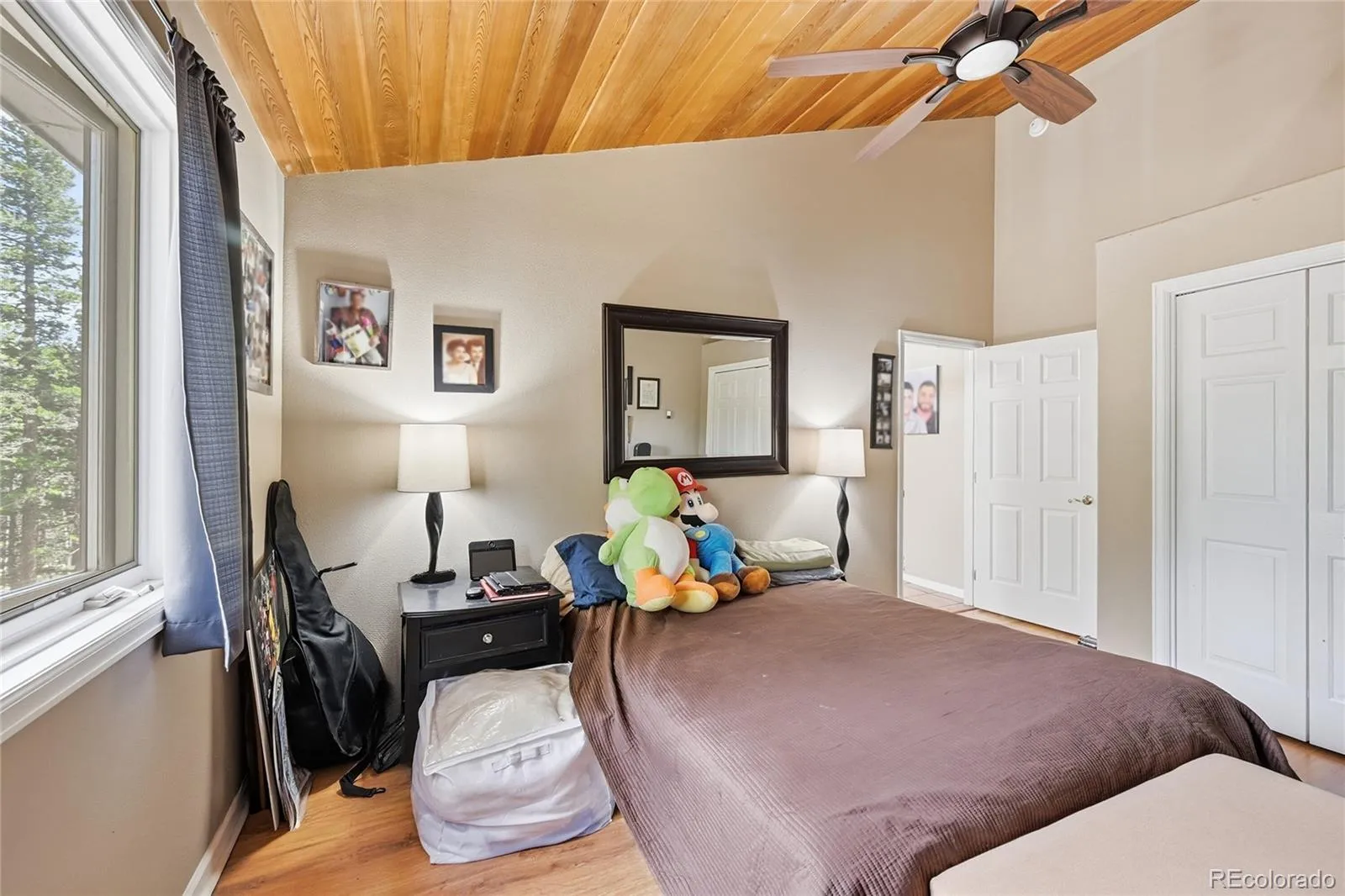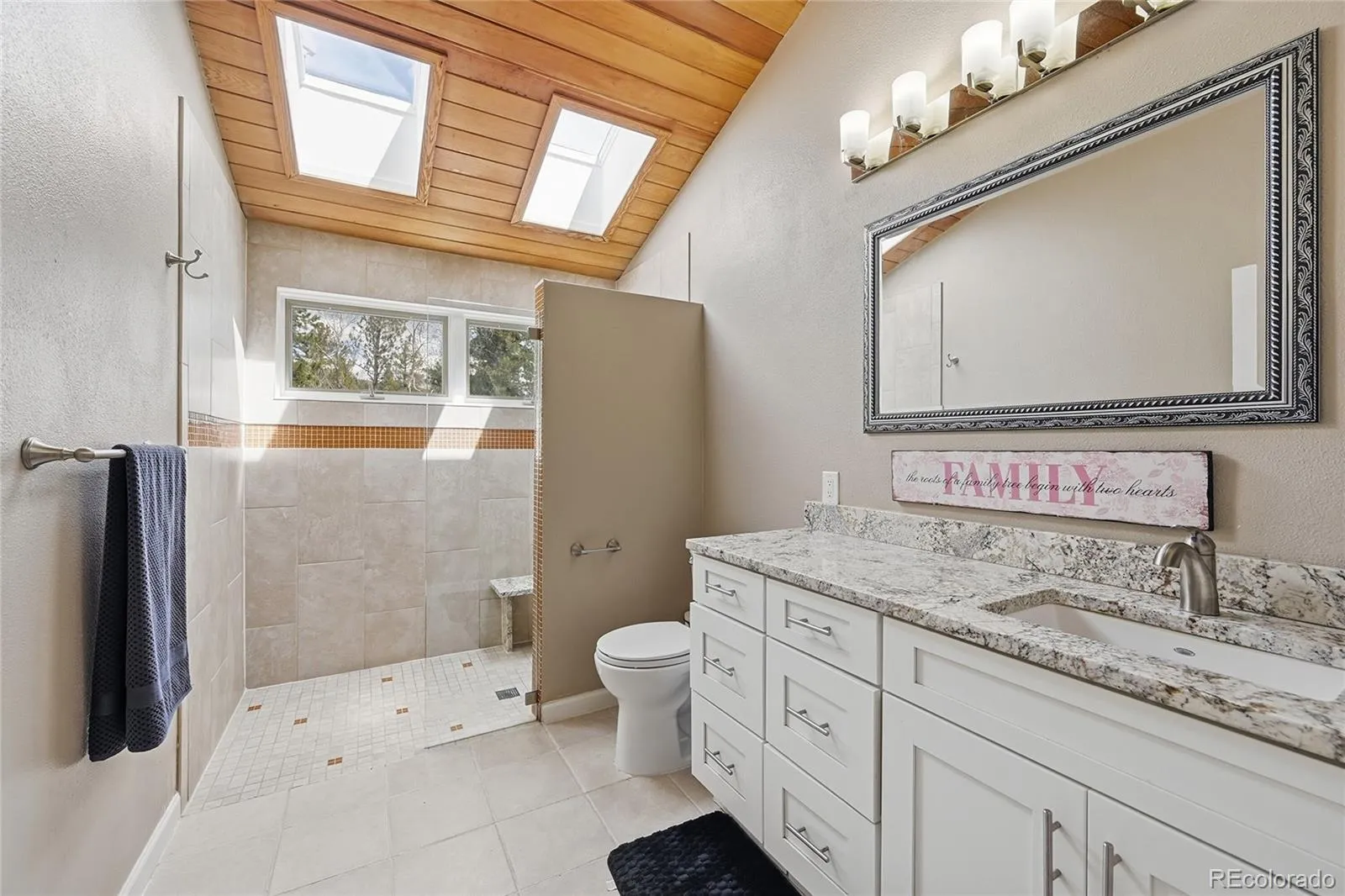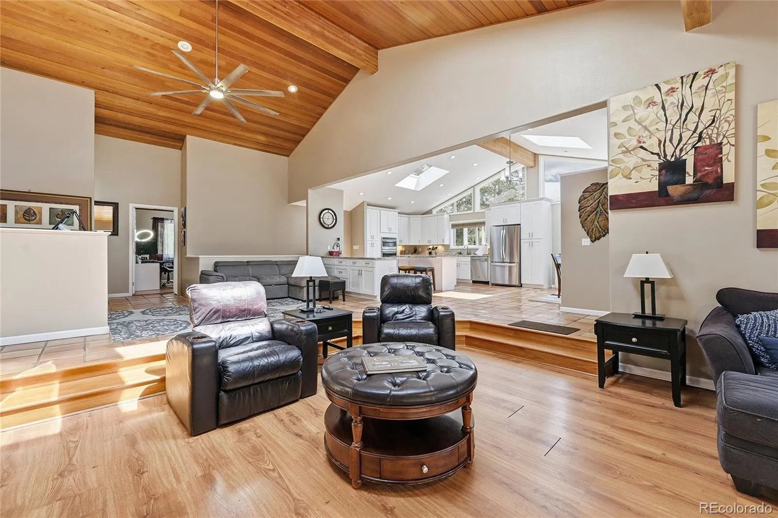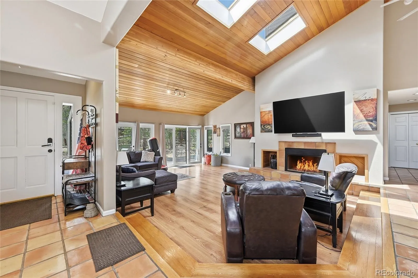 Stunning updated sprawling ranch on over an acre in the private, highly desirable Missouri Lakes community, featuring a private pond for catch-and-release fishing. Light, bright, and open throughout with abundant windows and soaring tongue-and-groove ceilings. Warm radiant heat adds comfort year-round. The beautifully updated kitchen is designed for entertaining and features a large granite island, granite countertops, spacious breakfast bar, oversized walk-in pantry, vaulted ceilings, skylights, and stainless steel appliances. Formal dining room with skylight. Step down into the grand great room with dramatic vaulted ceilings, an inviting fireplace with substantial mantel, and abundant natural light. The spacious primary suite offers vaulted ceilings, private access to the deck, a stunning spa-inspired updated five-piece bath, and a huge walk-in closet. Generous secondary bedrooms also feature vaulted ceilings. Beautifully updated three-quarter bath with custom shower and skylights. Convenient main-floor laundry. Downstairs, enjoy a warm and welcoming family room with fireplace & built-ins, plus an office/study with half bath that could easily serve as a fifth bedroom. Large fourth bedroom with private entrance, private bath, walk-in closet, and laundry area, ideal for multigenerational living or an in-law suite. Outdoor living shines with an updated 20×53 deck perfect for BBQs and enjoying the peaceful setting. Newer shed, extra gravel driveway, and attached three-car garage with storage and workbench area. Wonderful tree-filled lot offering the perfect mountain living lifestyle, with access to the private Missouri Lakes pond for catch-and-release enjoyment. Ideally located just minutes from Black Hawk and Central City, with an easy drive to the Denver metro areas.