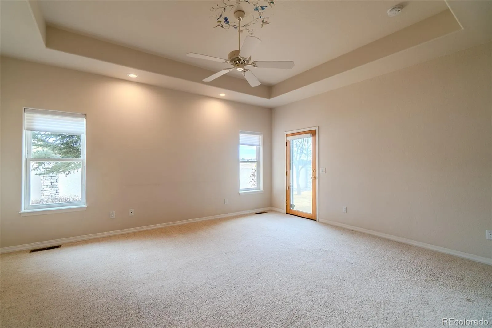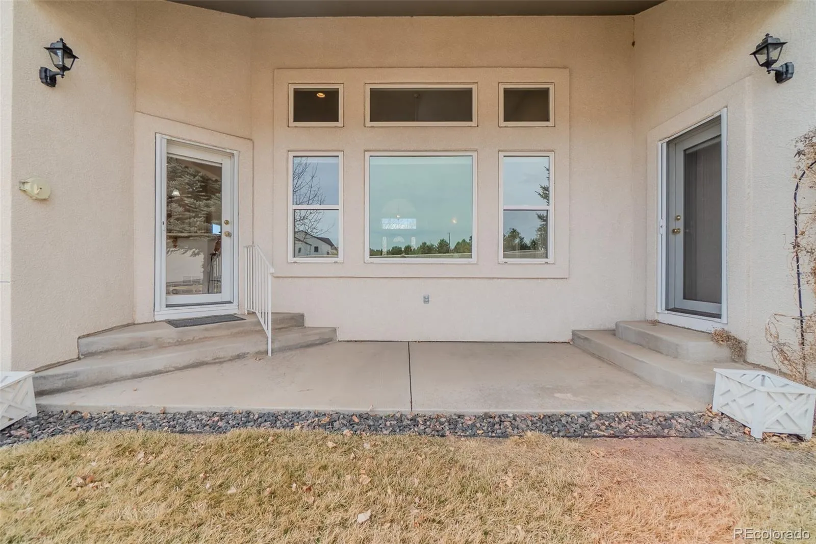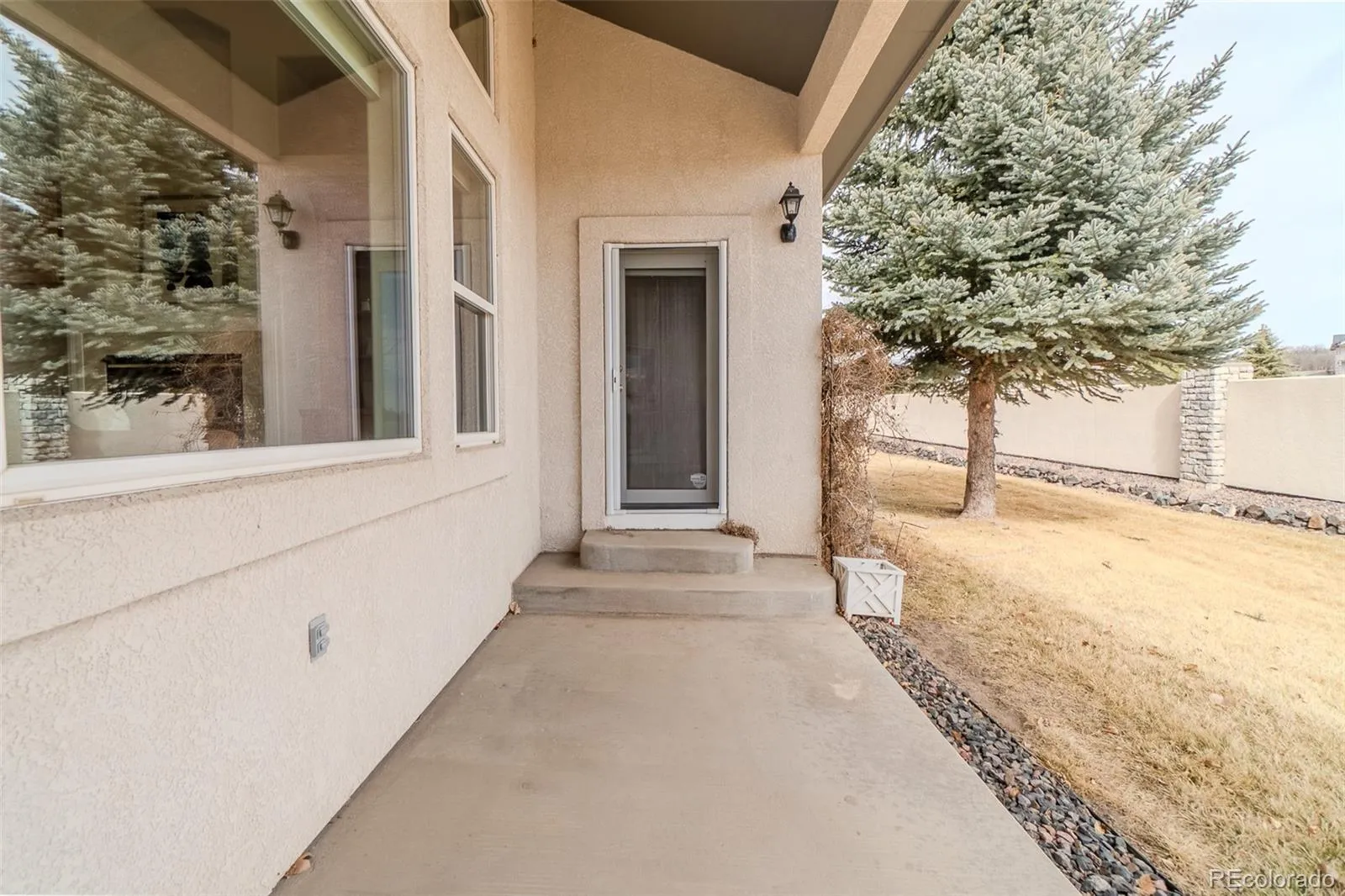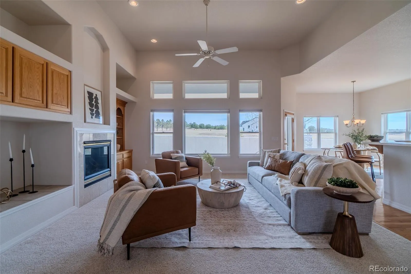 Come see this stunning Ranch Style residence in the Eagle Villas – a small gated community of only 28 homes with an inexpensive HOA that takes care of everything. Nearly 4,000 finished sqft doesn’t feel like downsizing. This home is designed for the discerning buyer who appreciates space, quality, and maintenance-free living. Stop worrying about yard work, snow removal, roof upkeep, or landscaping – the Eagle Villa HOA handles it all, so you can spend more time enjoying life. Located just east of I-25, easy access to Colorado Springs, Denver, excellent schools in D20 and the Colorado outdoors. From the moment you enter, soaring 13-foot ceilings, built-in shelving, and a warm gas fireplace creates a welcoming great room designed for both quiet evenings and gracious entertaining. Rich oak cabinetry throughout complements the open floor plan. The Kitchen features Corian countertops, a pantry, three-year-old stove and microwave, a dishwasher, refrigerator, and is adjacent to the formal dining room. A separate sunny dinette overlooks the private backyard patio where you can enjoy morning coffee or evening relaxation. The home is cooled by a whole house air conditioner, also replaced three years ago, as was the 75-gallon water heater. A whole house 3-stage NU Aqua water filtration system ensures clean water throughout the home. This home is really move-in ready. The thoughtful main level layout includes: a Formal Living Room and Dining Room, and an open floor plan for Family Room and Kitchen. Primary Suite has a generous walk-in closet, an expansive five-piece bath featuring a walk-in jetted tub as well as a walk-in shower, and easy access to a covered patio and a Convenient Laundry Room with large utility sink. The garden-level basement expands your living space significantly, offering two additional bedrooms, a full bath, dedicated flex space, a large Recreation Room with wet bar and a second fireplace. The basement is easily accessed with a built-in chairlift.