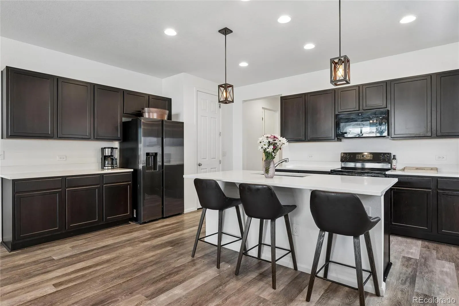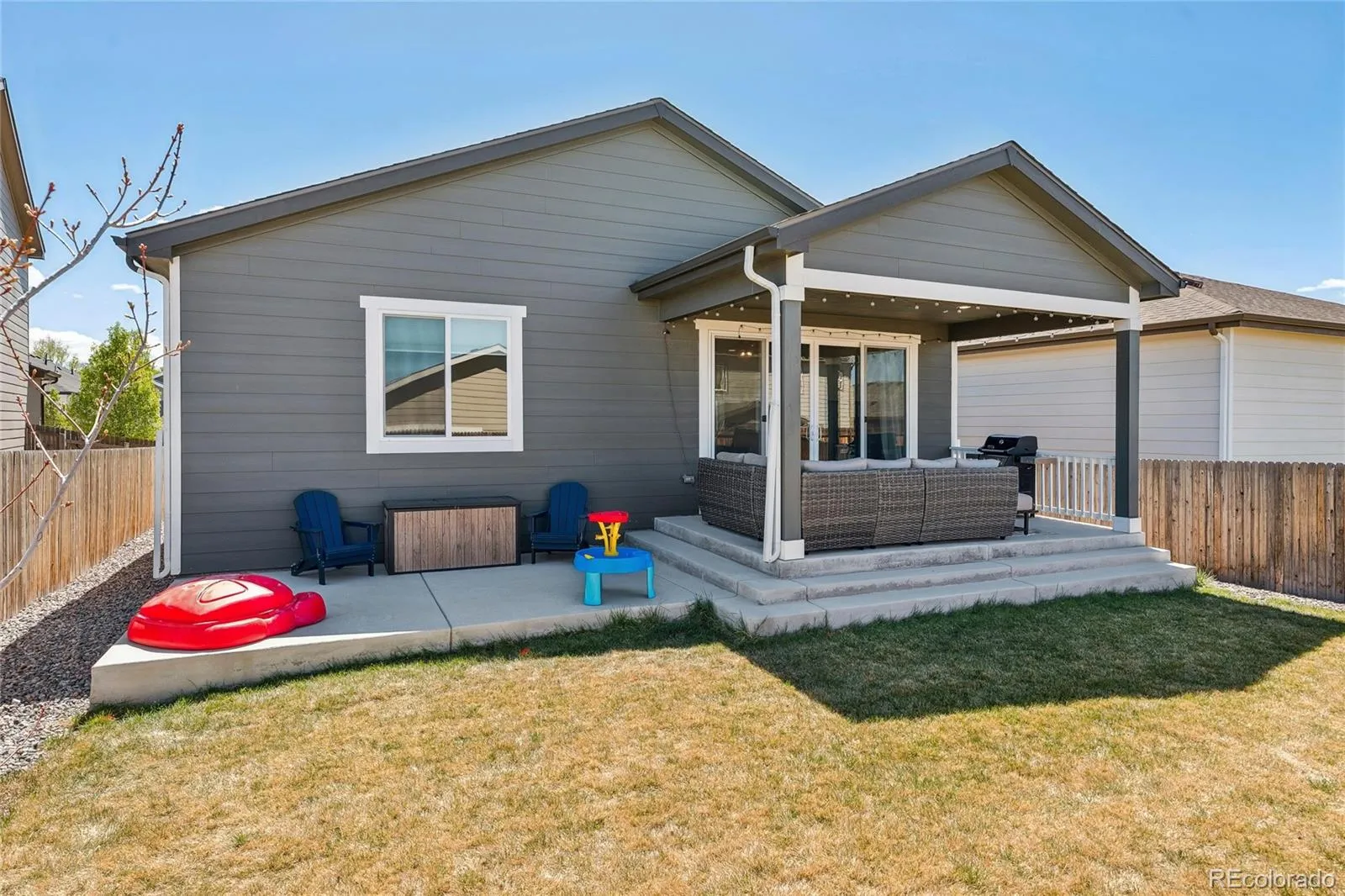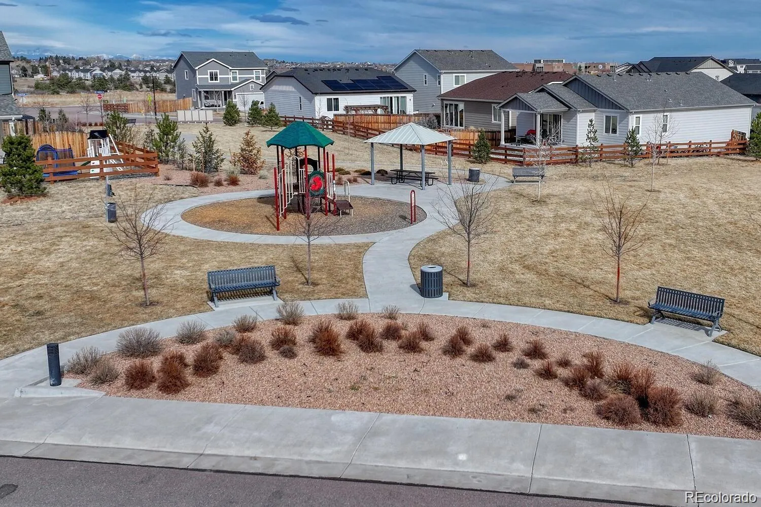 Show home condition with high-end finishes inside and out! This home has 4 bedrooms 2 bathrooms,2 car garage ranch-style home in the desirable Bella Mesa community of Castle Rock! This stunning, spacious and open floorplan is perfectly located on an flat 5706 sqft homesite. The interior boasts a gorgeous kitchen – complete with upgraded espresso cabinetry, quartz countertops and all appliances . In addition, the large island features an oversized sink, pendant lighting and opens to the sizable family room. The primary bedroom offers a walk-in closet and a tastefully appointed ensuite bathroom with espresso cabinets and corian countertops, plus access to the crawl space for extra storage. Other improvements include: a new class 4 impact resistant roof in 2023, wide planked luxury vinyl flooring, upgraded carpet and pad, light fixtures,fireplace & mantle and so much more! The exterior is equally impressive with a maintained yard with roughly $27,000 in patio improvements. The covered back porch plus extended slab patio provide the perfect place to relax or entertain. This home still looks and feels brand new. Plus all appliances are included making it turnkey. Close to neighborhood parks, open space, trails, schools, and recreation and everything Castle Rock has to offer. This home is move in ready!