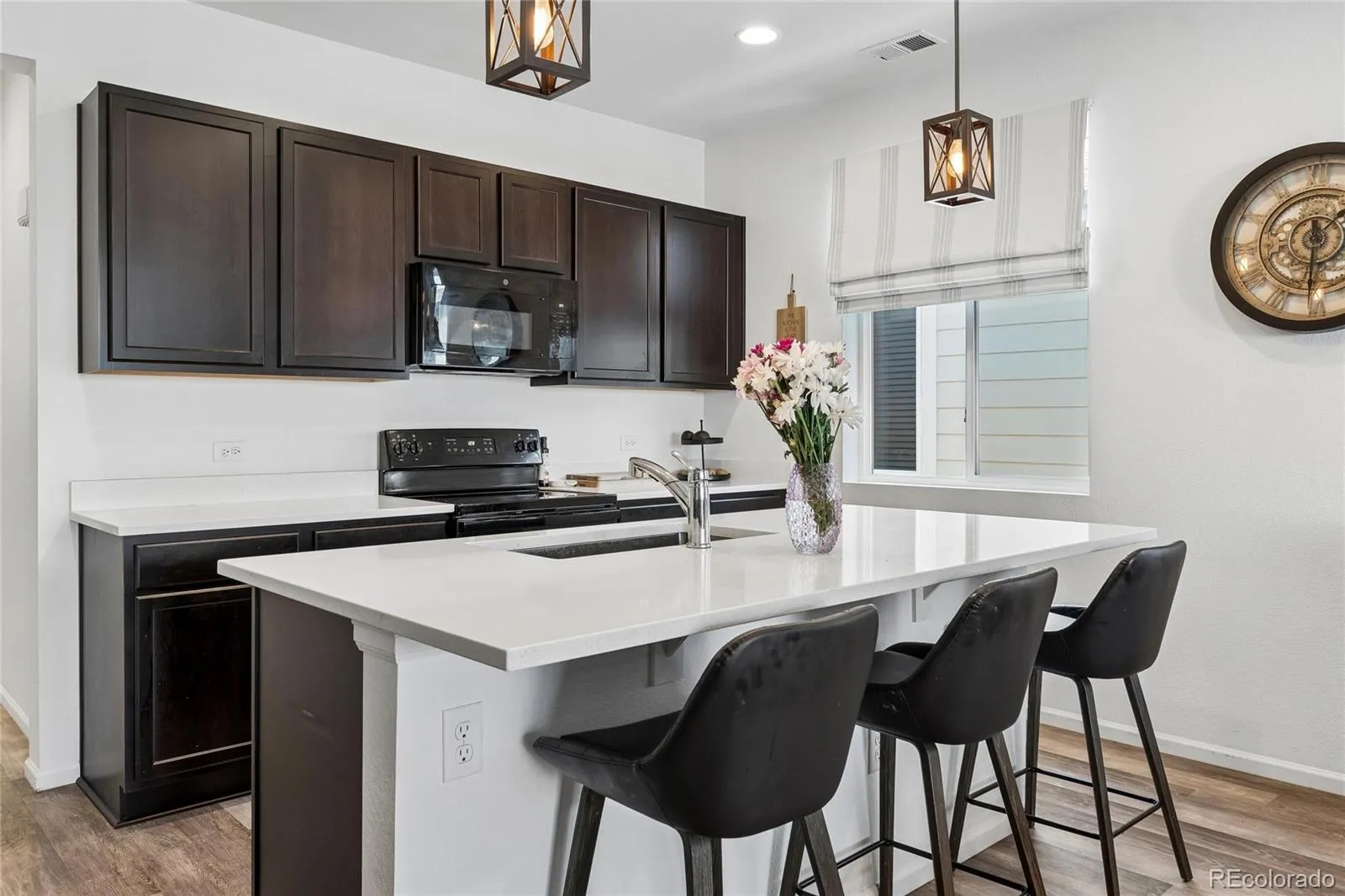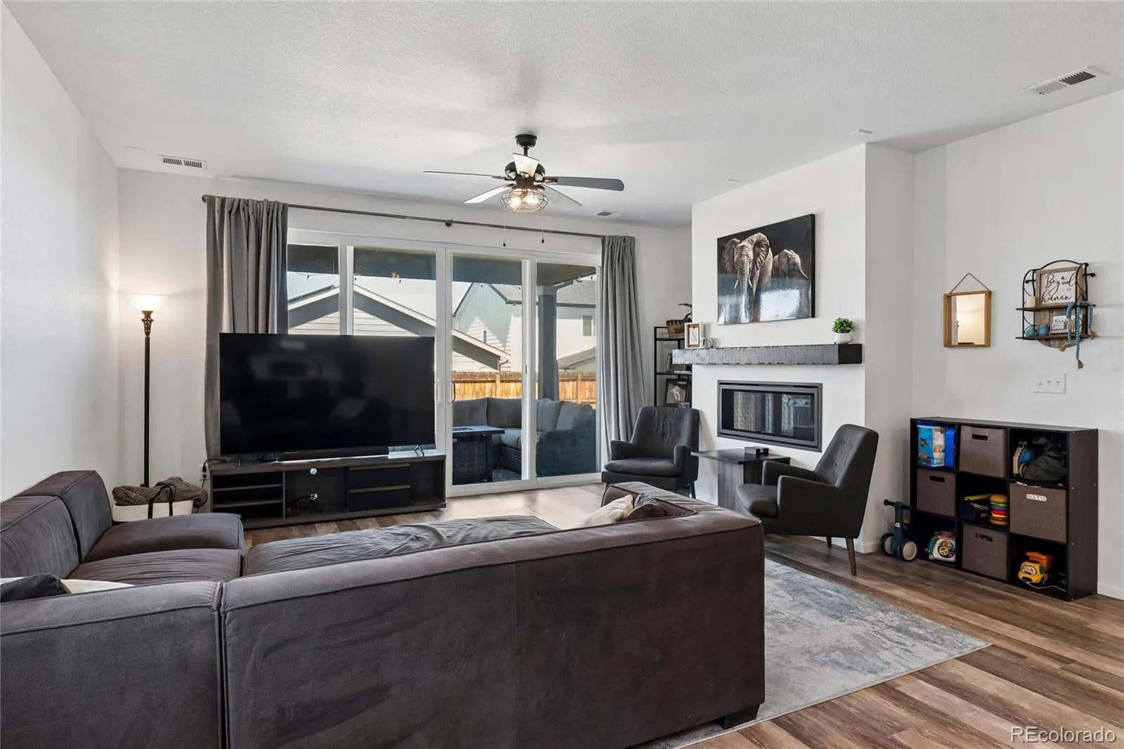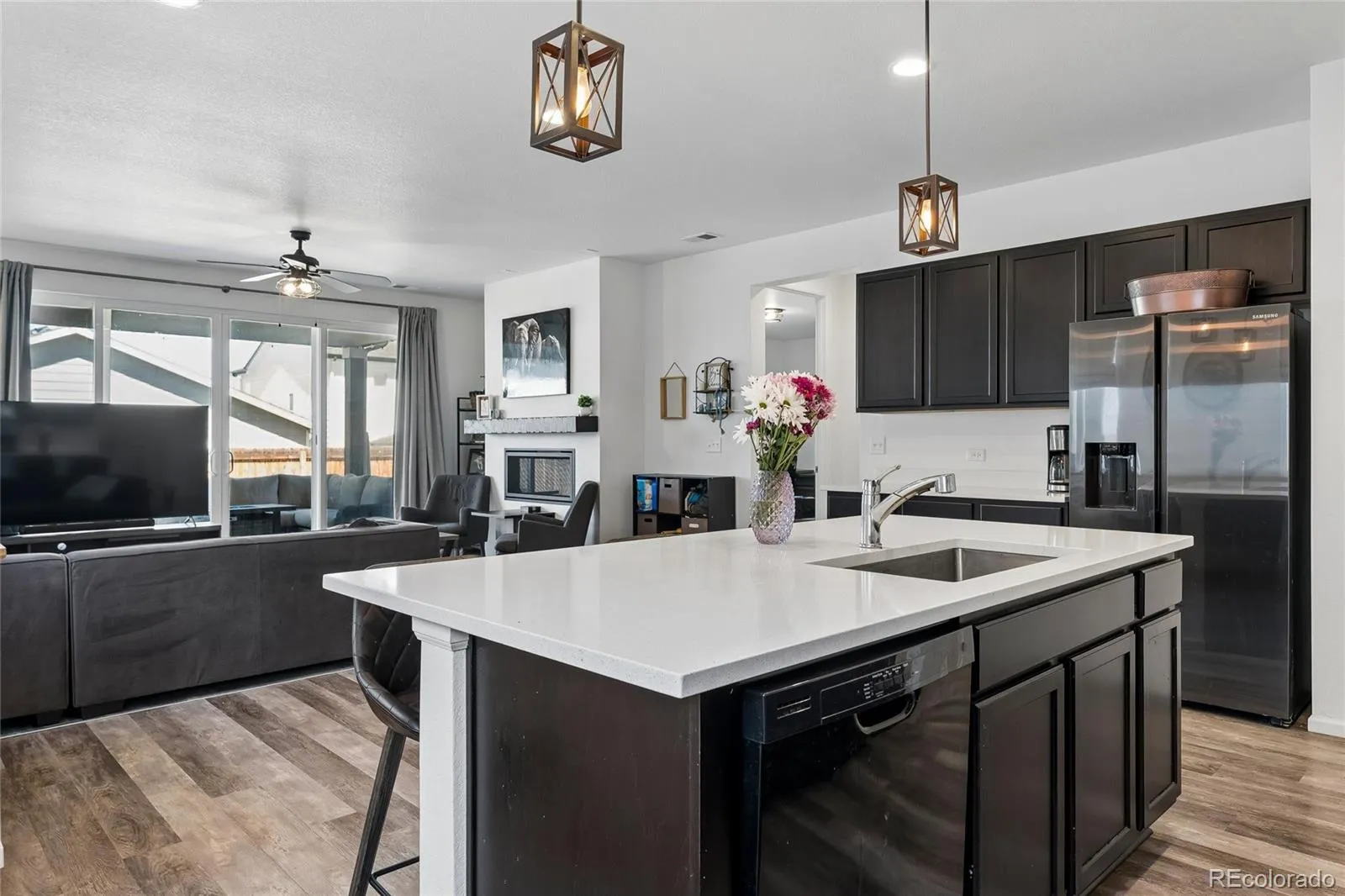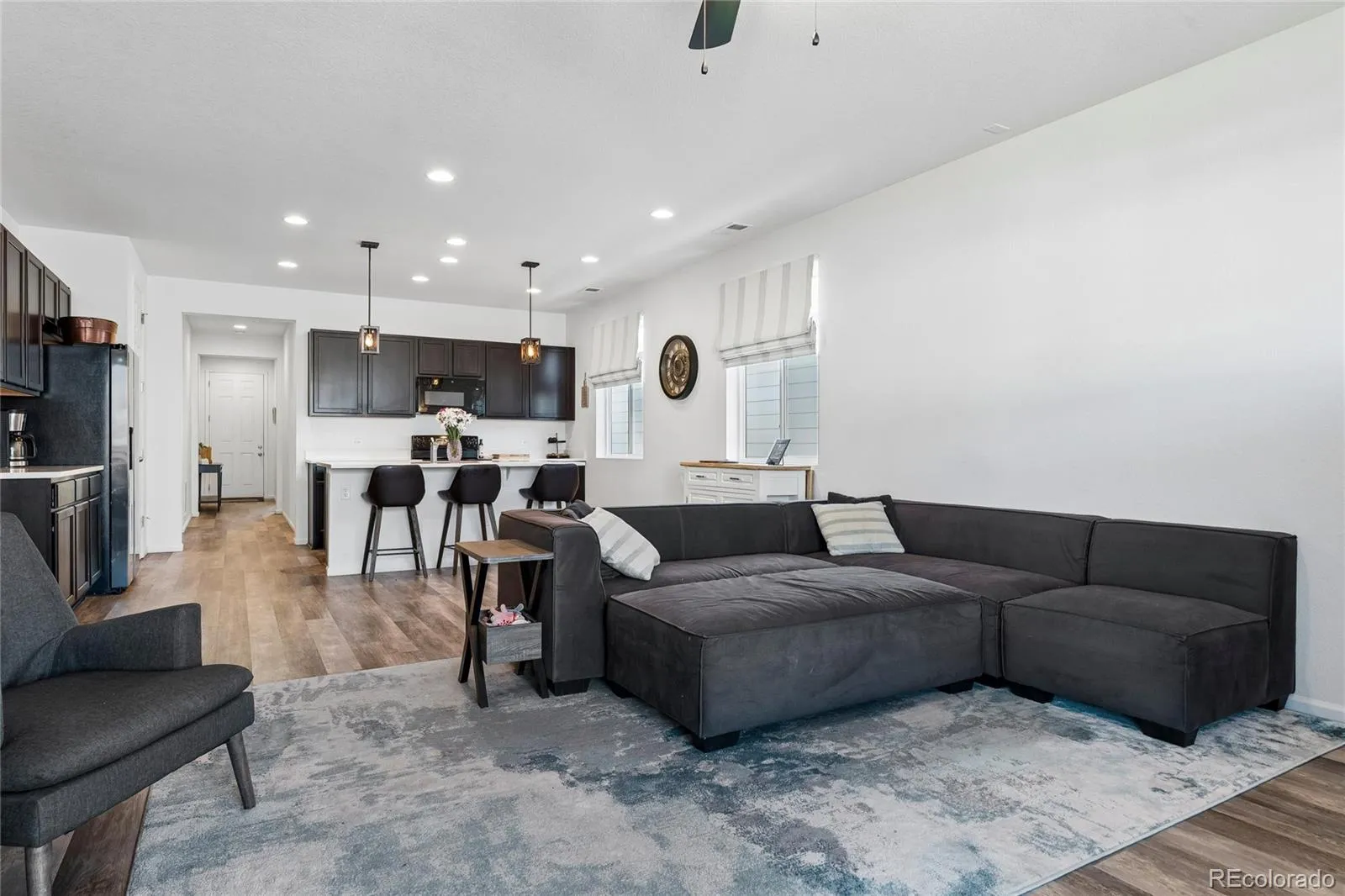Show home condition with high-end finishes inside and out! This home has 4 bedrooms 2 bathrooms,2 car garage ranch-style home in the desirable Bella Mesa community of Castle Rock! This stunning, spacious and open floorplan is perfectly located on an flat 5706 sqft homesite. The interior boasts a gorgeous kitchen – complete with upgraded espresso cabinetry, quartz countertops and all appliances . In addition, the large island features an oversized sink, pendant lighting and opens to the sizable family room. The primary bedroom offers a walk-in closet and a tastefully appointed ensuite bathroom with espresso cabinets and corian countertops, plus access to the crawl space for extra storage. Other improvements include: a new class 4 impact resistant roof in 2023, wide planked luxury vinyl flooring, upgraded carpet and pad, light fixtures,fireplace & mantle and so much more! The exterior is equally impressive with a maintained yard with roughly $27,000 in patio improvements. The covered back porch plus extended slab patio provide the perfect place to relax or entertain. This home still looks and feels brand new. Plus all appliances are included making it turnkey. Close to neighborhood parks, open space, trails, schools, and recreation and everything Castle Rock has to offer. This home is move in ready!