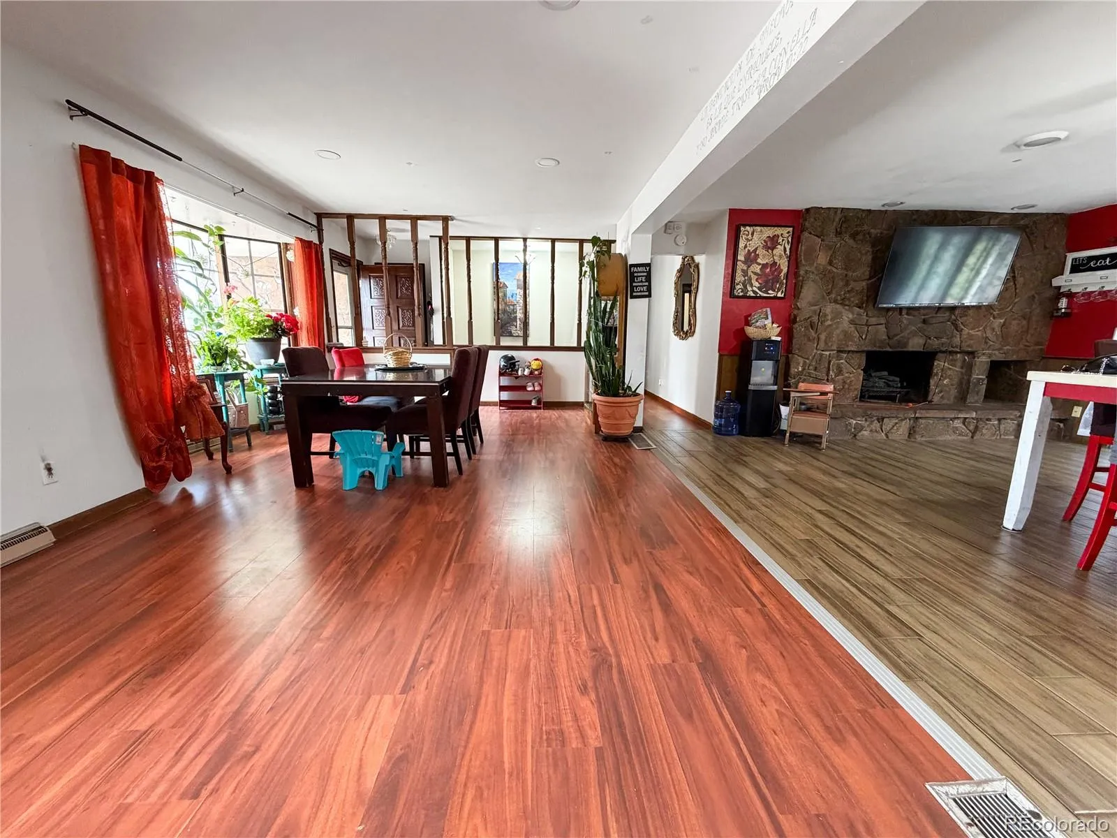 The main level features an open-concept living, kitchen, and dining area that flows naturally for everyday living and entertaining, anchored by a cozy fireplace in the dining space. Three bedrooms are located upstairs, including a primary suite with a private half-bath (shower, toilet, and sink), plus a full bathroom in the hallway serving the additional bedrooms. A main-floor laundry room adds everyday convenience, and a bonus addition at the back of the home expands your living footprint even further.