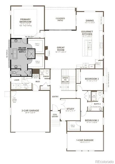 **!!AVAILABLE NOW/MOVE IN READY!!**SPECIAL FINANCING AVAILABLE**CORNER LOT** This Riverbend is waiting to impress with the convenience of its ranch-style layout along with designer finishes throughout. The main floor offers a study and two generous secondary bedrooms with a shared bath. The open layout leads you to the back of the home where a beautiful gourmet kitchen awaits and features a quartz center island, walk-in pantry and stainless steel appliances. Beyond, is the open dining room. Relax in the welcoming great room that has a fireplace and doors that open into the large covered patio. The nearby primary suite showcases two spacious walk-in closets and a private five piece bath. A convenient powder, laundry and mudroom complete the main level. If that wasn’t enough, this exceptional home includes a finished basement that boasts a wide-open, versatile rec room with a stunning wet bar along with a flex room and a basement bedroom that have a walk-in closets and a shared bath.