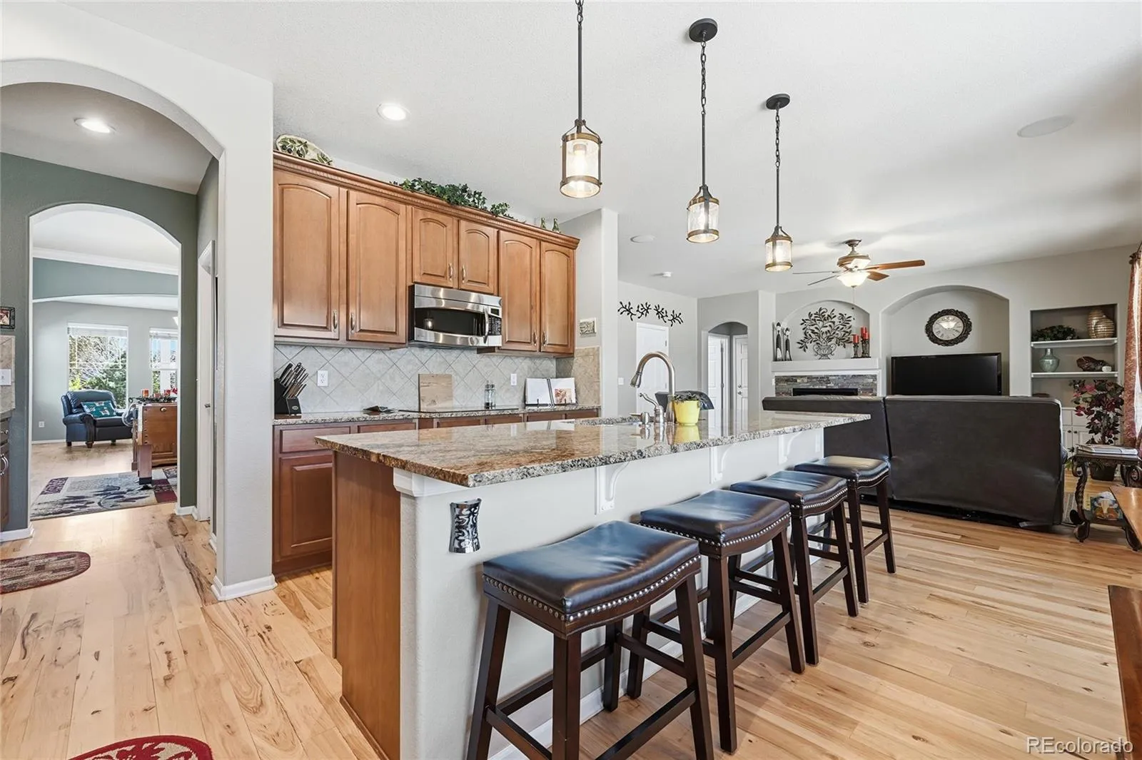 Welcome to an extraordinary residence in the prestigious Beacon Point community of Aurora, Colorado, proudly located within the award-winning Cherry Creek School District. Perfectly positioned on a 1/4th acre lot, in a private cul-de-sac, this impeccably maintained six bedroom, four-bathroom home offers refined elegance, exceptional design, and the very best of Colorado living. A dramatic entry welcomes you into a sun-drenched, open-concept floor plan where expansive windows flood the home with natural light. Designed with both sophistication and comfort in mind, the layout features a main floor private study (6th bedroom with walk-in closet) ideal for executive-level work from home, gracious living spaces, and effortless flow for upscale entertaining. At the heart of the home lies an oversized gourmet kitchen that is nothing short of spectacular — complete with a generous island, immense storage and counter space, abundant cabinetry, and seamless connection to the inviting family room. Whether hosting elegant dinner parties or casual gatherings, this space was designed to impress while remaining warm and welcoming. Step outside to your covered back patio, an ideal setting for alfresco dining and serene Colorado evenings. Just moments away, enjoy walking access to the scenic Aurora Reservoir along with Beacon Point’s exceptional pool and clubhouse amenities, offering a true resort-style lifestyle. Meticulously cared for by the original owners and complemented by a rare four-car garage, this remarkable property blends luxury, location, and lifestyle — delivering Colorado living at its absolute finest.