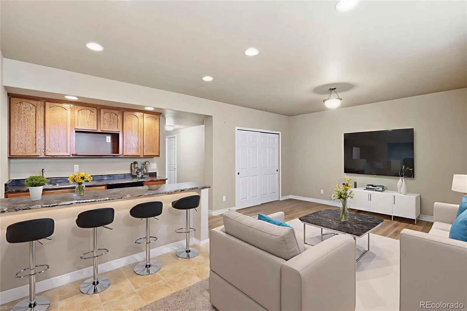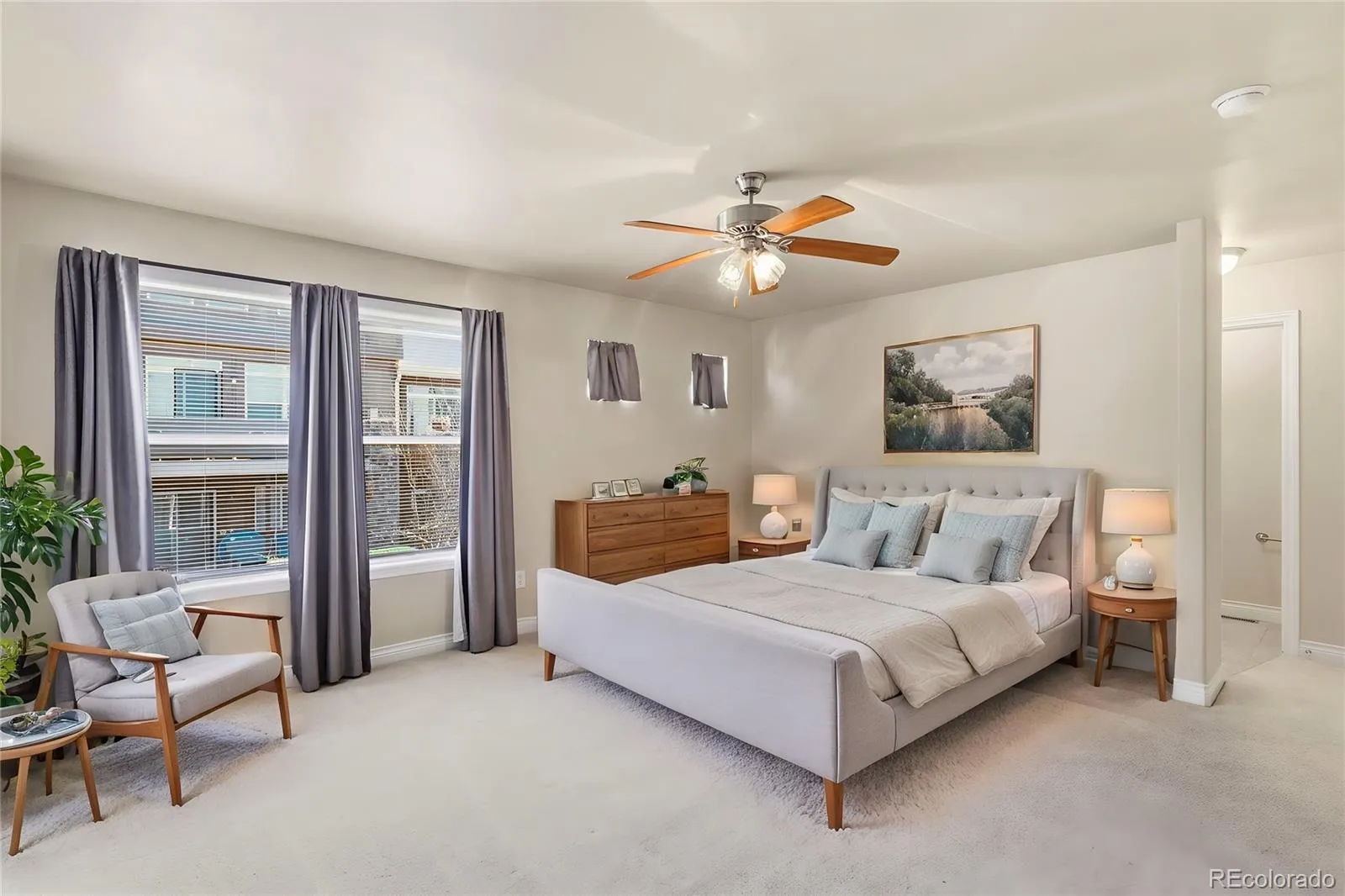 Welcome to this move-in ready home in the highly sought-after Harvest Ridge Community. This light-filled, open-concept residence offers a thoughtfully designed layout that perfectly blends comfort and style. The spacious living room features warm wood flooring and a modern gas fireplace, providing an inviting space to relax and entertain. The patio, accessible from the living area, offers a peaceful retreat, ideal for enjoying Colorado’s beautiful seasons. The kitchen boasts tall cabinetry, ample counter space, and bar seating, creating a functional and stylish space for cooking and entertaining. Two primary suites are located upstairs, each offering attached bathrooms, perfect for added privacy. The finished lower level offers incredible versatility. Whether you need a third bedroom (currently advertised as a non-conforming bedroom), family room, home theater, or home gym, this space can accommodate your needs. The kitchenette with built-in cabinetry, wet bar and mini fridge provides additional storage and workspace, ideal for hobbies or crafts. The lower level also includes a full bath with a soaking tub for ultimate relaxation. This home’s prime location provides convenient access to schools, parks, trails, shopping, military bases, and hospitals. Offering a low-maintenance lifestyle, this townhome provides the perfect balance of value, comfort, and convenience in one of Colorado Springs’ most accessible neighborhoods.