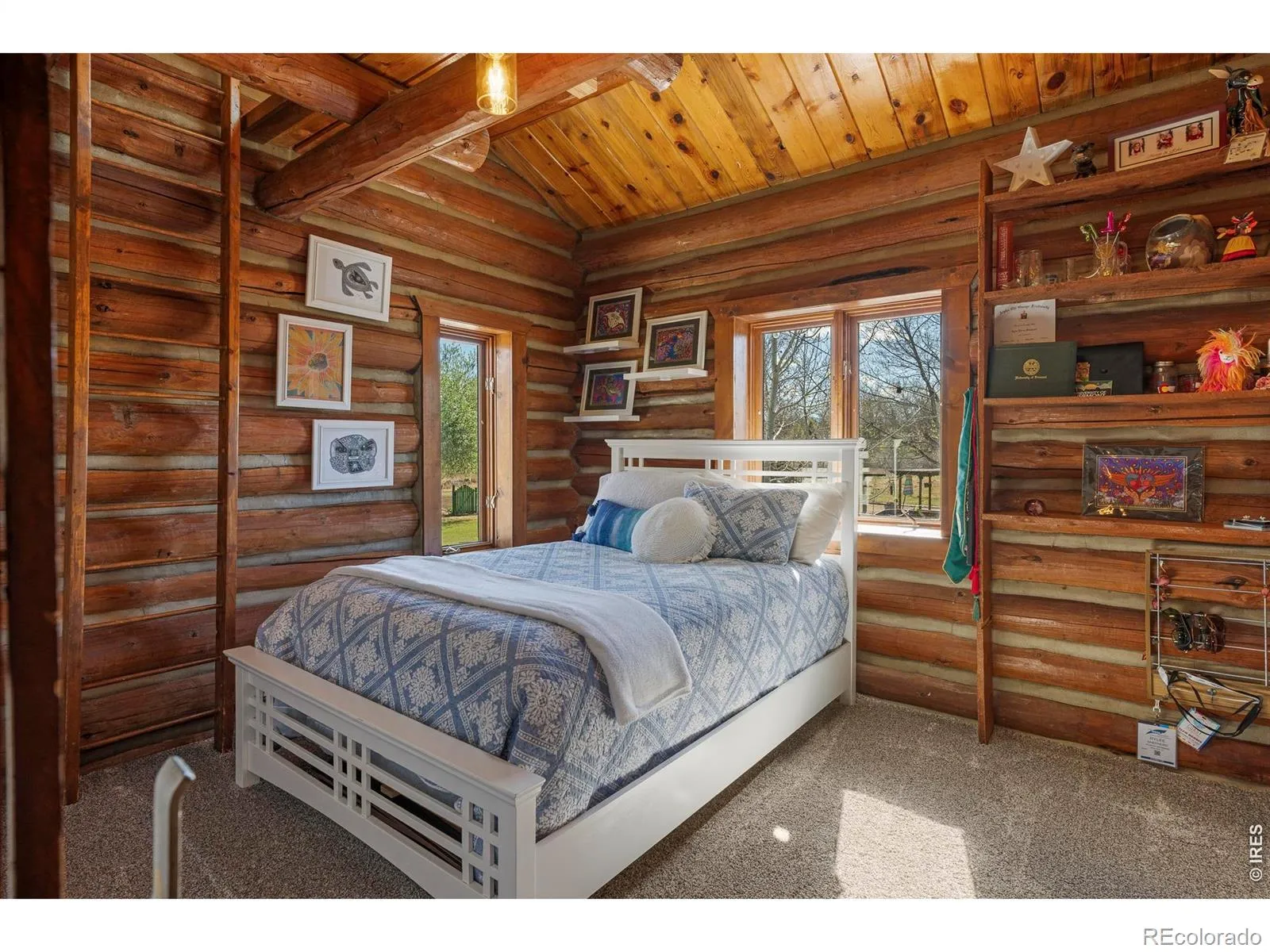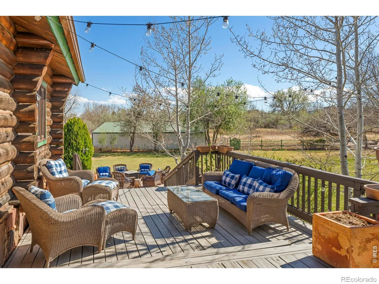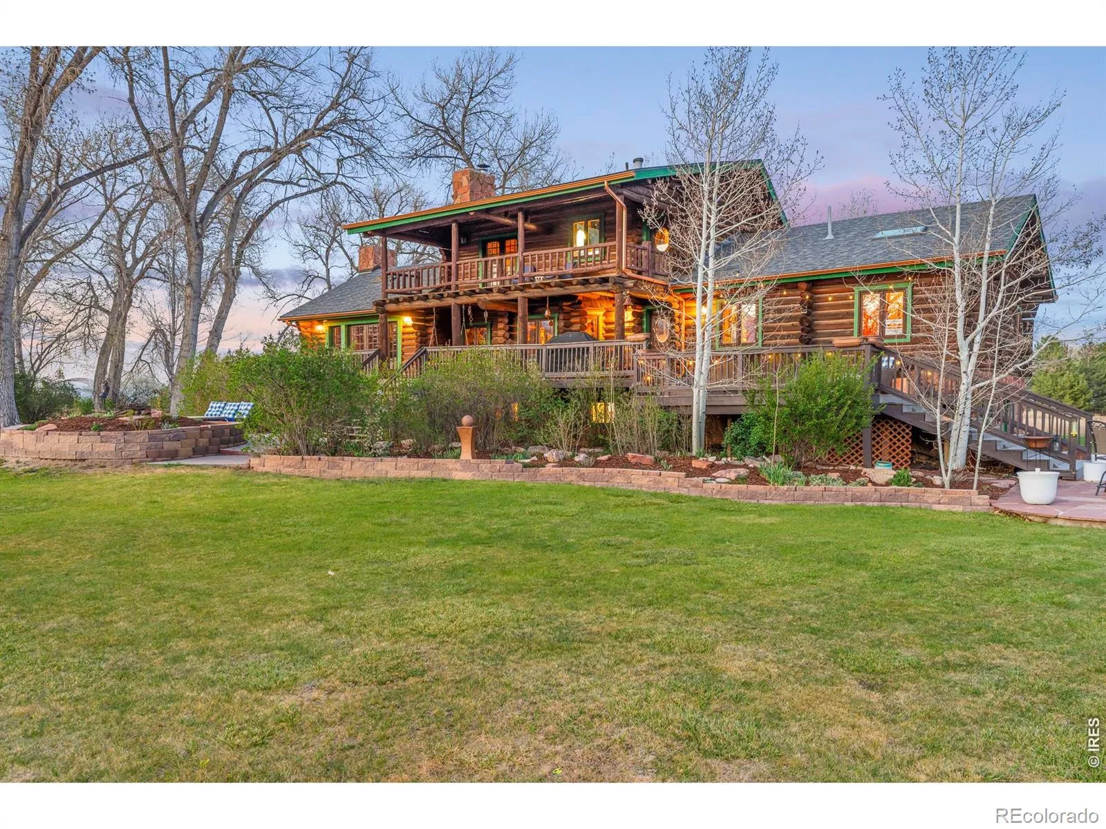 Whitecap Vista Ranch. Set on 4.3 private acres surrounded by open space, this rare Boulder offering is defined by land, location, and sweeping snowcapped views. Quietly tucked away yet within 15 minutes of downtown Boulder, the property captures an exceptional balance of seclusion and accessibility, with breathtaking mountain vistas creating a remarkable daily backdrop. The full log residence with stone accents embodies timeless Colorado character, with vaulted ceilings, skylights, and a wood-burning fireplace anchoring the light-filled living room. The kitchen features granite countertops, wood stove, sunny breakfast nook, and pantry with sliding barn door. Three main-level secondary bedrooms include loft spaces that connect above, creating a truly unique retreat ideal for play or creative use. Upstairs, the secluded primary suite offers new carpet, dual closets, and a private deck positioned to maximize the panoramic mountain views. Designed for gathering and recreation, the grounds offer an extraordinary lifestyle rarely found so close to town. Outdoor living spaces invite year-round enjoyment, from evenings around the fire pit to outdoor movie nights beneath Colorado’s star-filled skies. Recreation options include volleyball, horseshoes, axe throwing, and expansive lawn space for games of every kind. Established raspberry patches, apple trees, rhubarb, perennial gardens, and room for horses, chickens, and large gardens create the feel of a gentleman’s farm. A 4-stall barn with tack room and aviary completes the vision. The walk-out lower level features a rec room with wet bar, offering additional space for entertaining or relaxation. With four patio areas and endless room to roam, this is a truly private Boulder estate where views, land, and lifestyle converge.