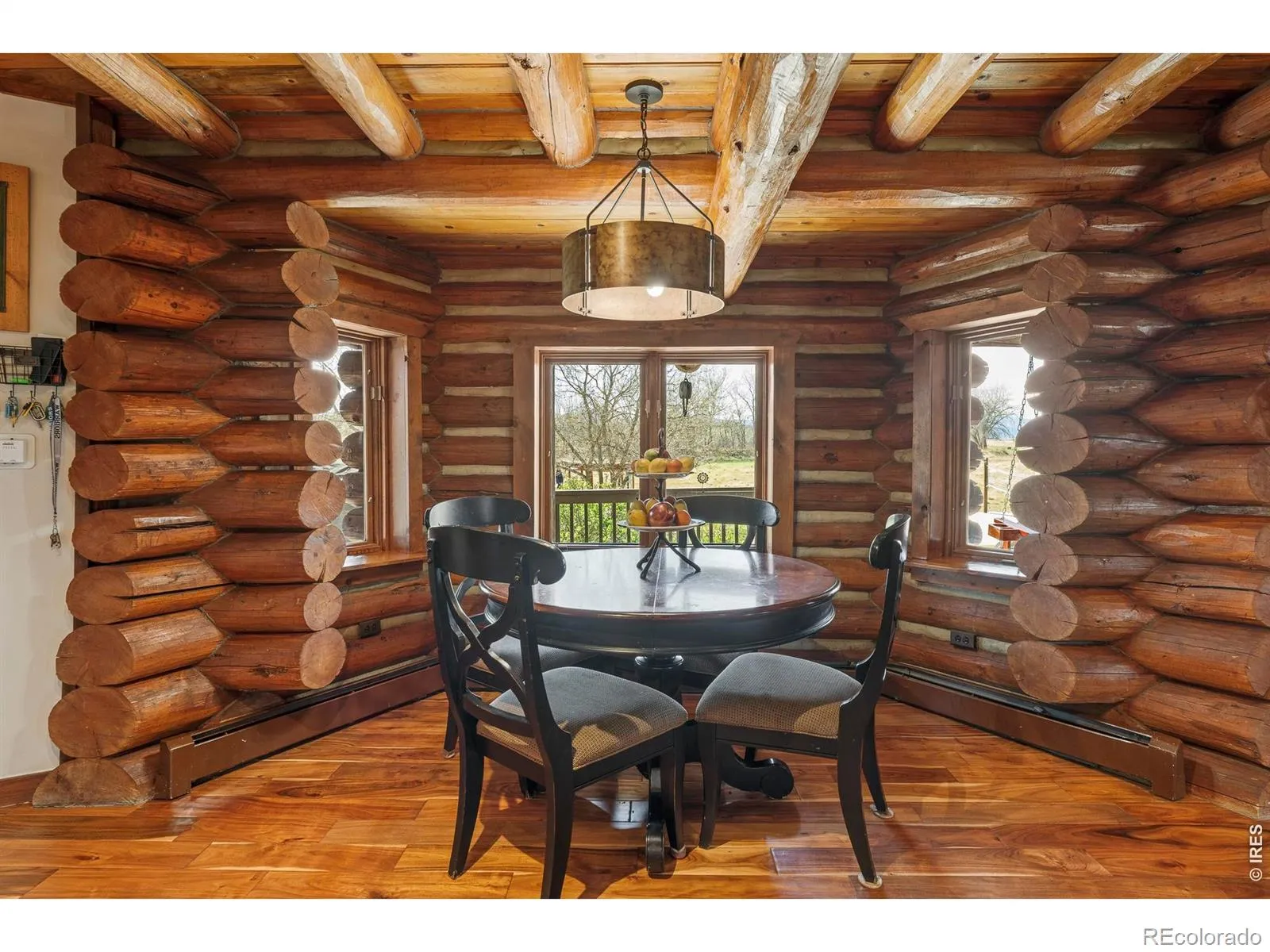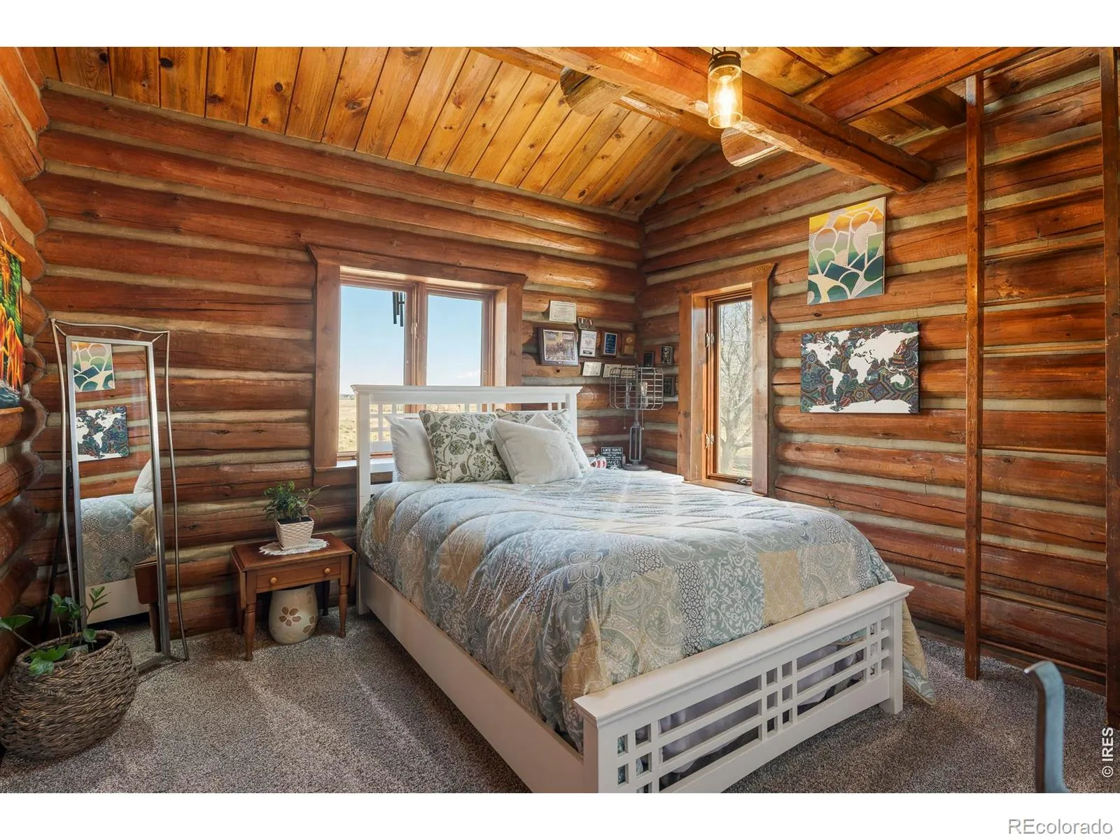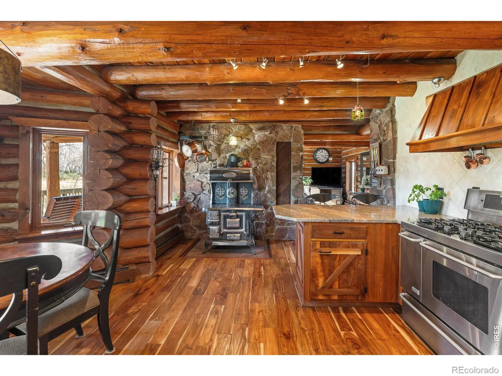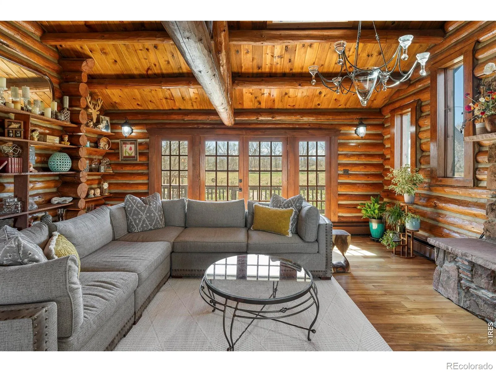 Whitecap Vista Ranch. Set on 4.3 private acres surrounded by open space, this rare Boulder offering is defined by land, location, and sweeping snowcapped views. Quietly tucked away yet within 15 minutes of downtown Boulder, the property captures an exceptional balance of seclusion and accessibility, with breathtaking mountain vistas creating a remarkable daily backdrop. The full log residence with stone accents embodies timeless Colorado character, with vaulted ceilings, skylights, and a wood-burning fireplace anchoring the light-filled living room. The kitchen features granite countertops, wood stove, sunny breakfast nook, and pantry with sliding barn door. Three main-level secondary bedrooms include loft spaces that connect above, creating a truly unique retreat ideal for play or creative use. Upstairs, the secluded primary suite offers new carpet, dual closets, and a private deck positioned to maximize the panoramic mountain views. Designed for gathering and recreation, the grounds offer an extraordinary lifestyle rarely found so close to town. Outdoor living spaces invite year-round enjoyment, from evenings around the fire pit to outdoor movie nights beneath Colorado’s star-filled skies. Recreation options include volleyball, horseshoes, axe throwing, and expansive lawn space for games of every kind. Established raspberry patches, apple trees, rhubarb, perennial gardens, and room for horses, chickens, and large gardens create the feel of a gentleman’s farm. A 4-stall barn with tack room and aviary completes the vision. The walk-out lower level features a rec room with wet bar, offering additional space for entertaining or relaxation. With four patio areas and endless room to roam, this is a truly private Boulder estate where views, land, and lifestyle converge.