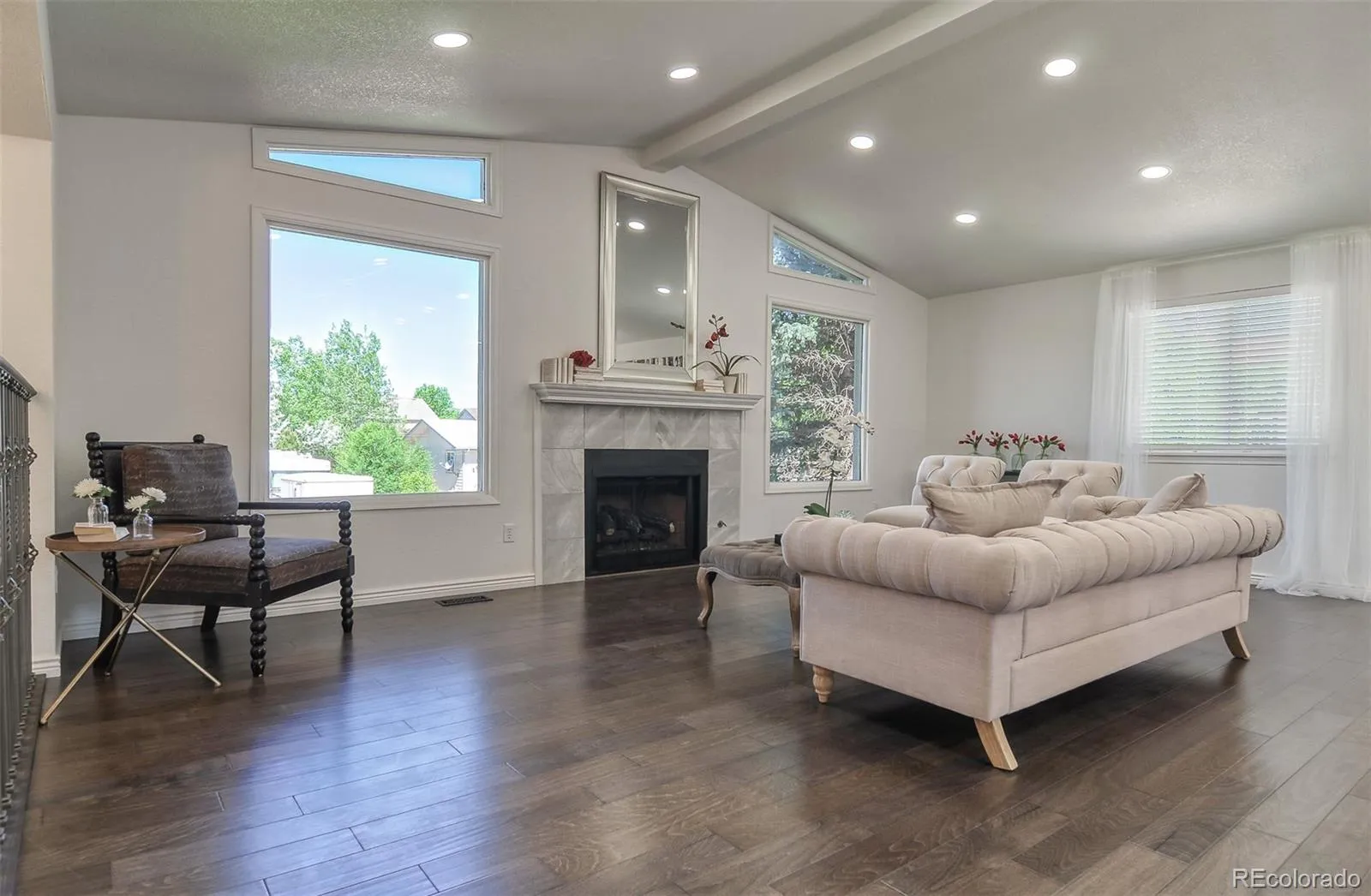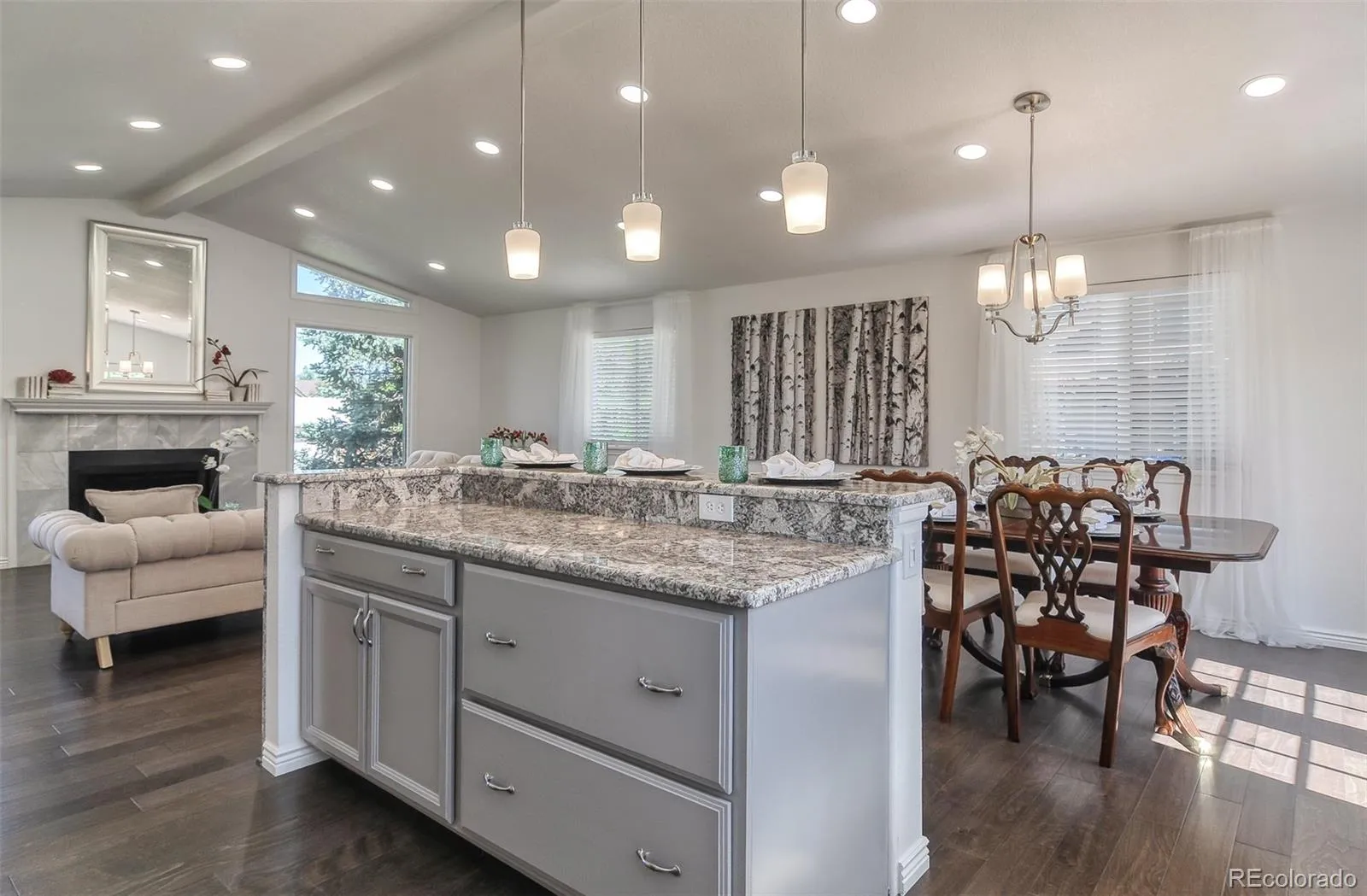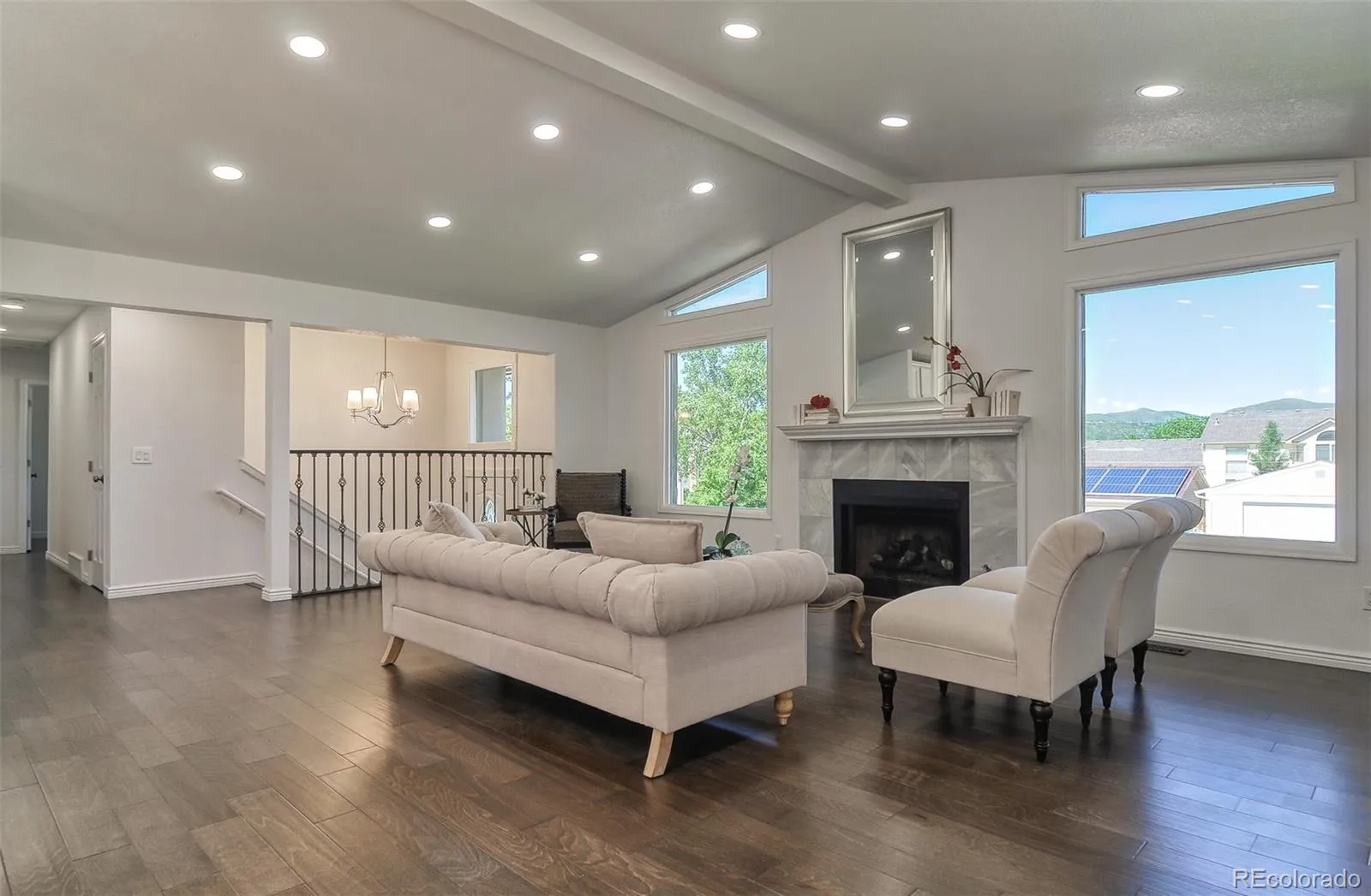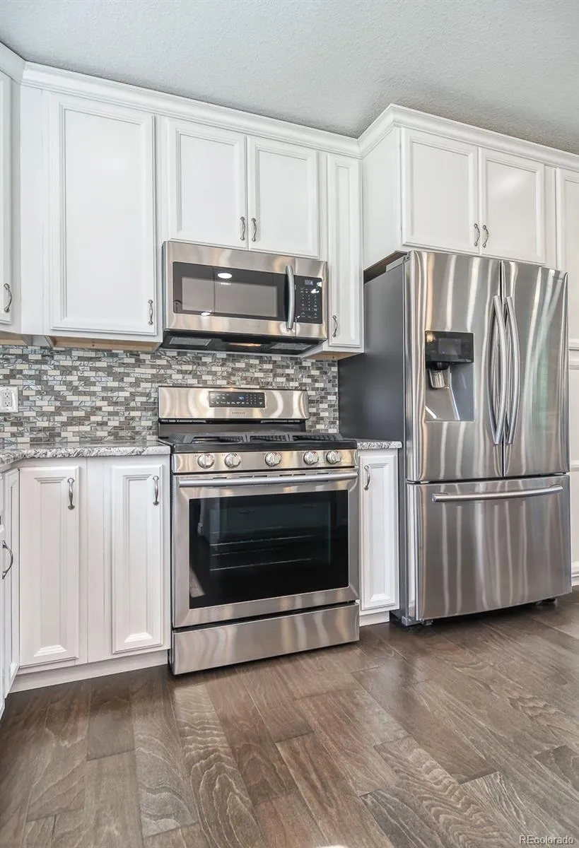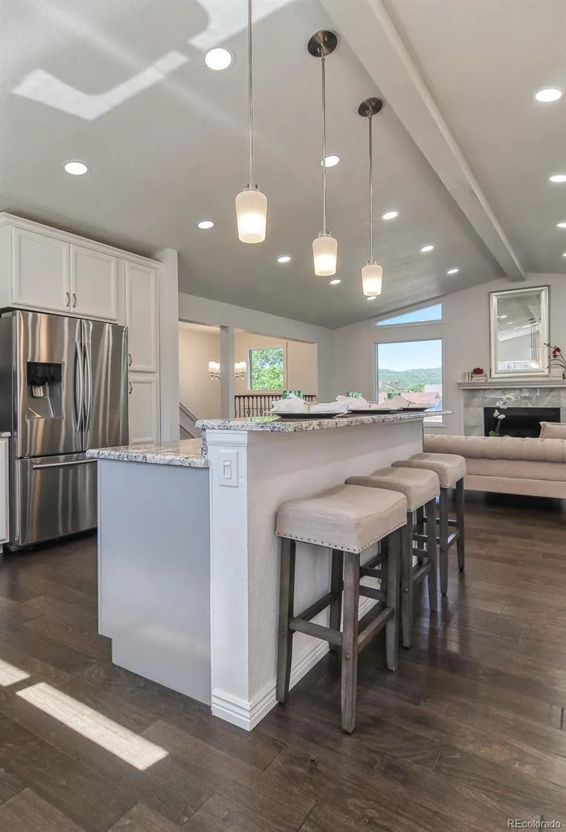 Beautifully updated Littleton home featuring 4 bedrooms, 3 full bathrooms, and over 2,300 sq ft of finished living space on over a quarter-acre lot with mountain views and no HOA. Enjoy a spacious bi-level layout with multiple living areas, abundant natural light, engineered hardwood upstairs, and new carpet downstairs. The kitchen has gas stove top, stainless steel appliances, and granite countertops including a stunning waterfall island. All full bathrooms feature custom tile and granite counters.
