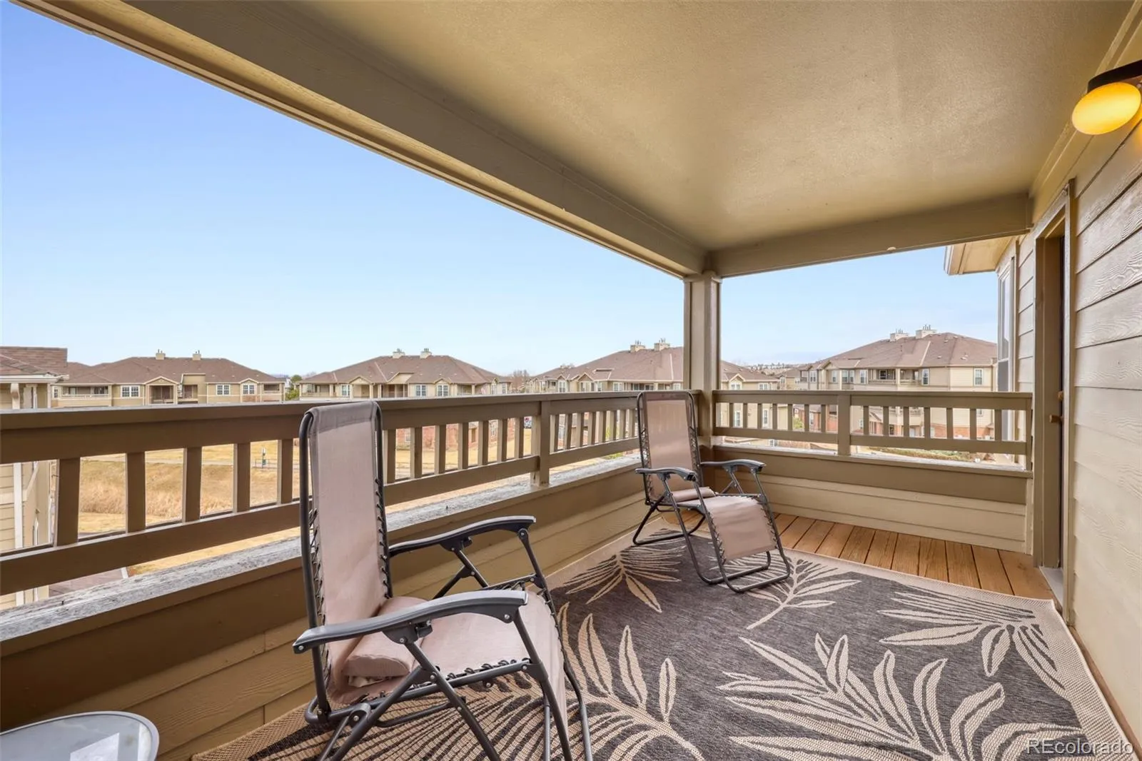 Welcome to 12928 Ironstone Way Unit 303. This beautiful remodeled corner unit on the top floor has a large covered balcony with a nice view of the mountains. New features include all new Whirlpool kitchen appliances, new Maytag washer and dryer, and bathroom remodel to include new bathtub and shower wall. Newer features include HVAC (under 5 years old), granite countertops, and tile flooring. The open floor plan opens up to the living room, kitchen, and dedicated dinning area. The kitchen has granite countertops, tile flooring and all new appliances. The first of two bedrooms includes a private door to the large balcony. The second bedroom includes a large walk-in closet. There are two storage areas, the utility room inside the unit and a private room outside the unit. Great location near Parker Road, Cherry Creek Trails, greenbelts, parks, dinning and shopping. Ironstone amenities include an outdoor pool, hot tub, volleyball, private clubhouse and Fitness Center. Buyer to verify all information.
