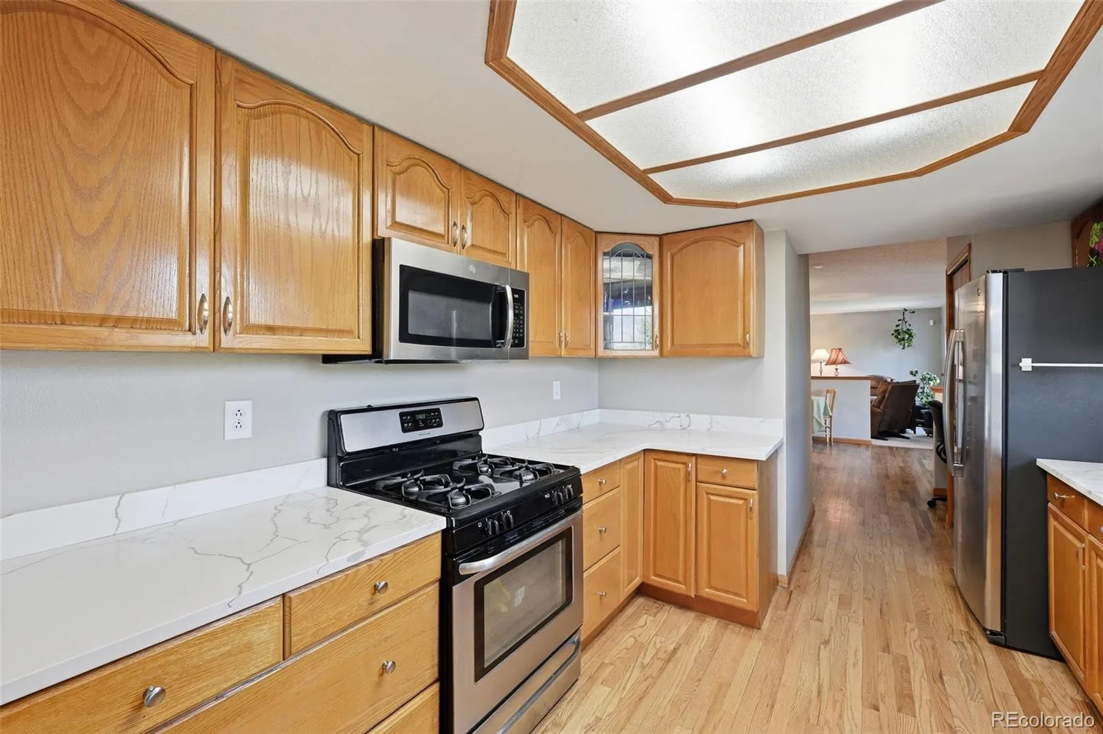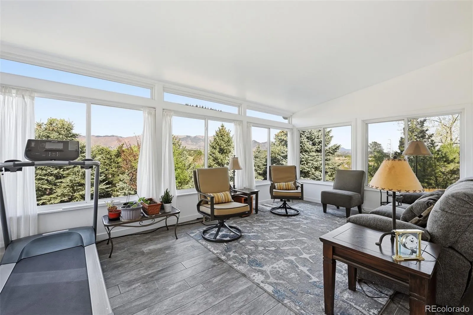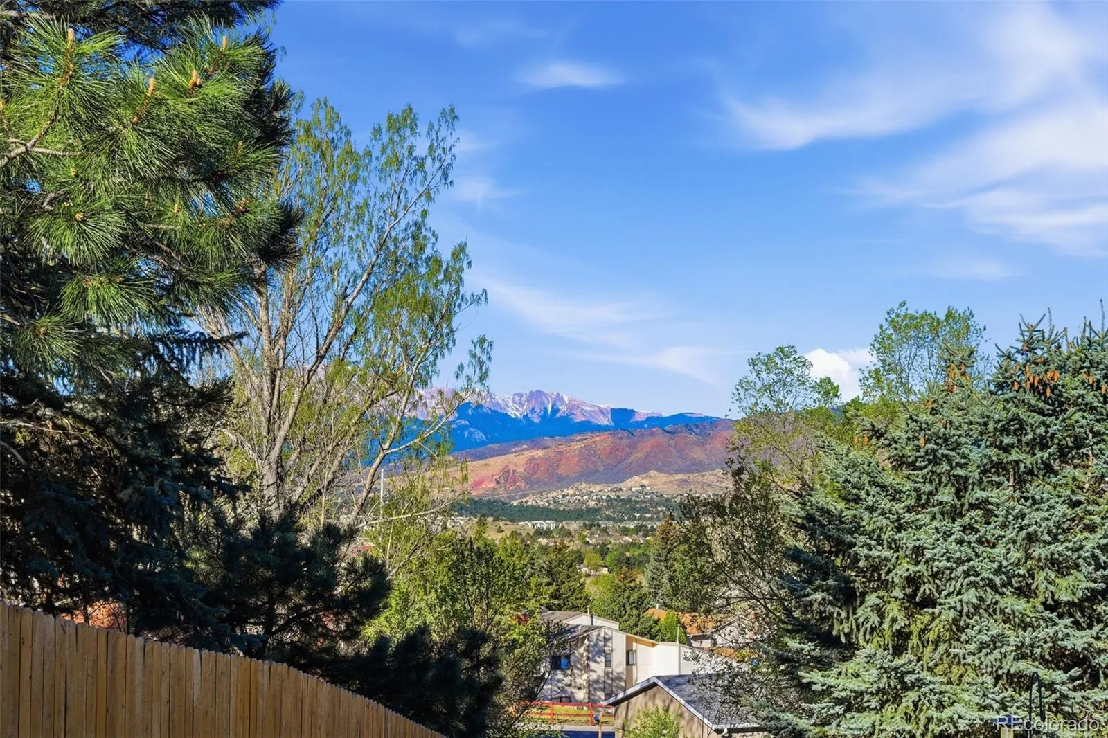 Welcome to this beautifully updated home on an elevated, treed lot in the desirable Pulpit Rock neighborhood, offering stunning Front Range and Pikes Peak views. The light-filled interior features refinished hardwood floors, built-ins, and a spacious living room that flows into a well-appointed kitchen with stainless steel appliances, gas range, stunning white quartz slabs, and incredible views of Pikes Peak top off this space. The kitchen opens to the formal dining area, perfect for entertaining. The family room includes a fireplace, wet bar, and half bath. The primary suite offers vaulted ceilings, walk-in closet, adjoining bath, and breathtaking views. Upstairs features additional bedrooms, including a large bedroom with walk-in closet and skylight. The walk-out basement is set up as a private apartment with its own entrance, kitchenette, full bath, bedroom, and living space—currently used as a successful mid-term rental with a private walkway to curbside parking. A new; custom built, Keith Hall-designed four-season sunroom is the showstopper, seamlessly connected with large glass doors and showcasing incredible Pikes Peak views year-round. This recently added space in not included in the listed square footage! Recent upgrades include a new Class 4 impact-resistant roof with ridge vents, 200-amp electrical panel, garage man door, and two attached exterior storage spaces. Enjoy the concrete patio, relax around the fire pit, enjoy the gardens, mature trees, and peaceful setting, all just minutes from I-25, shopping, dining, and hiking trails. This Pulpit Rock beauty is all ready for the next owner. The sellers have poured their heart and soul into this place and it really shows!
