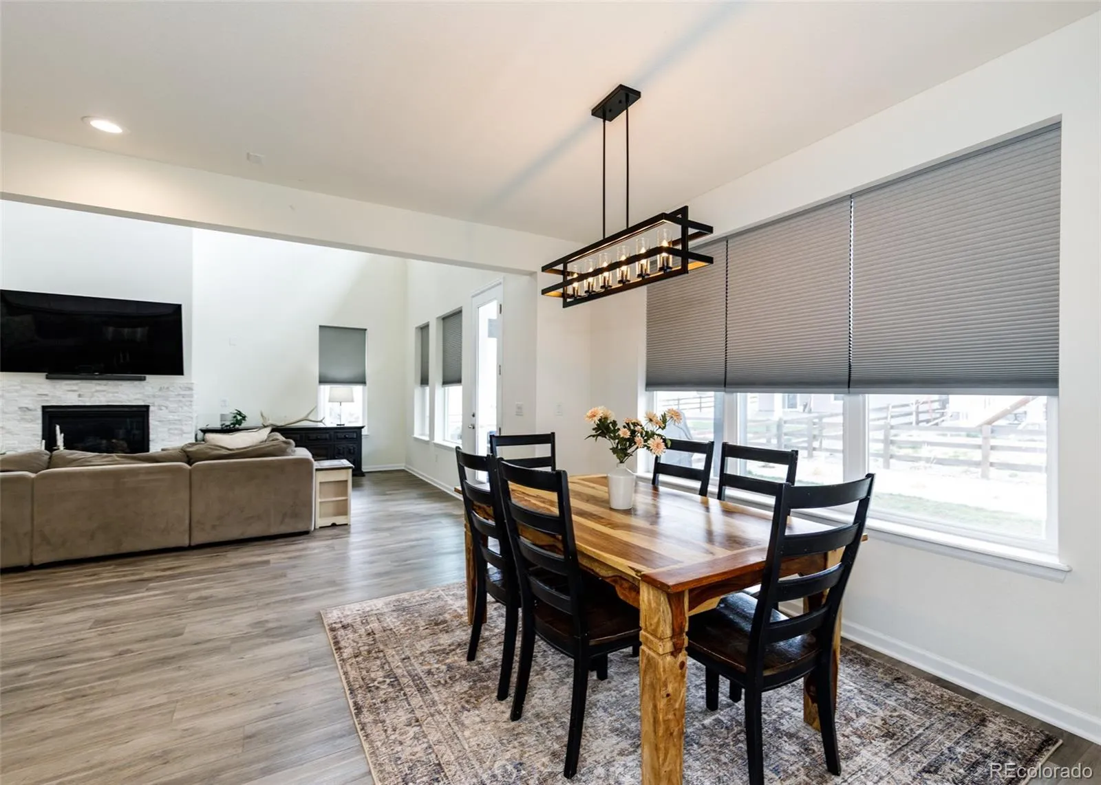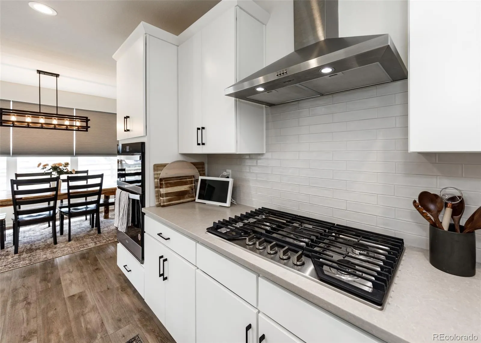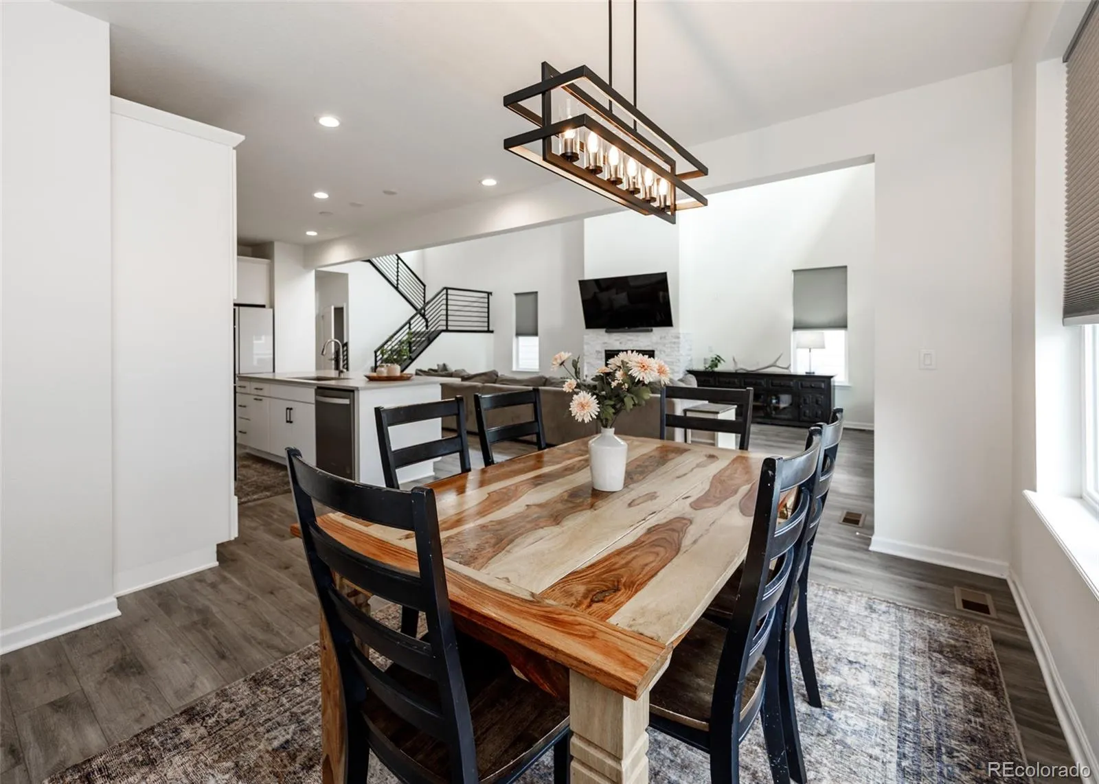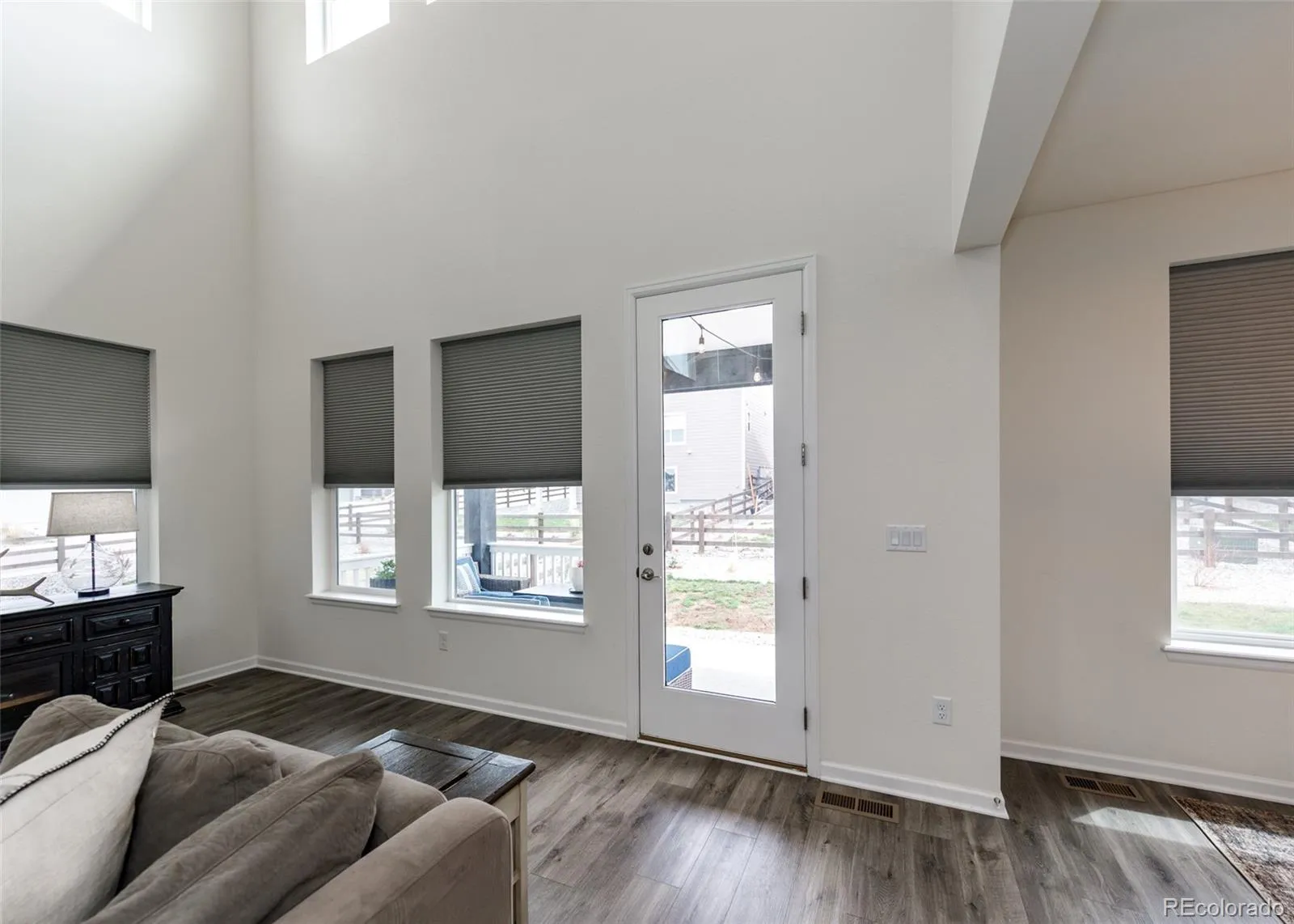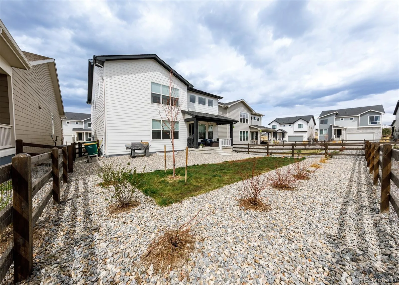 Beautifully upgraded 2-story home offering 4 bedrooms, 3.5 baths, and a 3-car tandem garage. With 2,706 finished sq ft and an additional full, unfinished basement, this home provides both comfort and room to grow. The inviting covered front porch leads into a bright, open layout featuring wood laminate flooring throughout the main level. Just off the entry is a built-in office space, perfect for remote work or other flex space. A convenient half bath is also located near the entry. The stunning great room features soaring two-story ceilings and a gas fireplace with stone surround. The kitchen is designed to impress with a large island, quartz countertops, subway tile backsplash, white cabinetry with crown molding, stainless appliances, gas cooktop with hood, wall oven, and microwave. The adjoining dining area offers ample space for a large table and is filled with natural light from windows across the back of the home, with access to a covered patio and fenced yard. There is also a spacious walk in pantry on the way to the 3 car garage. Upstairs features four large bedrooms, all with walk-in closets. The private primary suite includes its own thermostat, abundant windows, and a luxurious bath with dual vanities, quartz counters, oversized walk-in shower with floor-to-ceiling tile and bench, and a large walk-in closet. Two additional full bathrooms, a convenient laundry closet, and a large linen closet complete the upper level. The unfinished basement includes a sump pump, radon mitigation system, rough-in plumbing, and large window wells. Additional upgrades include central A/C, tankless water heater, whole house humidifier, epoxy garage floors, sprinkler system front and back, and pre-wiring for 5.1 surround sound. Washer, dryer, and brand new window coverings included. Community features – Clubhouse, Fitness Center, Pool, Parks & Trails, Tennis Court, and convenient location with quick access to all local amenities, including I-25 for an easy commute!