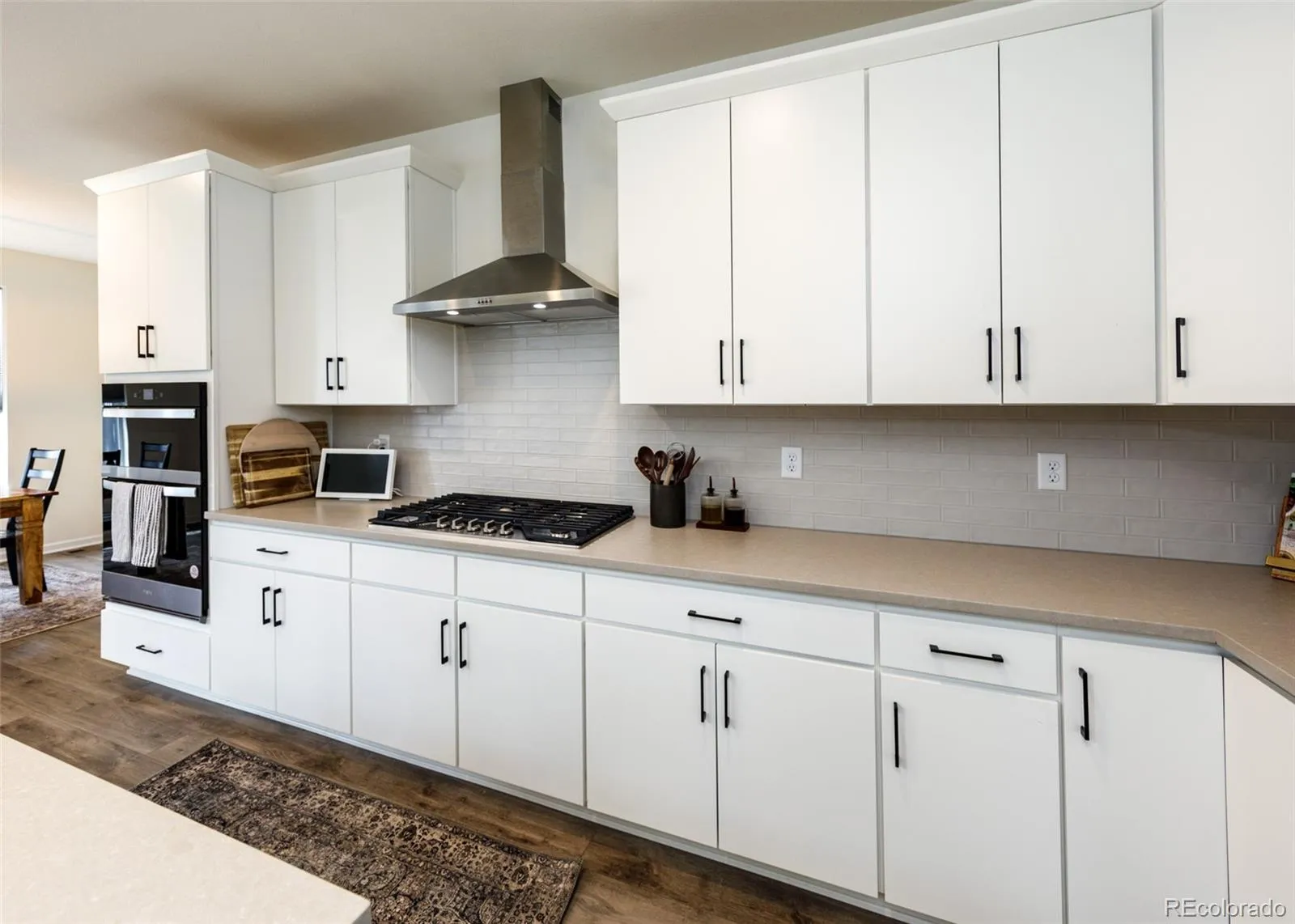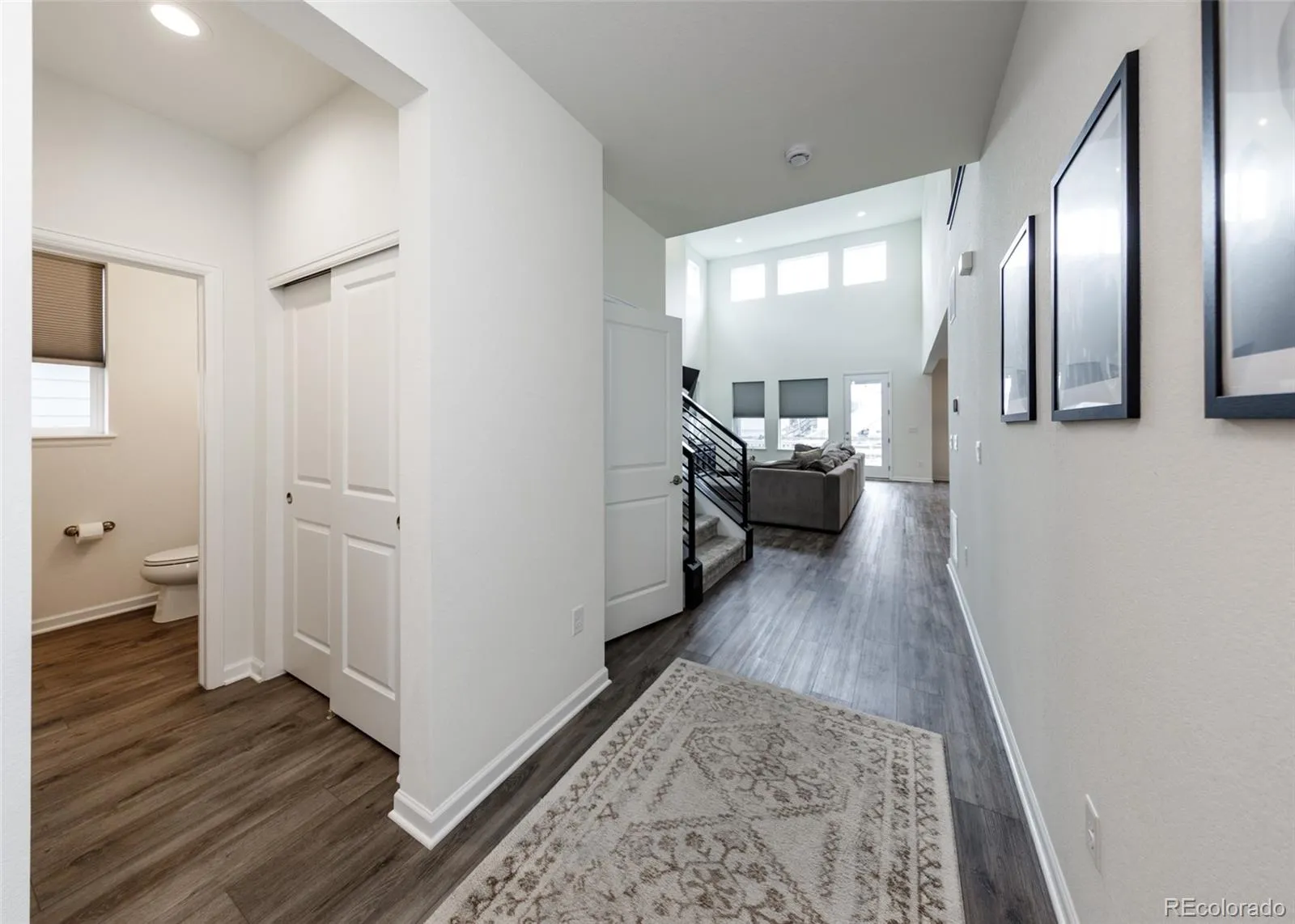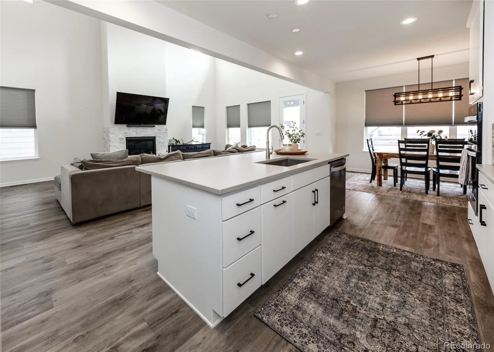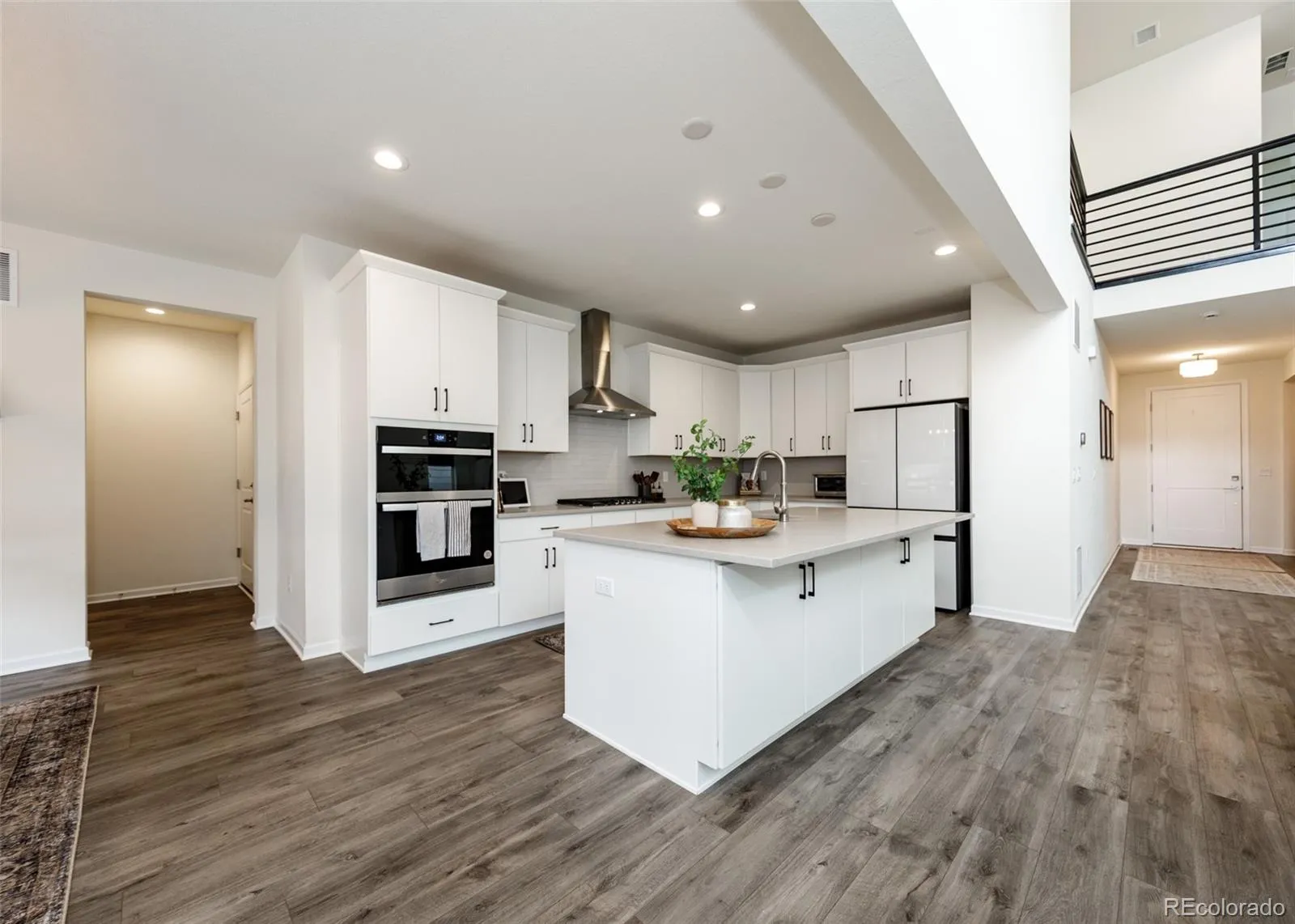 Beautifully upgraded 2-story home offering 4 bedrooms, 3.5 baths, and a 3-car tandem garage. With 2,706 finished sq ft and an additional full, unfinished basement, this home provides both comfort and room to grow. The inviting covered front porch leads into a bright, open layout featuring wood laminate flooring throughout the main level. Just off the entry is a built-in office space, perfect for remote work or other flex space. A convenient half bath is also located near the entry. The stunning great room features soaring two-story ceilings and a gas fireplace with stone surround. The kitchen is designed to impress with a large island, quartz countertops, subway tile backsplash, white cabinetry with crown molding, stainless appliances, gas cooktop with hood, wall oven, and microwave. The adjoining dining area offers ample space for a large table and is filled with natural light from windows across the back of the home, with access to a covered patio and fenced yard. There is also a spacious walk in pantry on the way to the 3 car garage. Upstairs features four large bedrooms, all with walk-in closets. The private primary suite includes its own thermostat, abundant windows, and a luxurious bath with dual vanities, quartz counters, oversized walk-in shower with floor-to-ceiling tile and bench, and a large walk-in closet. Two additional full bathrooms, a convenient laundry closet, and a large linen closet complete the upper level. The unfinished basement includes a sump pump, radon mitigation system, rough-in plumbing, and large window wells. Additional upgrades include central A/C, tankless water heater, whole house humidifier, epoxy garage floors, sprinkler system front and back, and pre-wiring for 5.1 surround sound. Washer, dryer, and brand new window coverings included. Community features – Clubhouse, Fitness Center, Pool, Parks & Trails, Tennis Court, and convenient location with quick access to all local amenities, including I-25 for an easy commute!