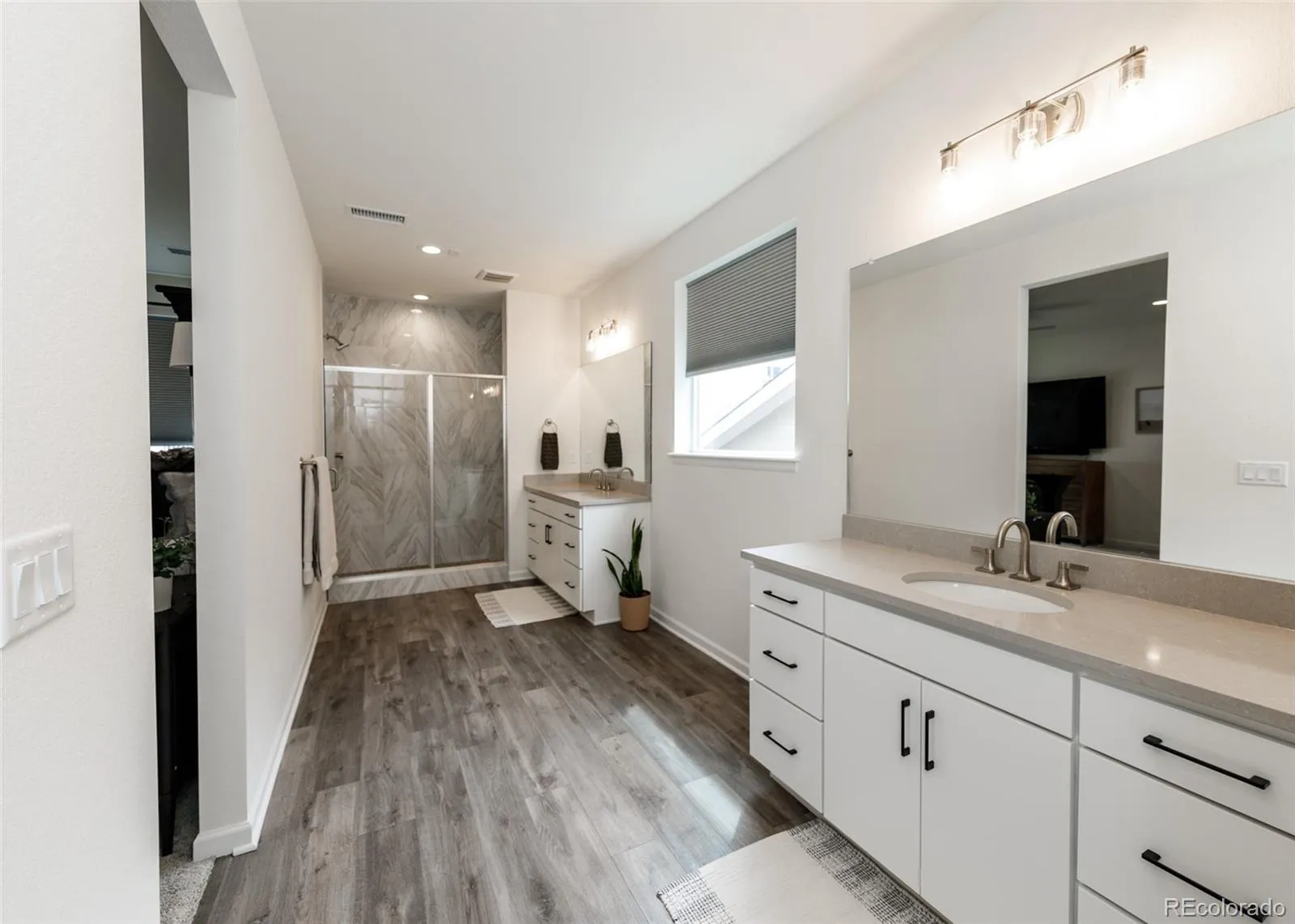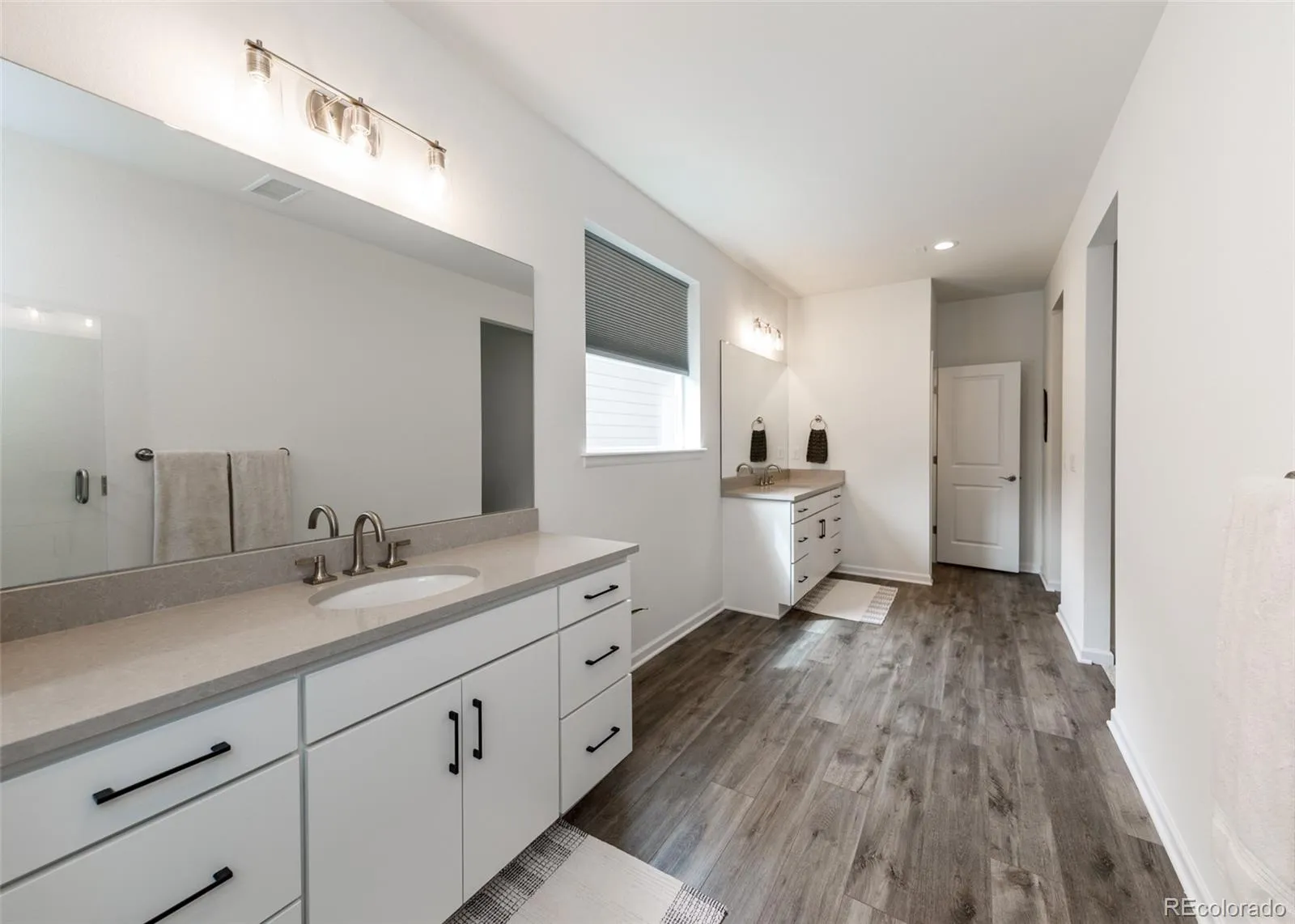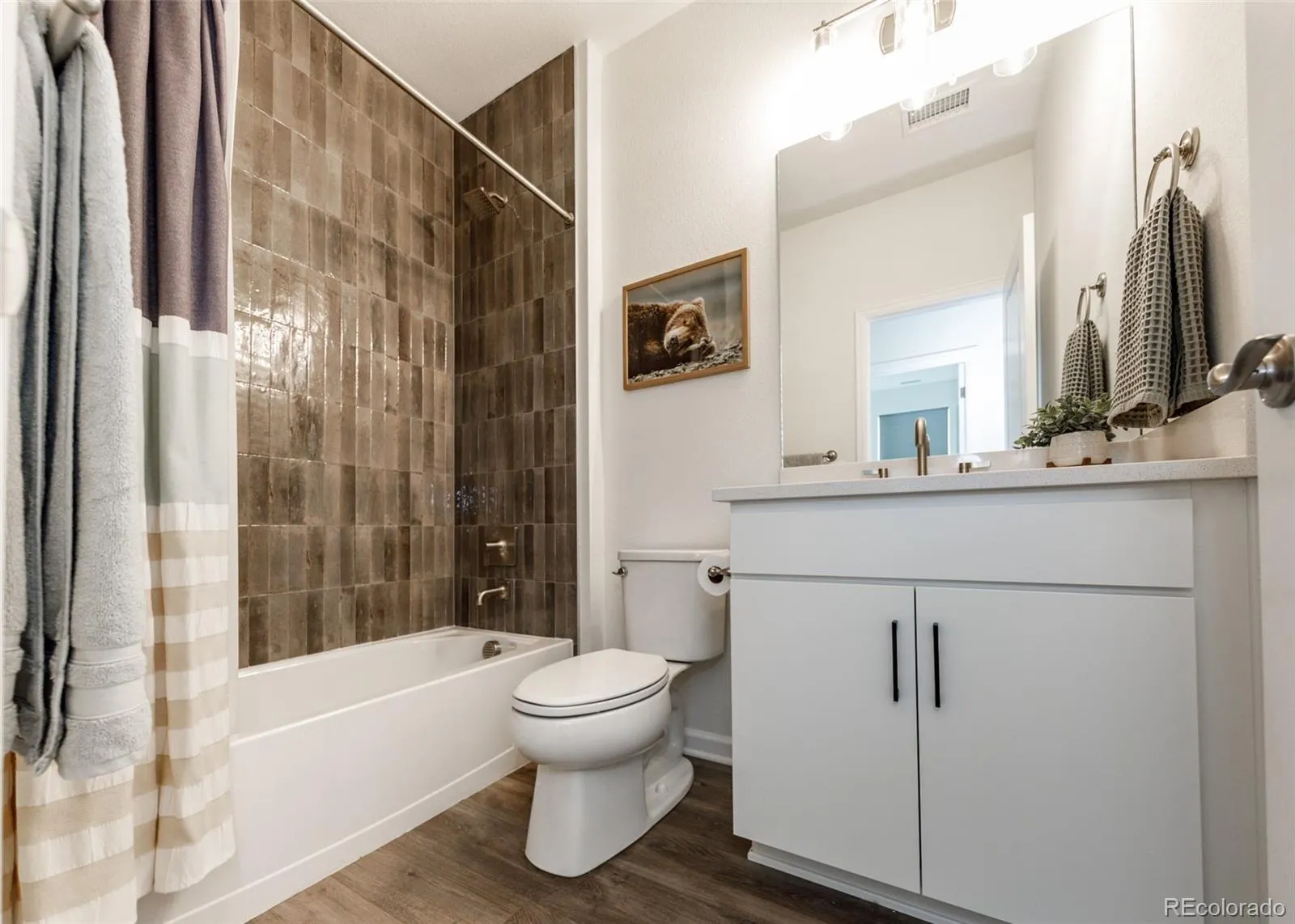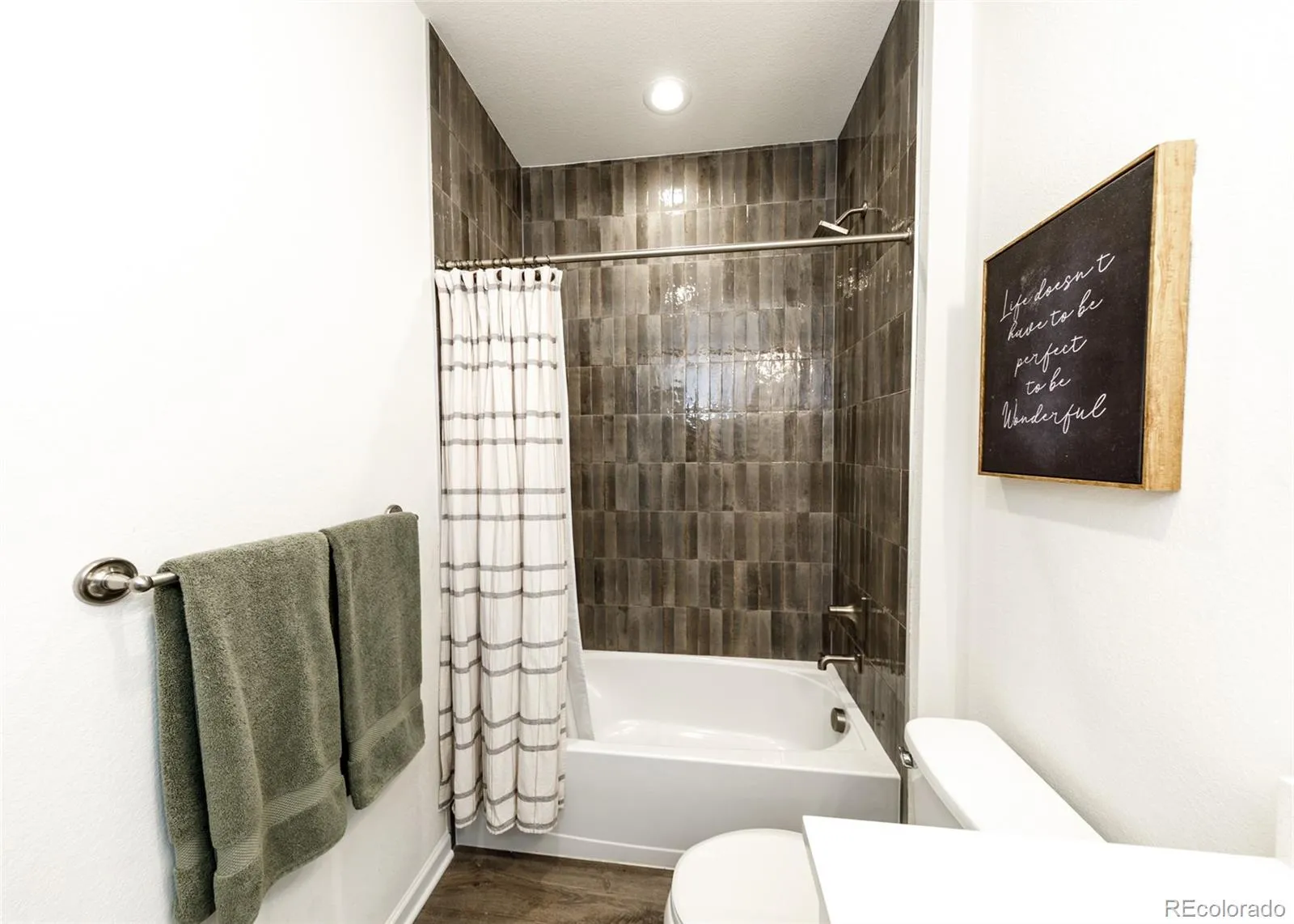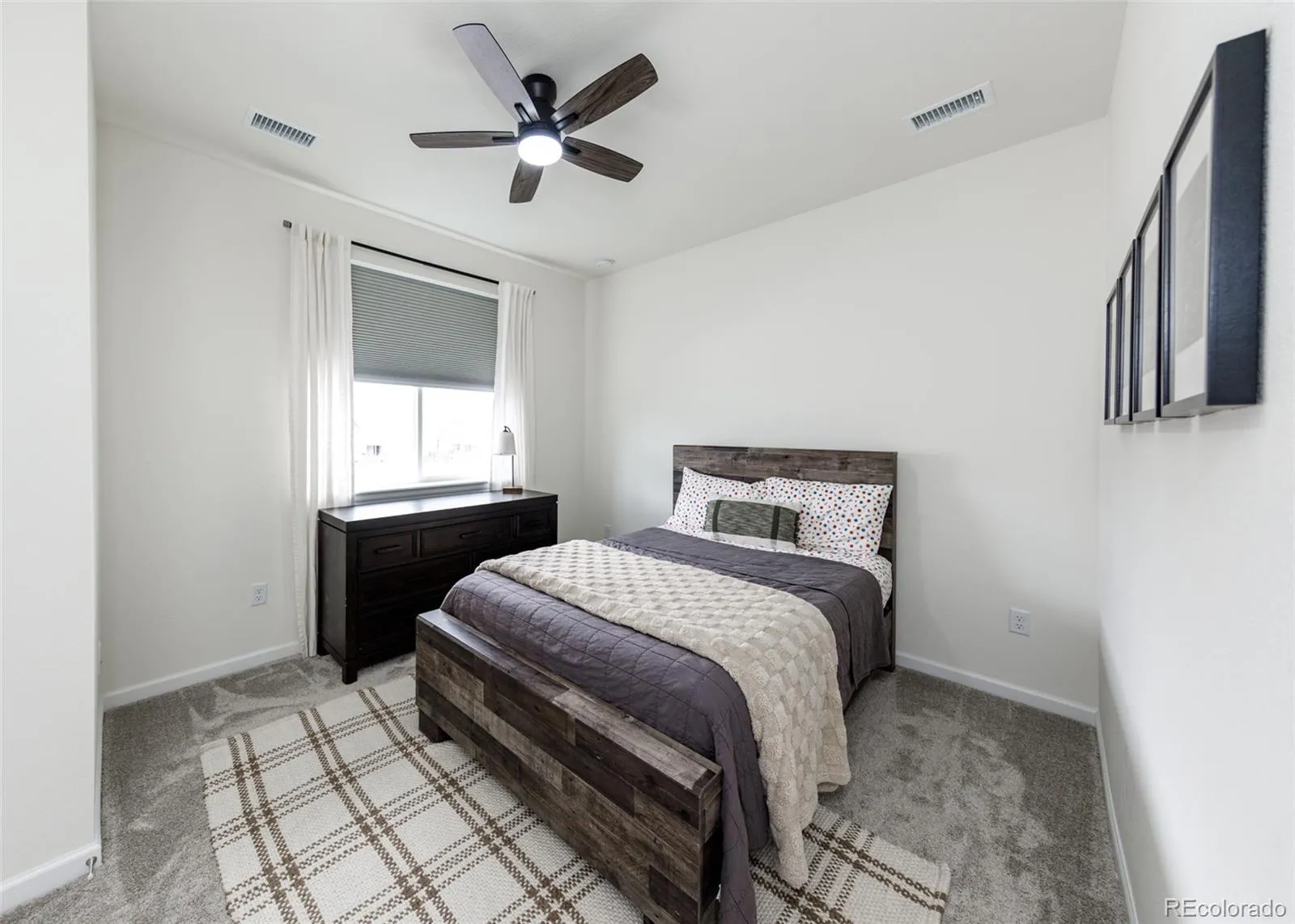 Beautifully upgraded 2-story home offering 4 bedrooms, 3.5 baths, and a 3-car tandem garage. With 2,706 finished sq ft and an additional full, unfinished basement, this home provides both comfort and room to grow. The inviting covered front porch leads into a bright, open layout featuring wood laminate flooring throughout the main level. Just off the entry is a built-in office space, perfect for remote work or other flex space. A convenient half bath is also located near the entry. The stunning great room features soaring two-story ceilings and a gas fireplace with stone surround. The kitchen is designed to impress with a large island, quartz countertops, subway tile backsplash, white cabinetry with crown molding, stainless appliances, gas cooktop with hood, wall oven, and microwave. The adjoining dining area offers ample space for a large table and is filled with natural light from windows across the back of the home, with access to a covered patio and fenced yard. There is also a spacious walk in pantry on the way to the 3 car garage. Upstairs features four large bedrooms, all with walk-in closets. The private primary suite includes its own thermostat, abundant windows, and a luxurious bath with dual vanities, quartz counters, oversized walk-in shower with floor-to-ceiling tile and bench, and a large walk-in closet. Two additional full bathrooms, a convenient laundry closet, and a large linen closet complete the upper level. The unfinished basement includes a sump pump, radon mitigation system, rough-in plumbing, and large window wells. Additional upgrades include central A/C, tankless water heater, whole house humidifier, epoxy garage floors, sprinkler system front and back, and pre-wiring for 5.1 surround sound. Washer, dryer, and brand new window coverings included. Community features – Clubhouse, Fitness Center, Pool, Parks & Trails, Tennis Court, and convenient location with quick access to all local amenities, including I-25 for an easy commute!