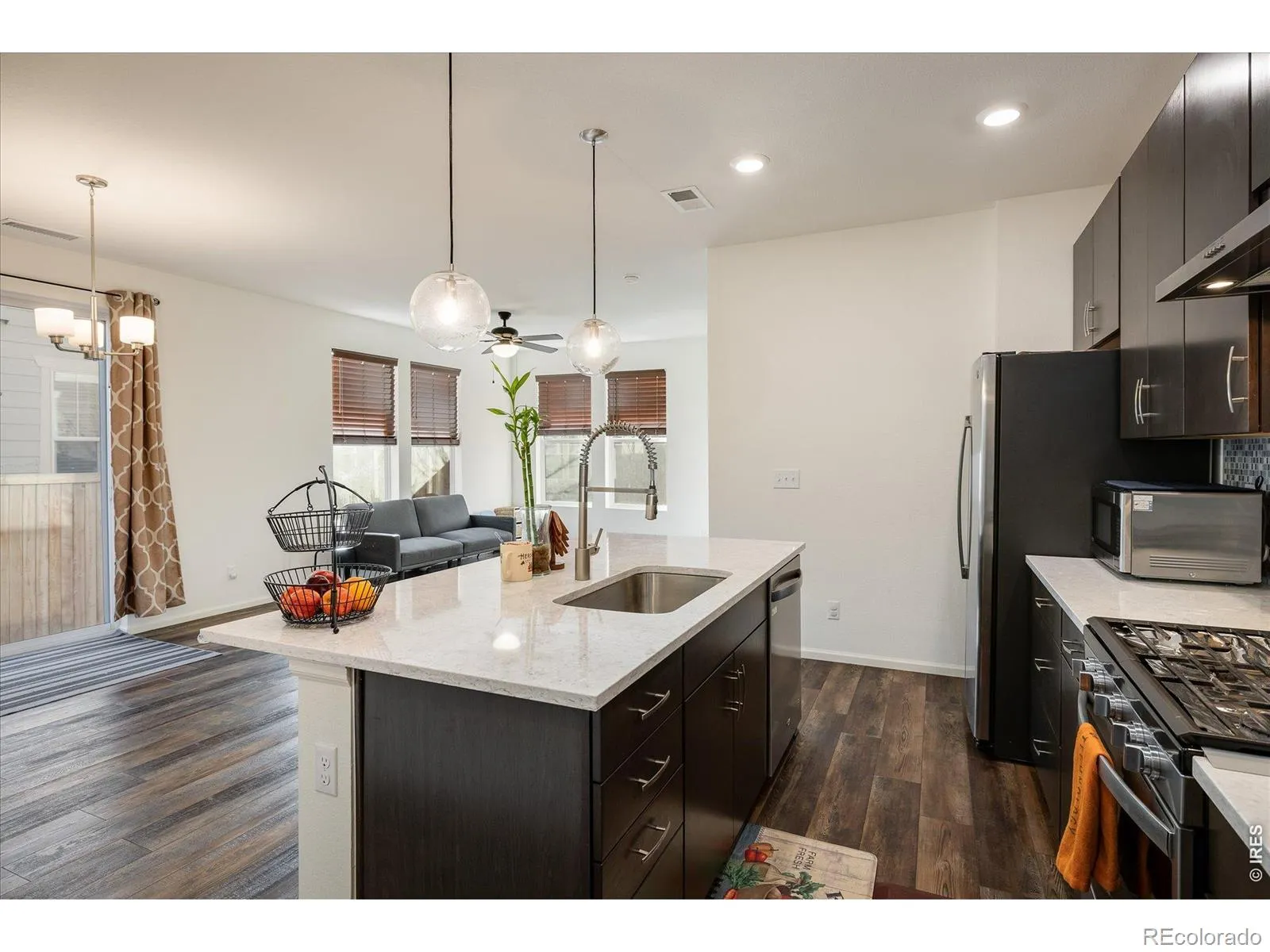 Don’t miss this stunning townhome in the desirable Homestead Hills community. Nestled on a West-Facing lot this craftsman-style home is filled with natural light and high-end features throughout. The gourmet kitchen boasts ample cabinetry, custom tile backsplash, granite countertops, pendant lighting, and upgraded stainless steel appliances. The open-concept main floor includes a spacious family room, luxury vinyl plank flooring, and a guest bathroom. Upstairs, you’ll find a large loft perfect for a second family room or office, plus a spacious primary bedroom with a walk-in closet and private en-suite. Two additional bedrooms, a full bath, and a laundry room with a washer and dryer complete the upper level. The attached 2-car garage offers extra storage, along with a large crawlspace that spans the entire main floor. This immaculate, low-maintenance home features central A/C, a West-facing covered front porch, and a prime location near a community park, shopping, dining, and easy access to I-25 and E470.